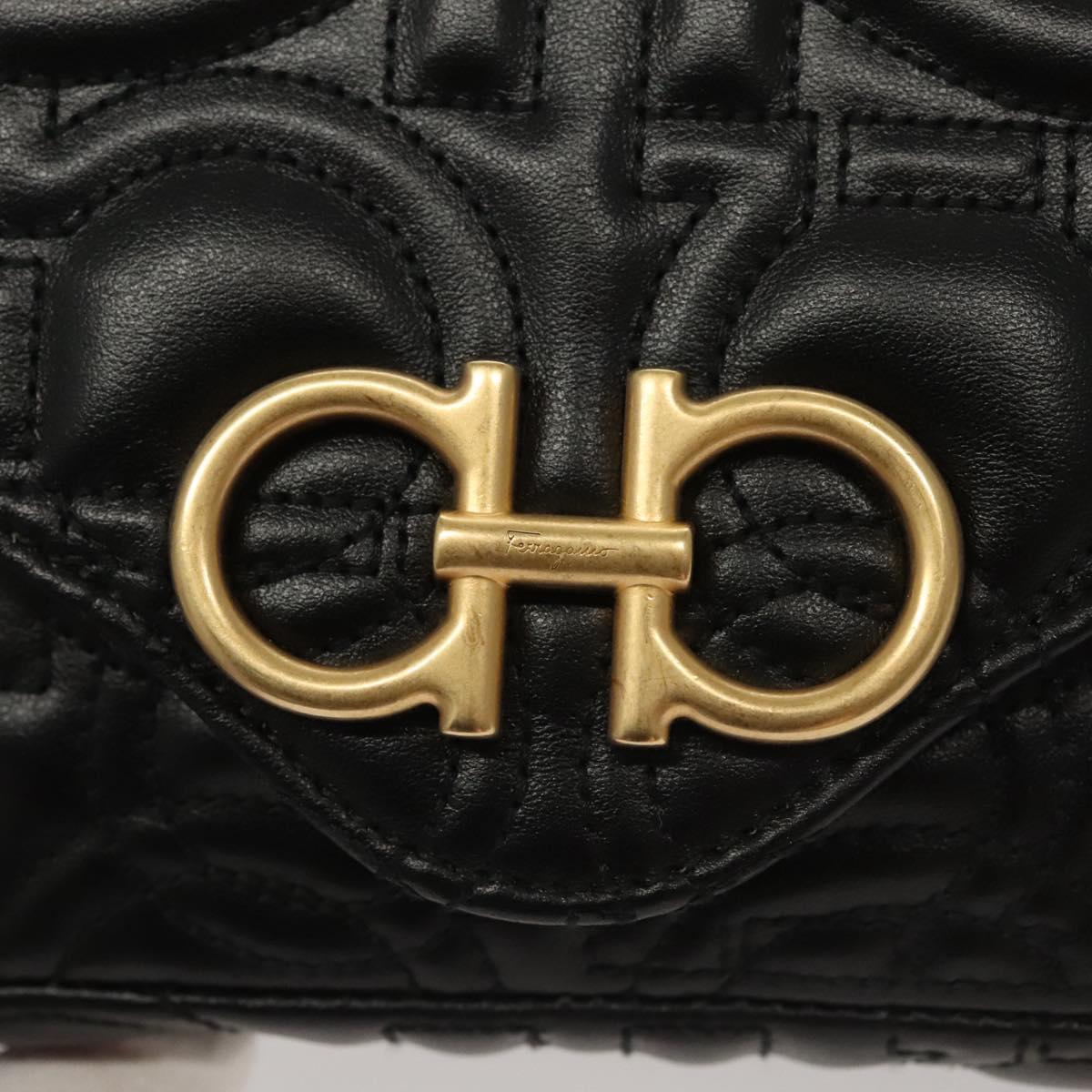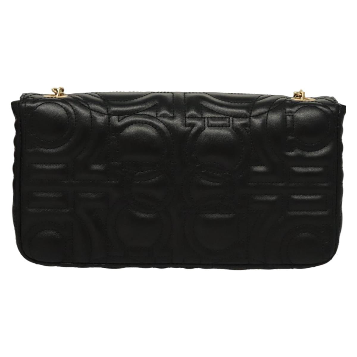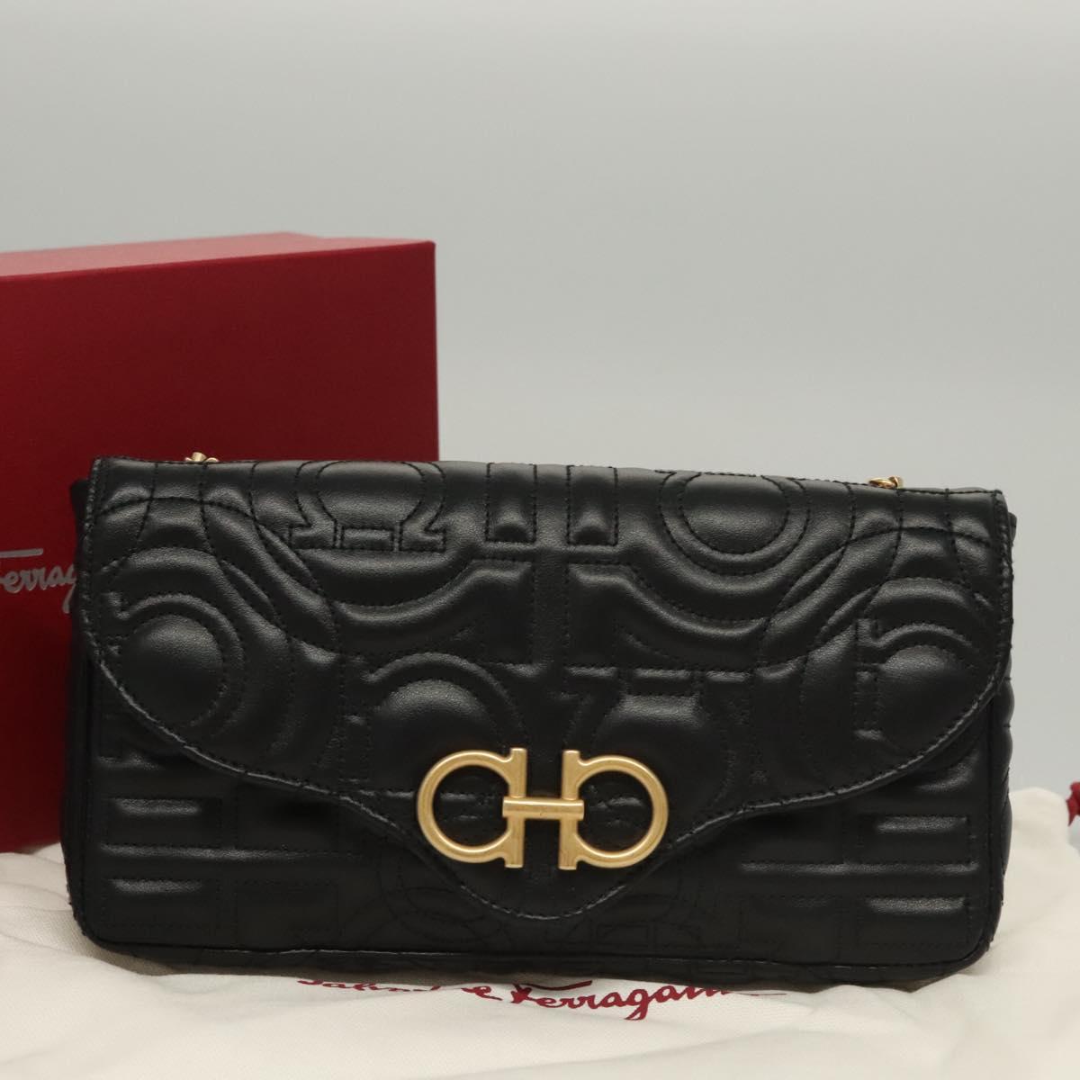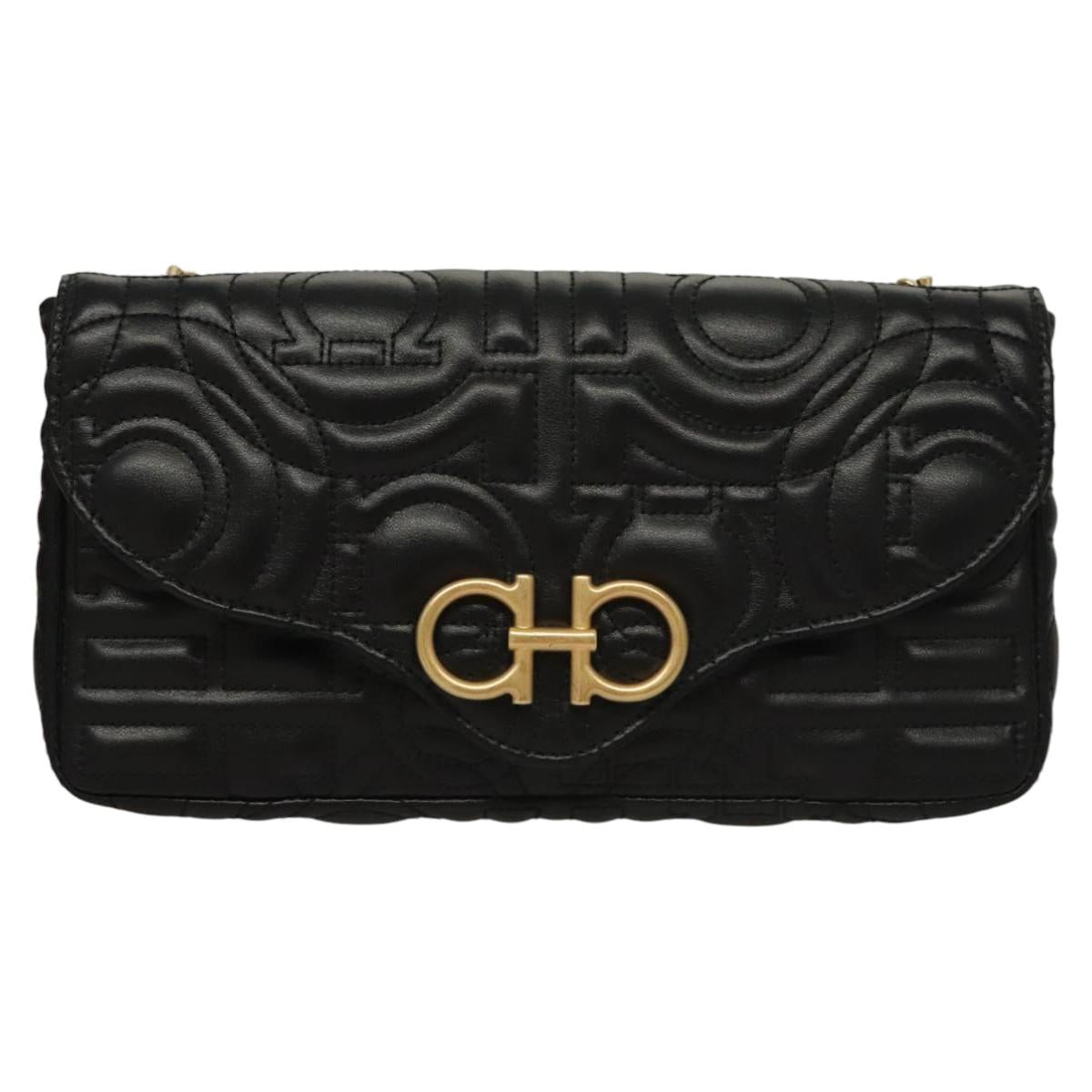 Salvatore Ferragamo Chain Gancini Shoulder Bag Leather Black Gold Auth 116254AM