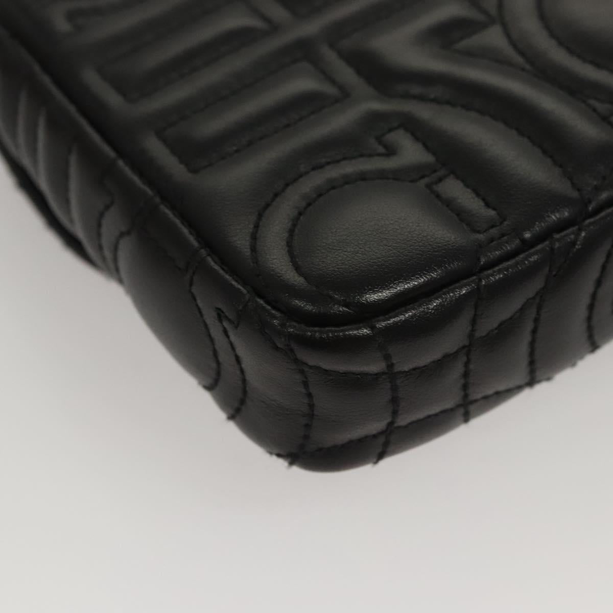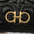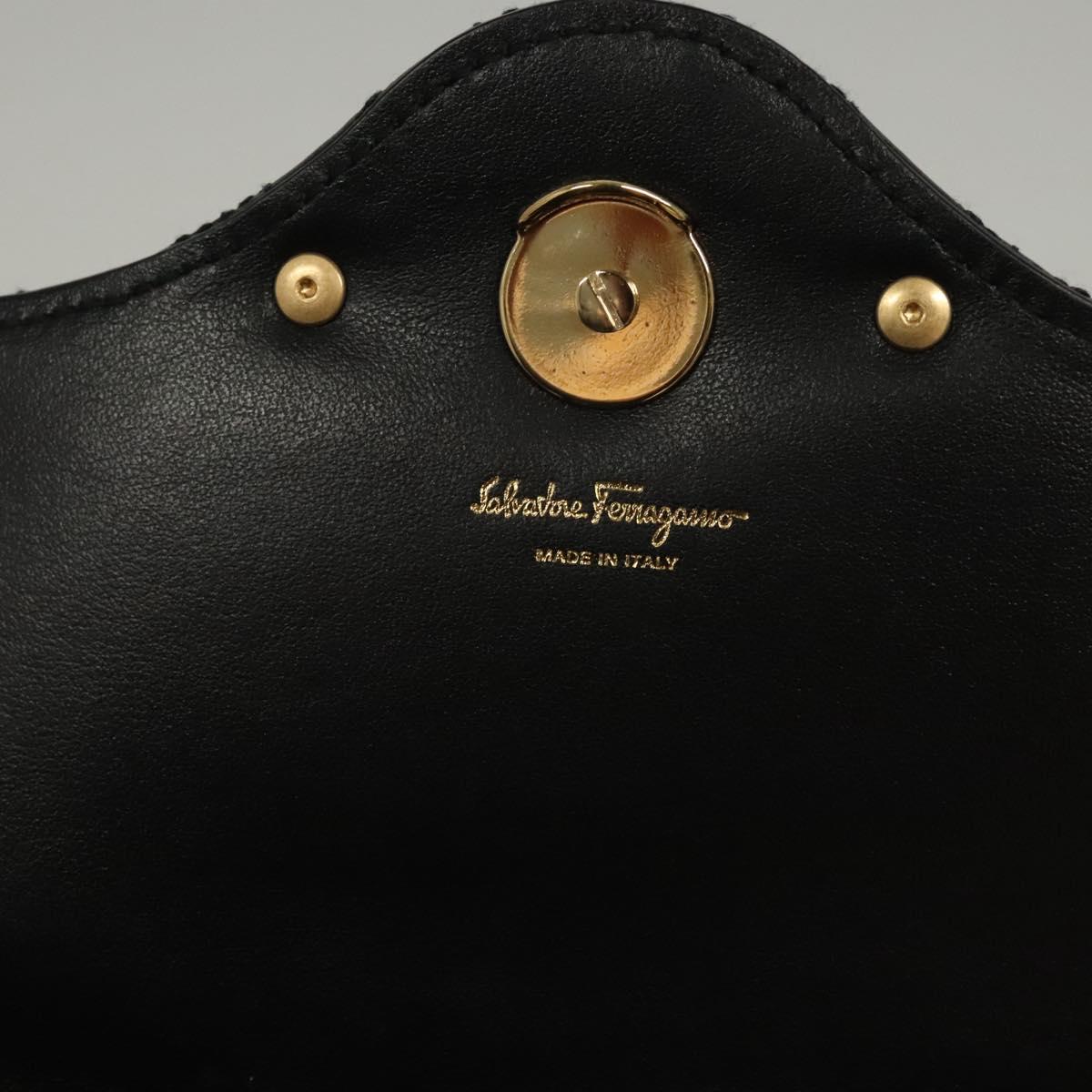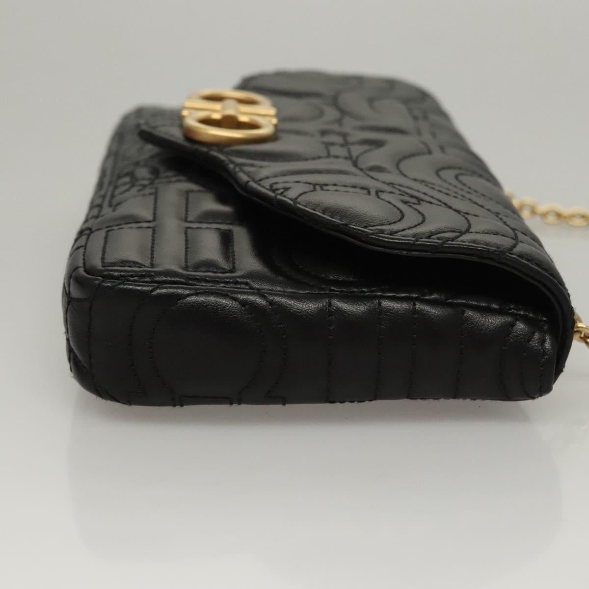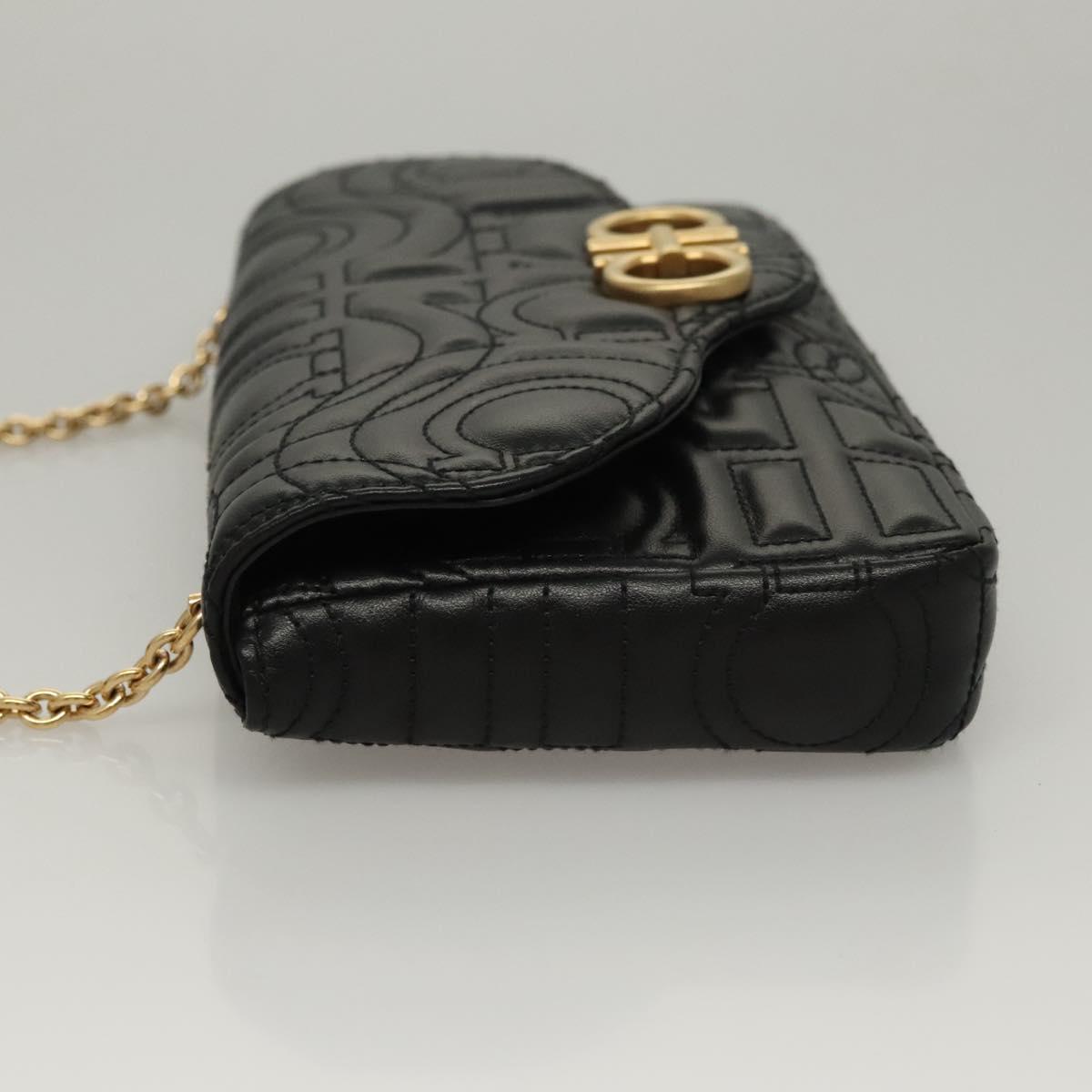 Salvatore Ferragamo Chain Gancini Shoulder Bag Leather Black Gold Auth 116254AM