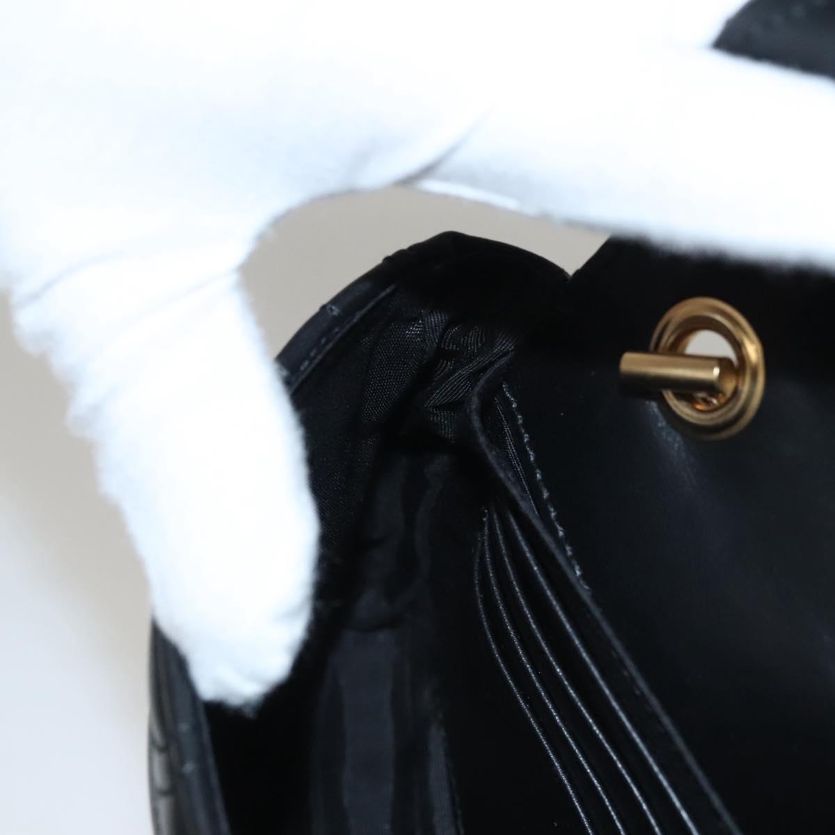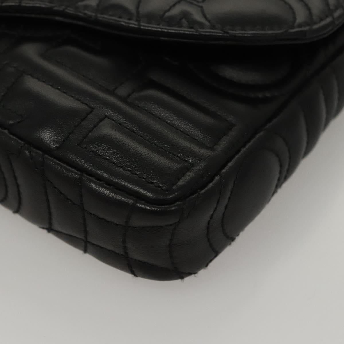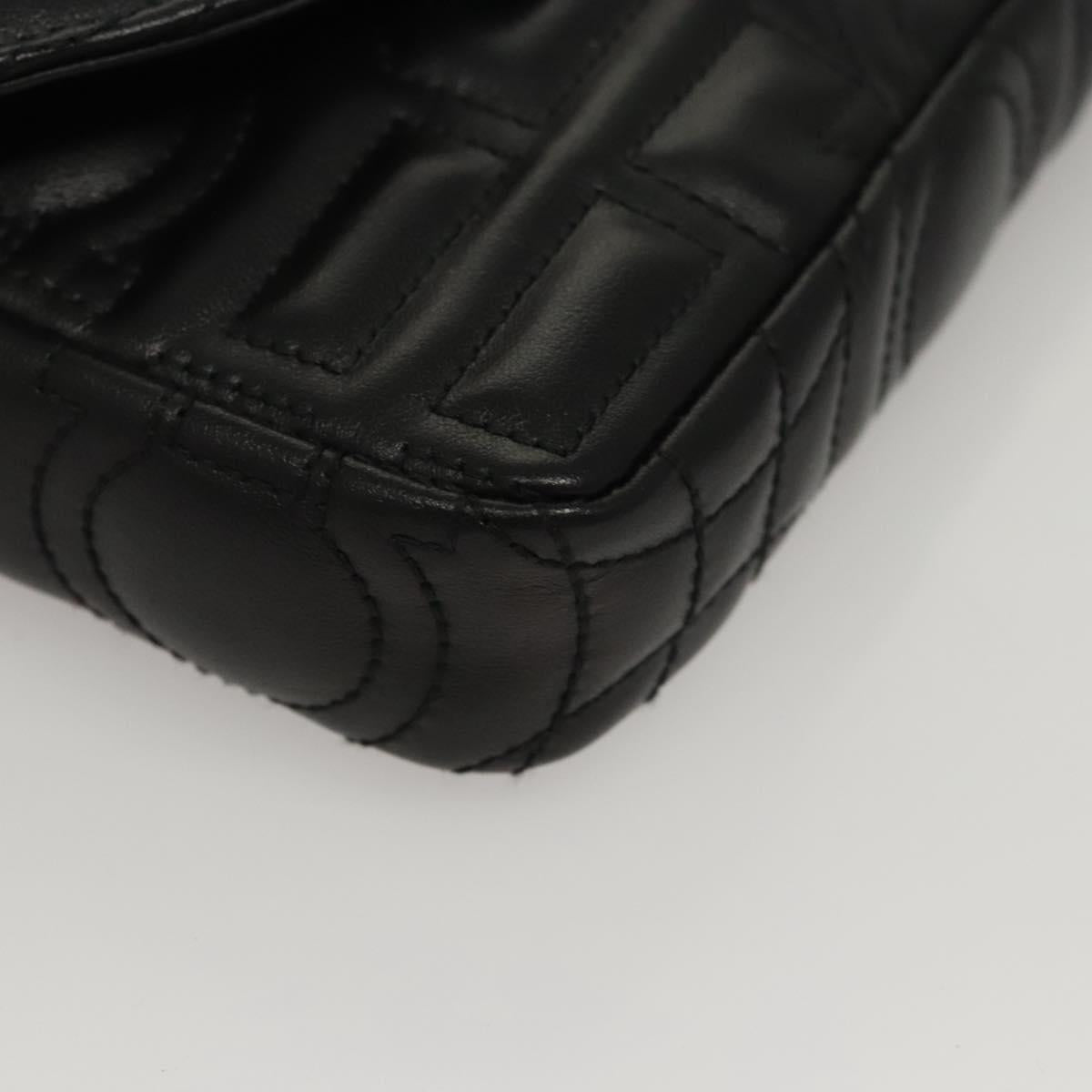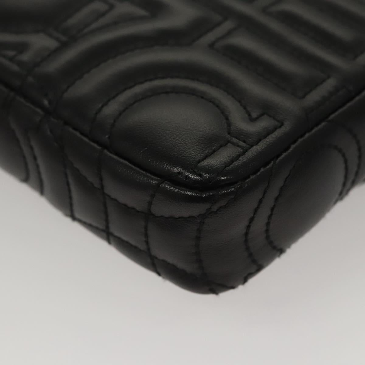 Salvatore Ferragamo Chain Gancini Shoulder Bag Leather Black Gold Auth 116254AM
