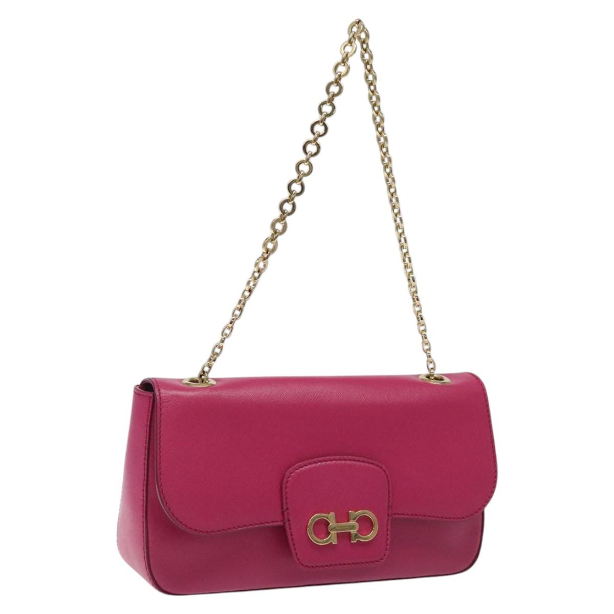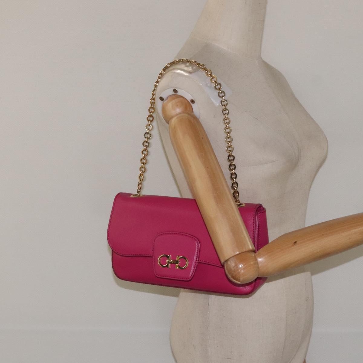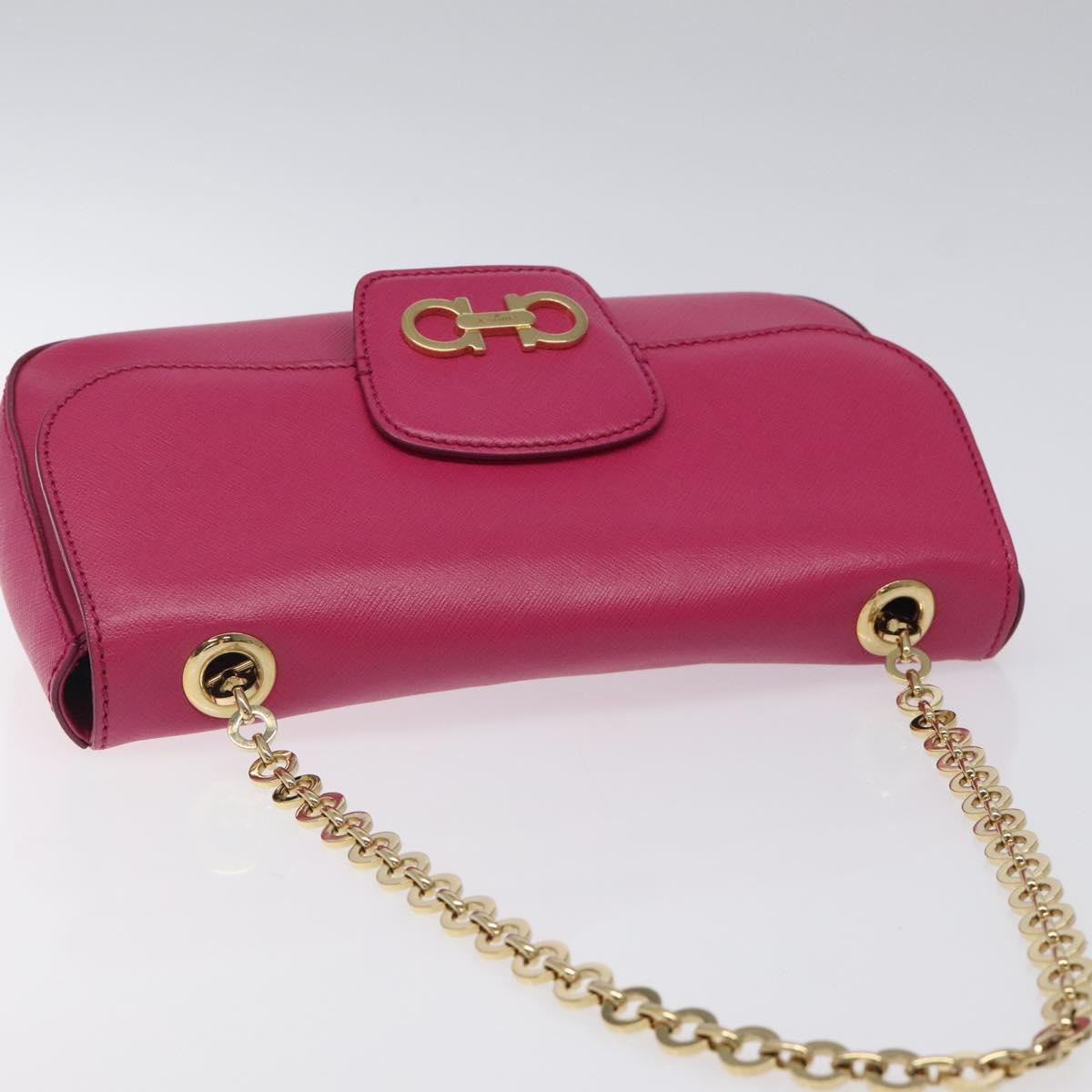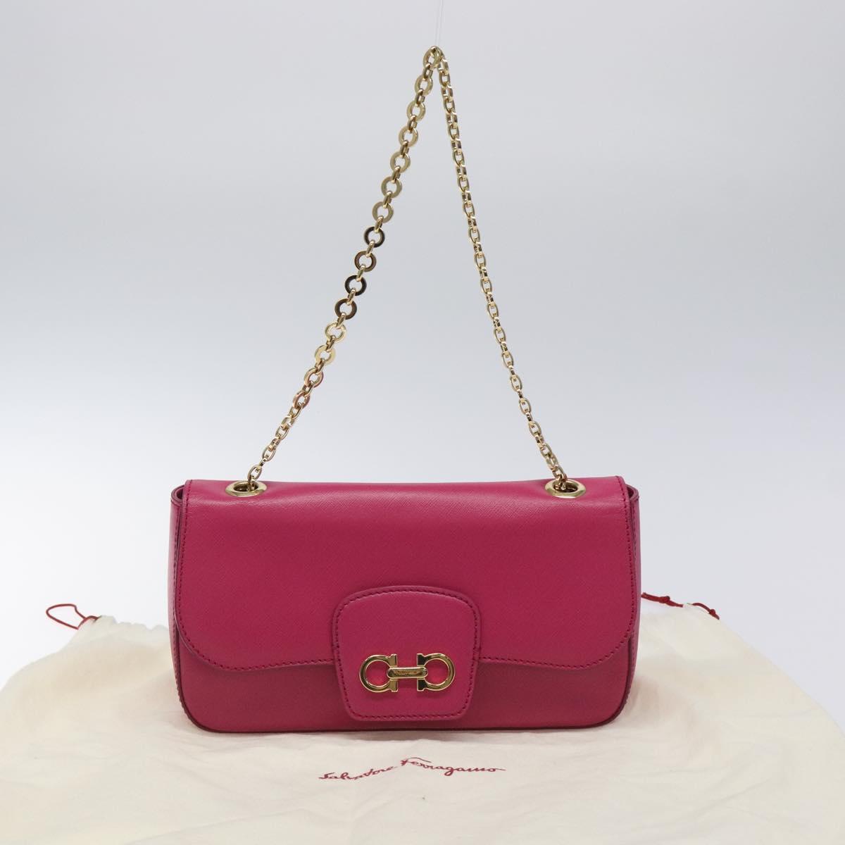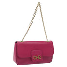Salvatore Ferragamo Gancini Chain Shoulder Bag Safiano Pink Gold Auth 116475AM