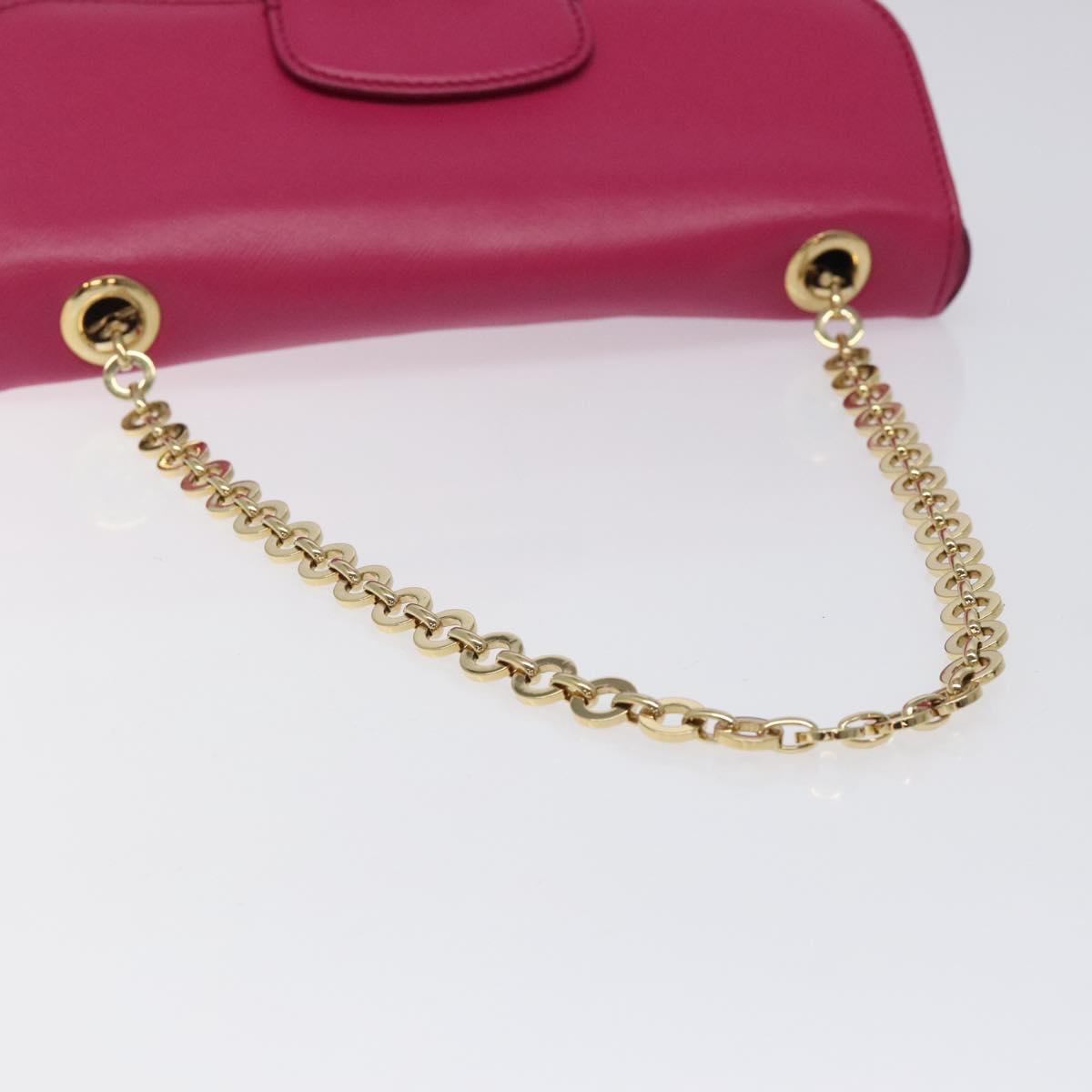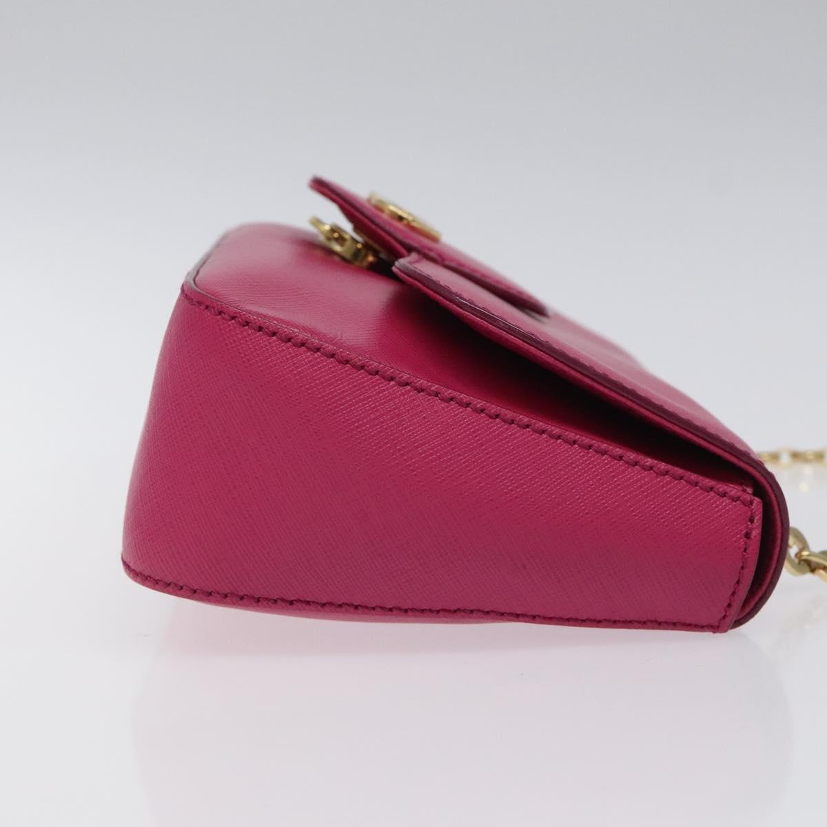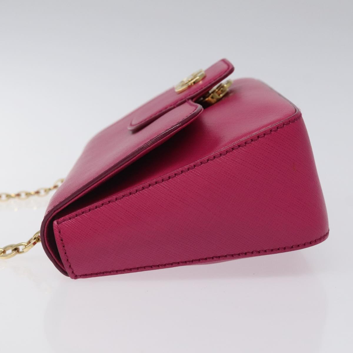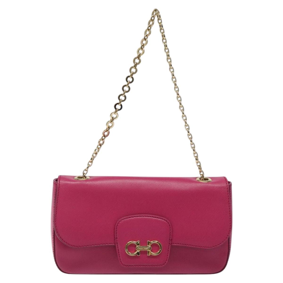 Salvatore Ferragamo Gancini Chain Shoulder Bag Safiano Pink Gold Auth 116475AM