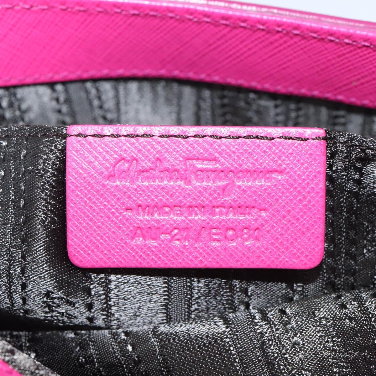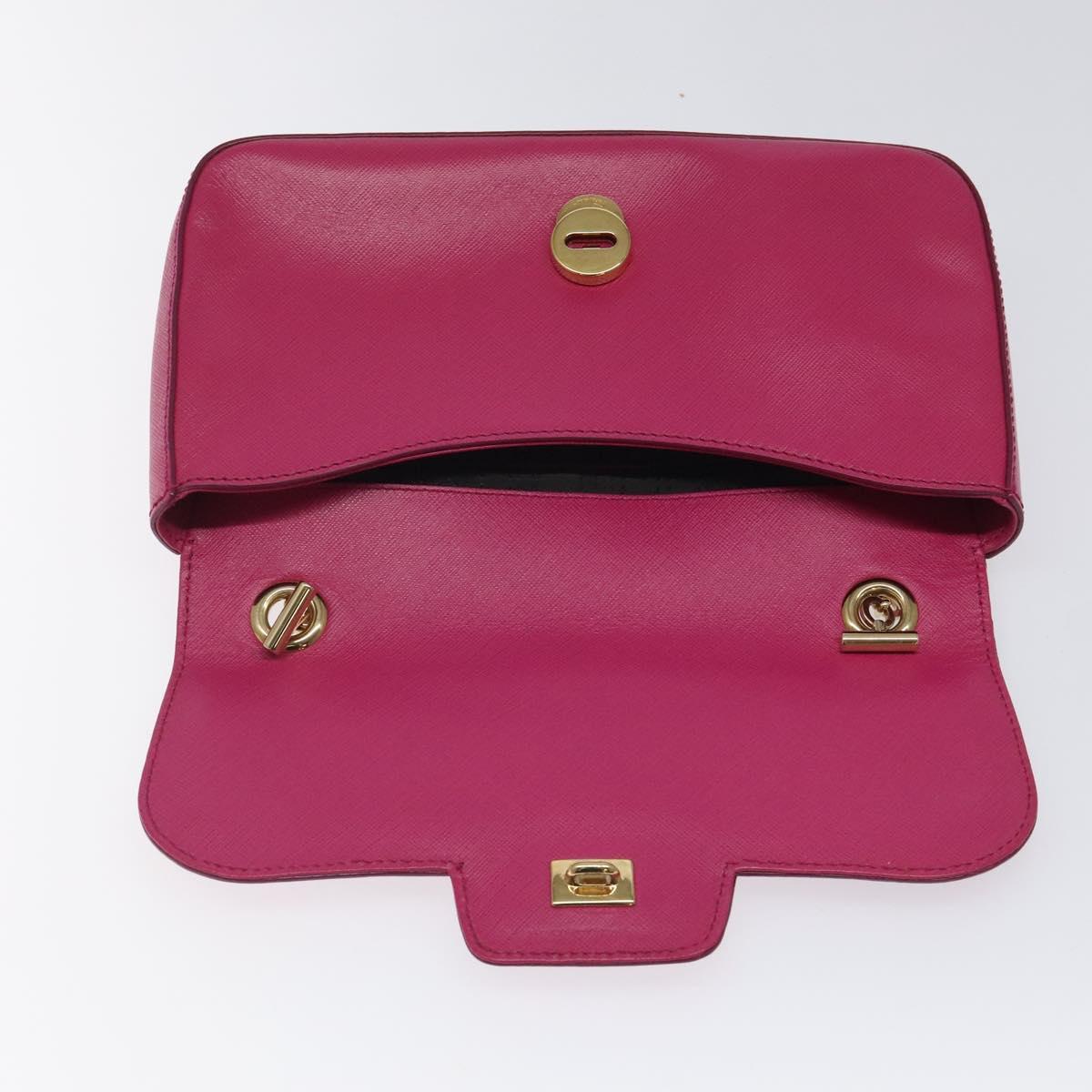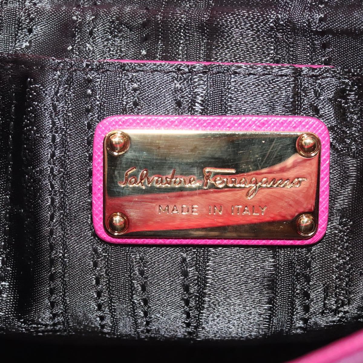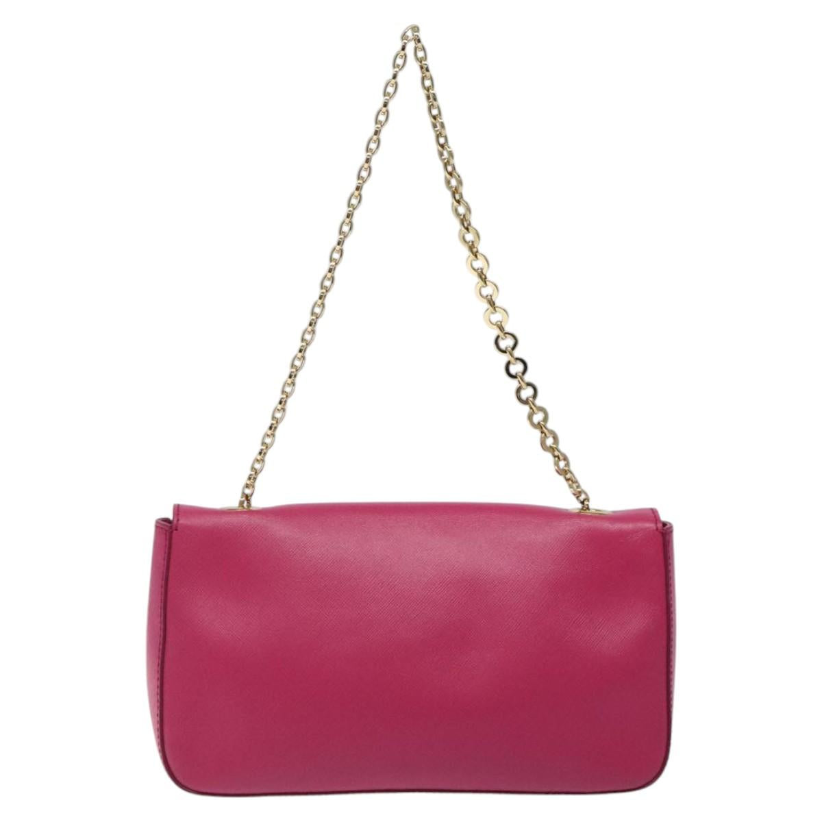 Salvatore Ferragamo Gancini Chain Shoulder Bag Safiano Pink Gold Auth 116475AM