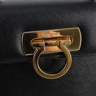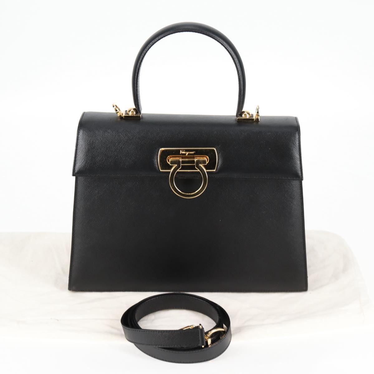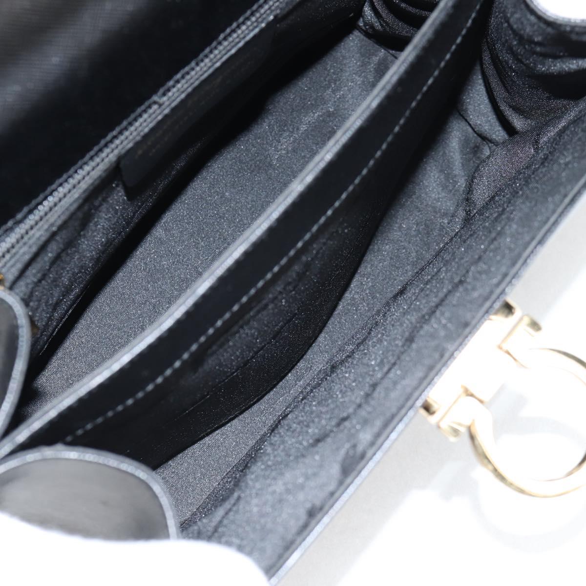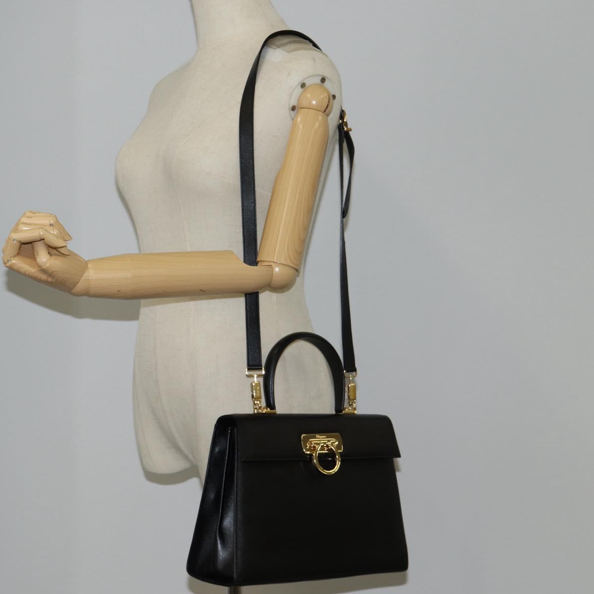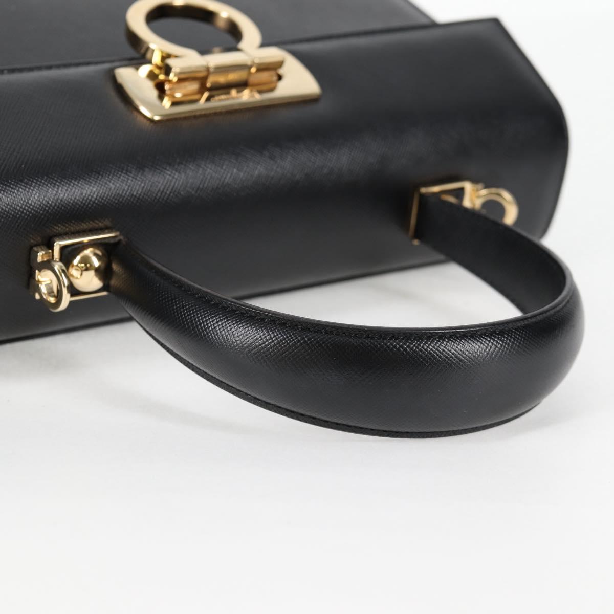Salvatore Ferragamo Gancini Hand Bag Leather 2way Black Gold Auth 121911AM