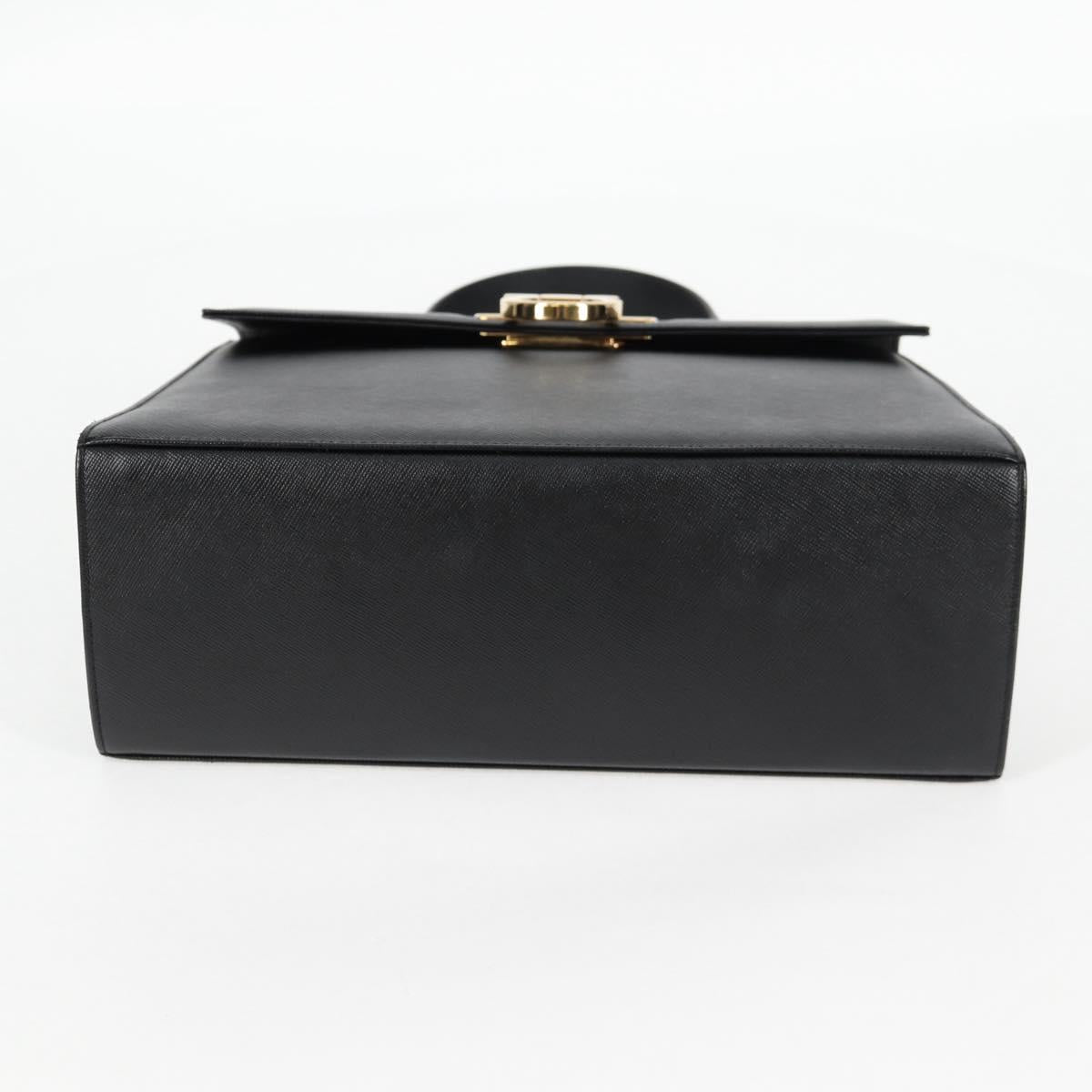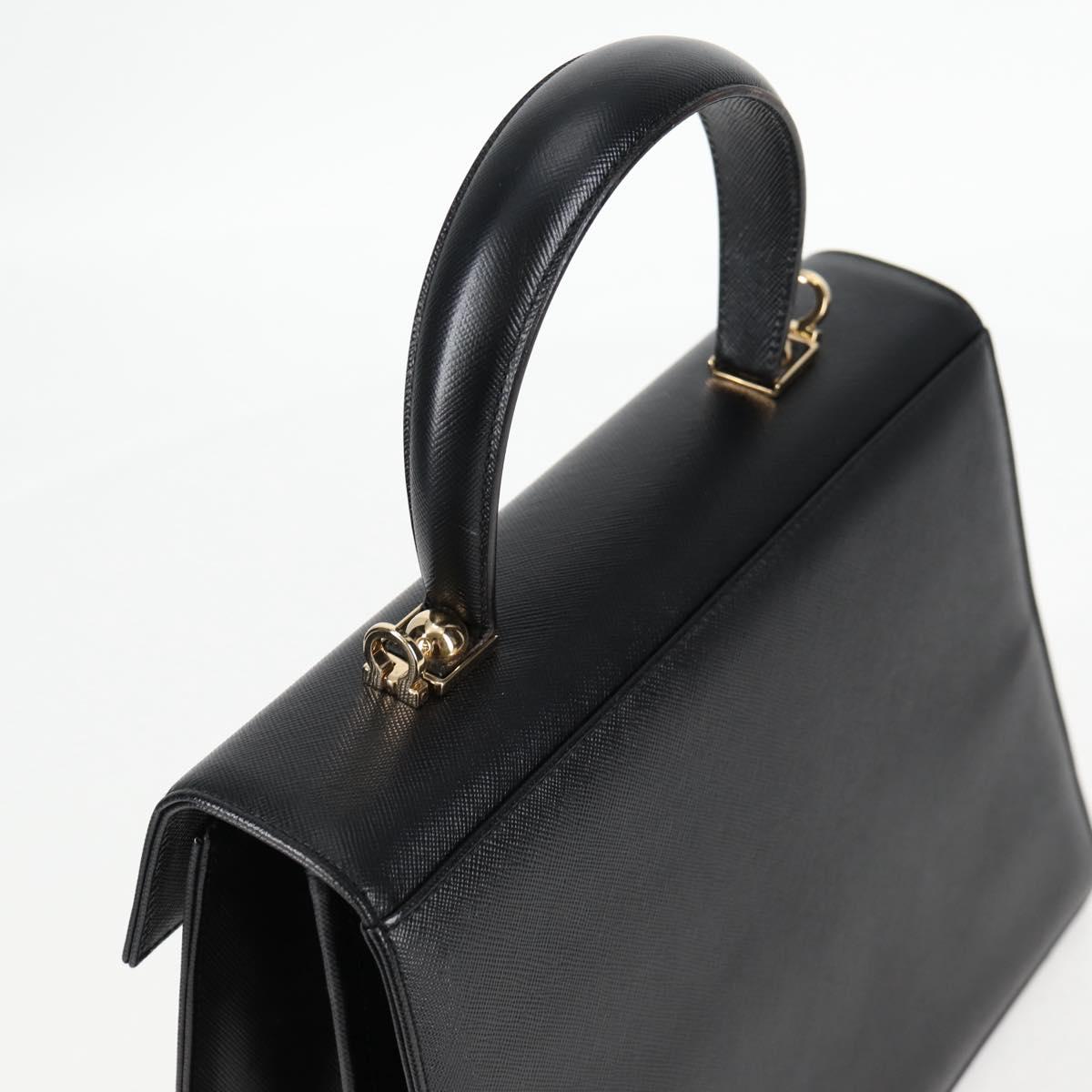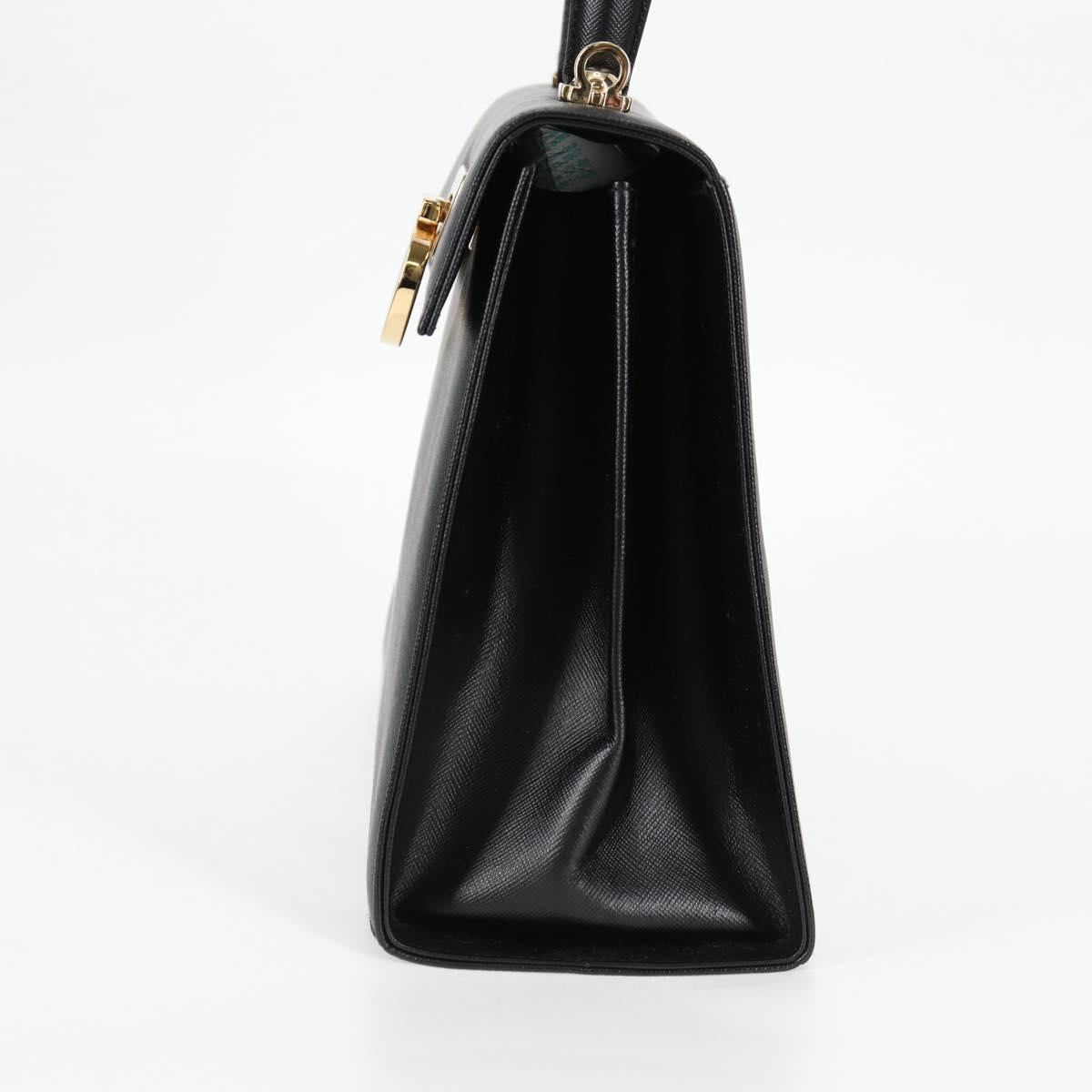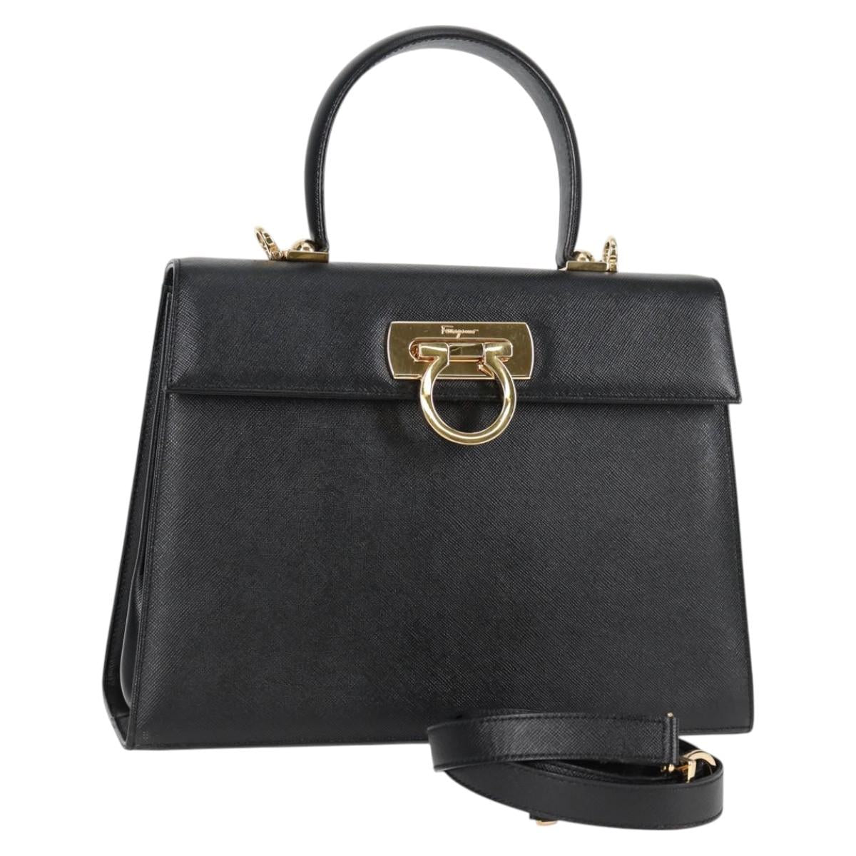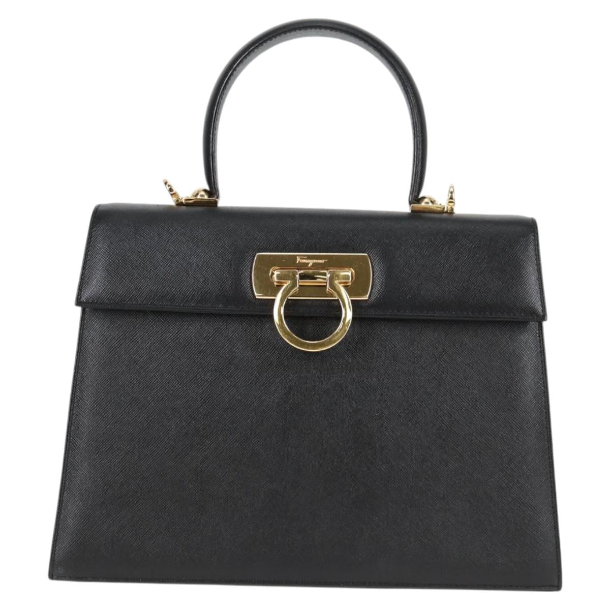 Salvatore Ferragamo Gancini Hand Bag Leather 2way Black Gold Auth 121911AM