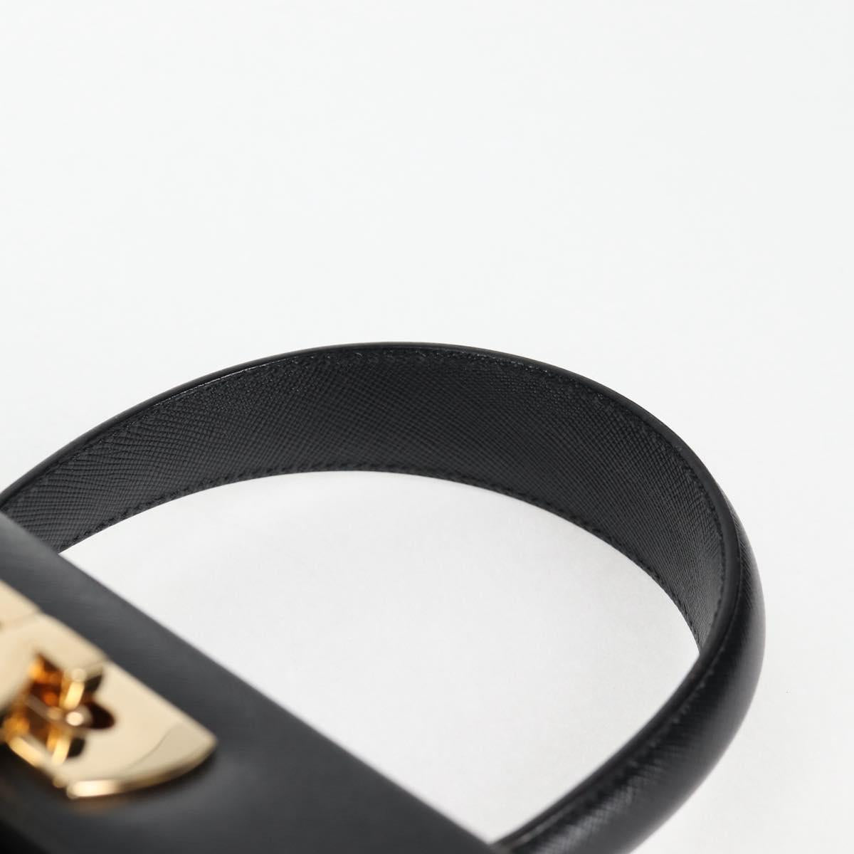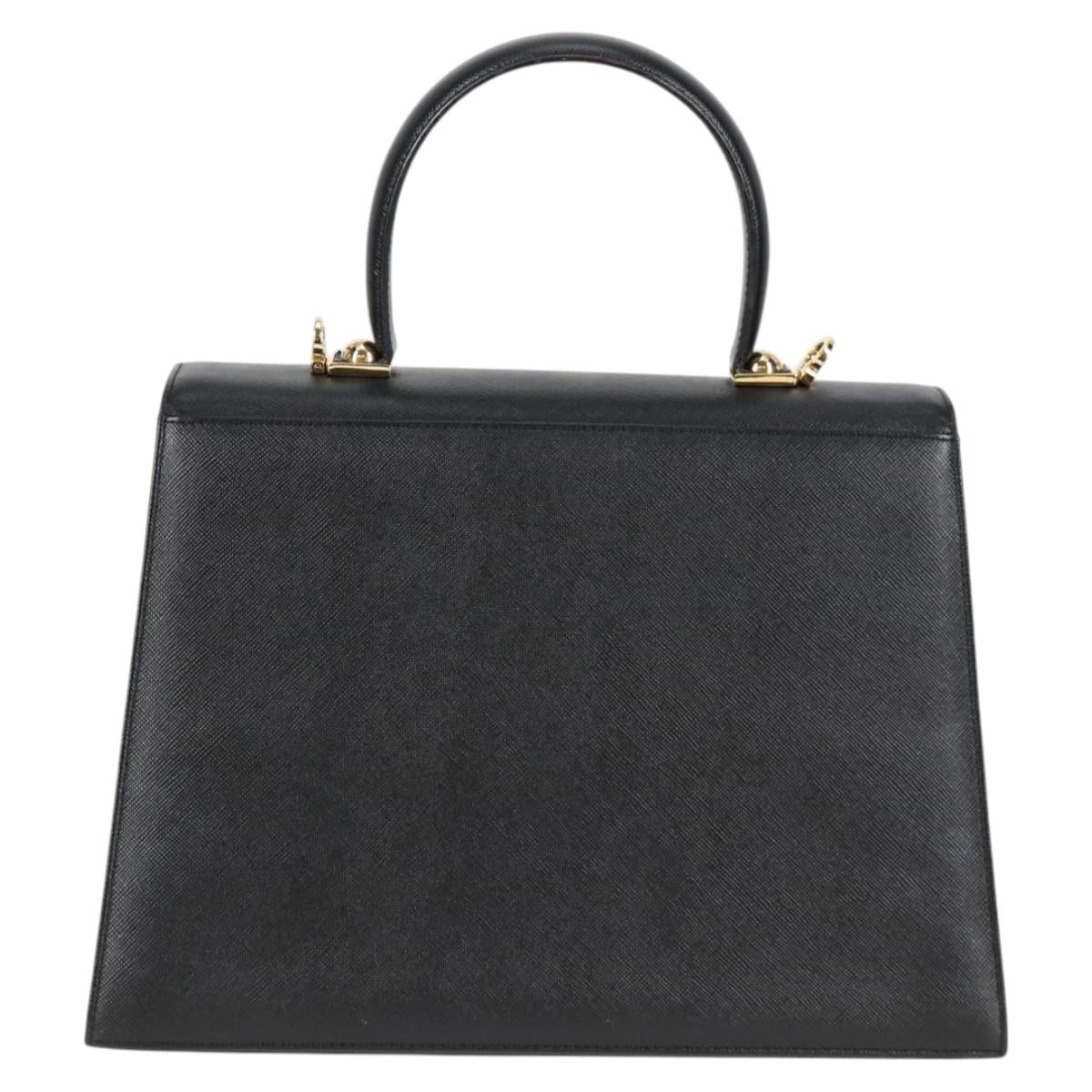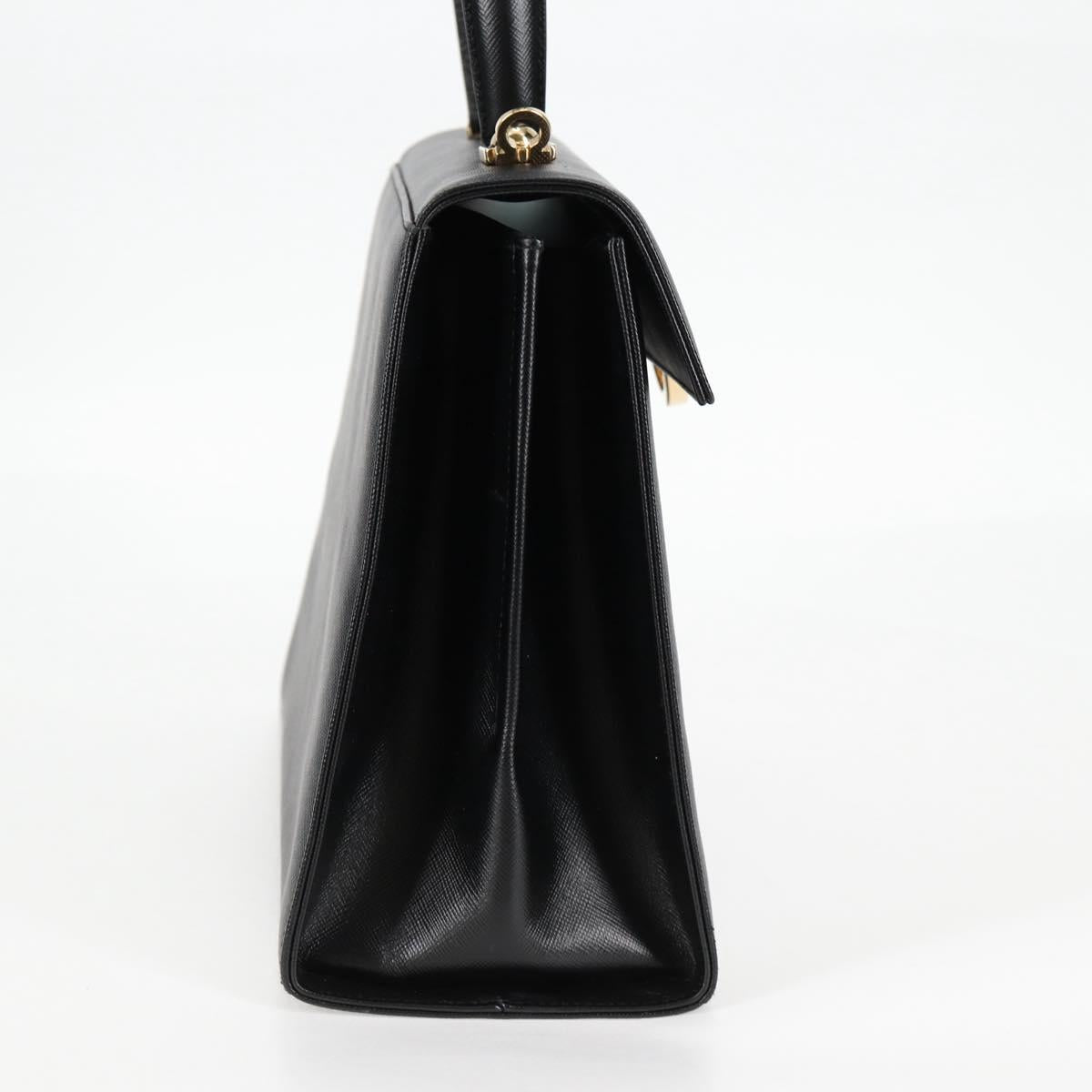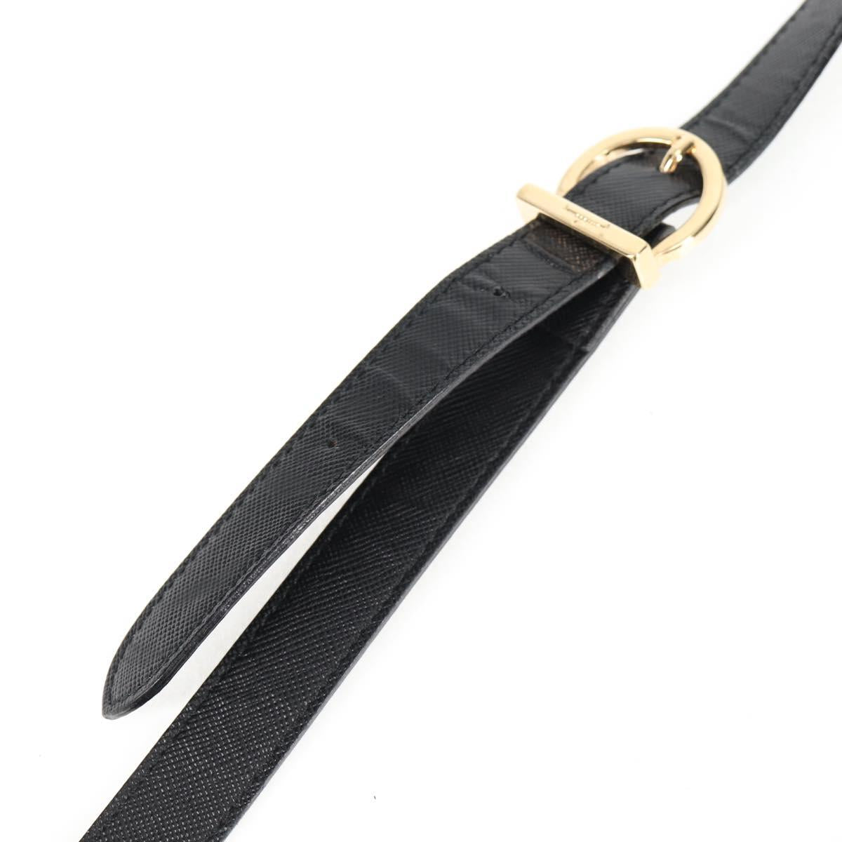 Salvatore Ferragamo Gancini Hand Bag Leather 2way Black Gold Auth 121911AM