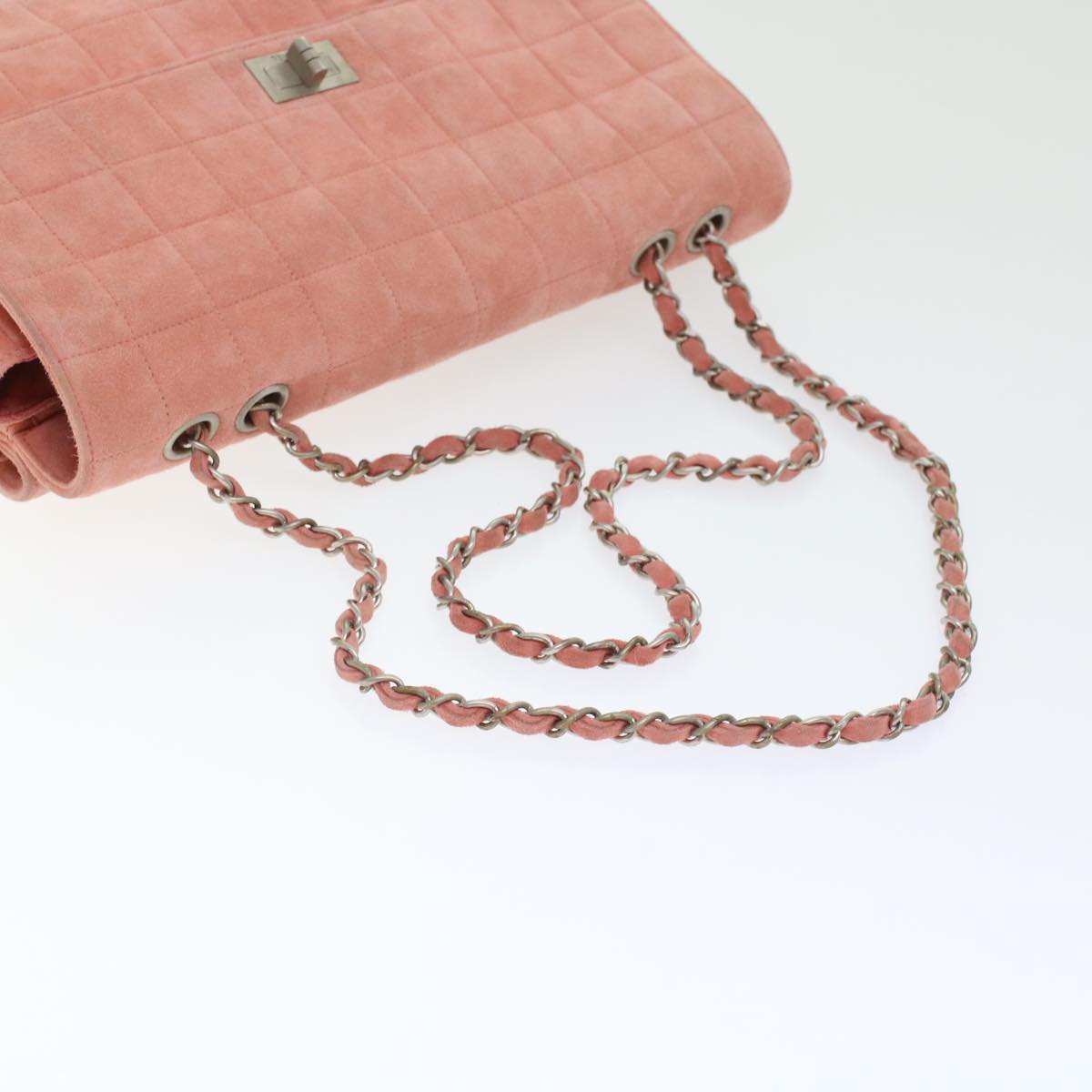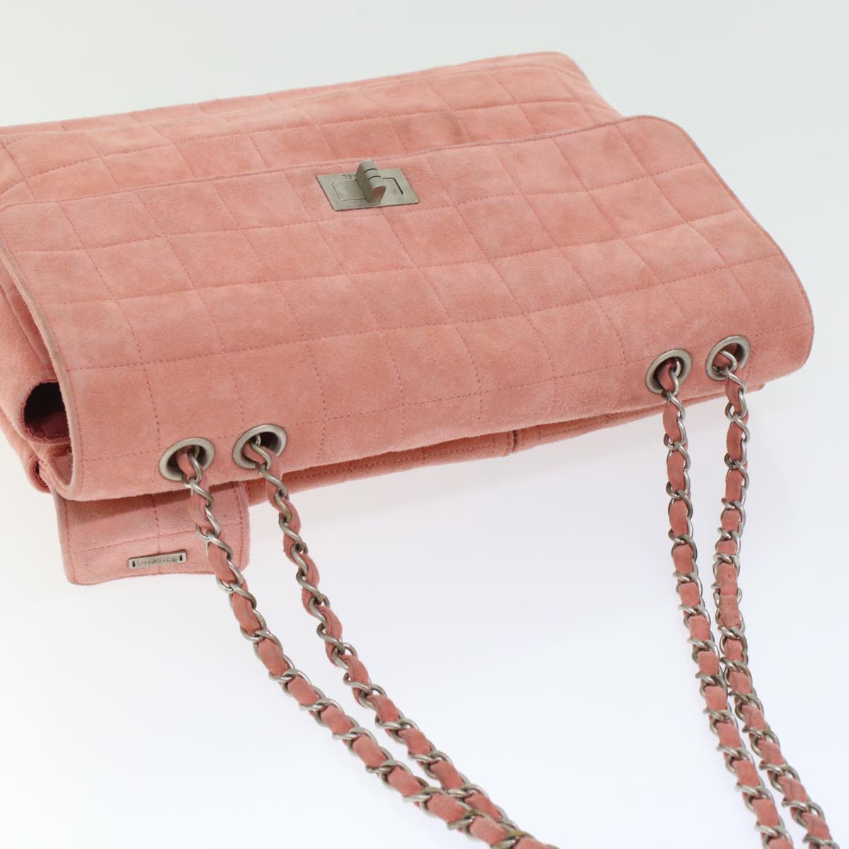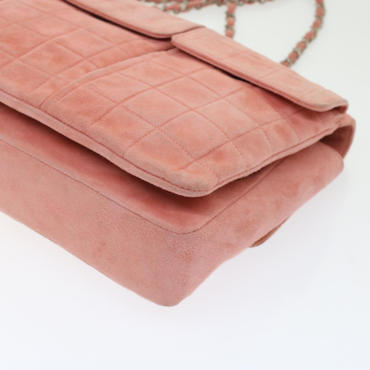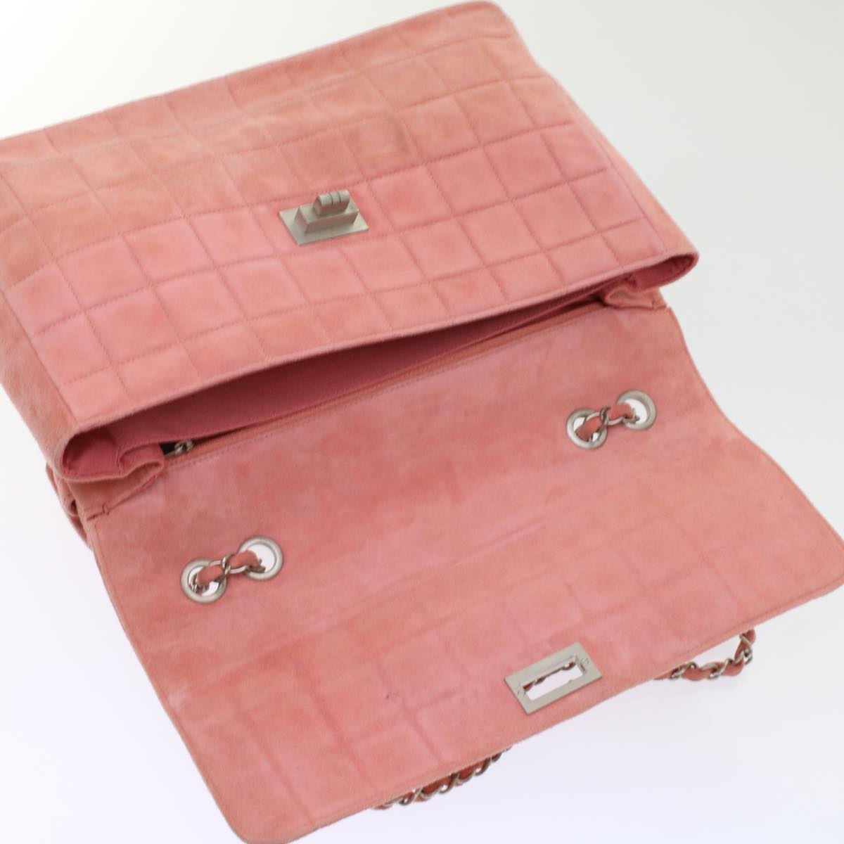 CHANEL Choco Bar Chain Shoulder Bag Suede Pink CC Auth bs7084