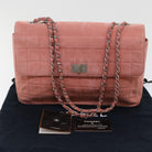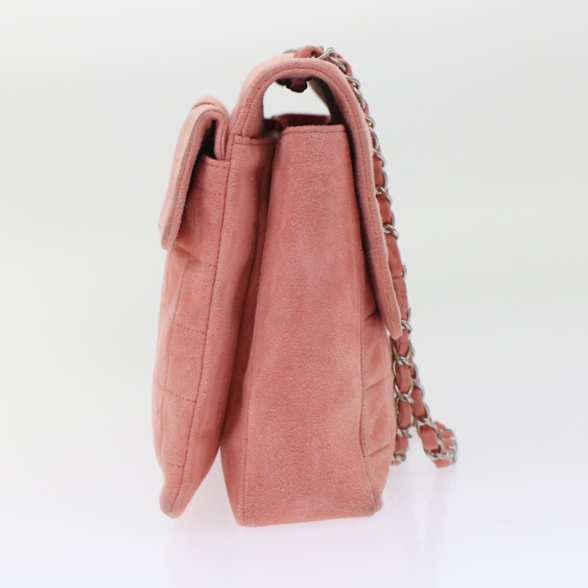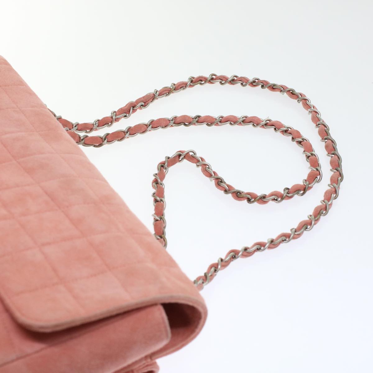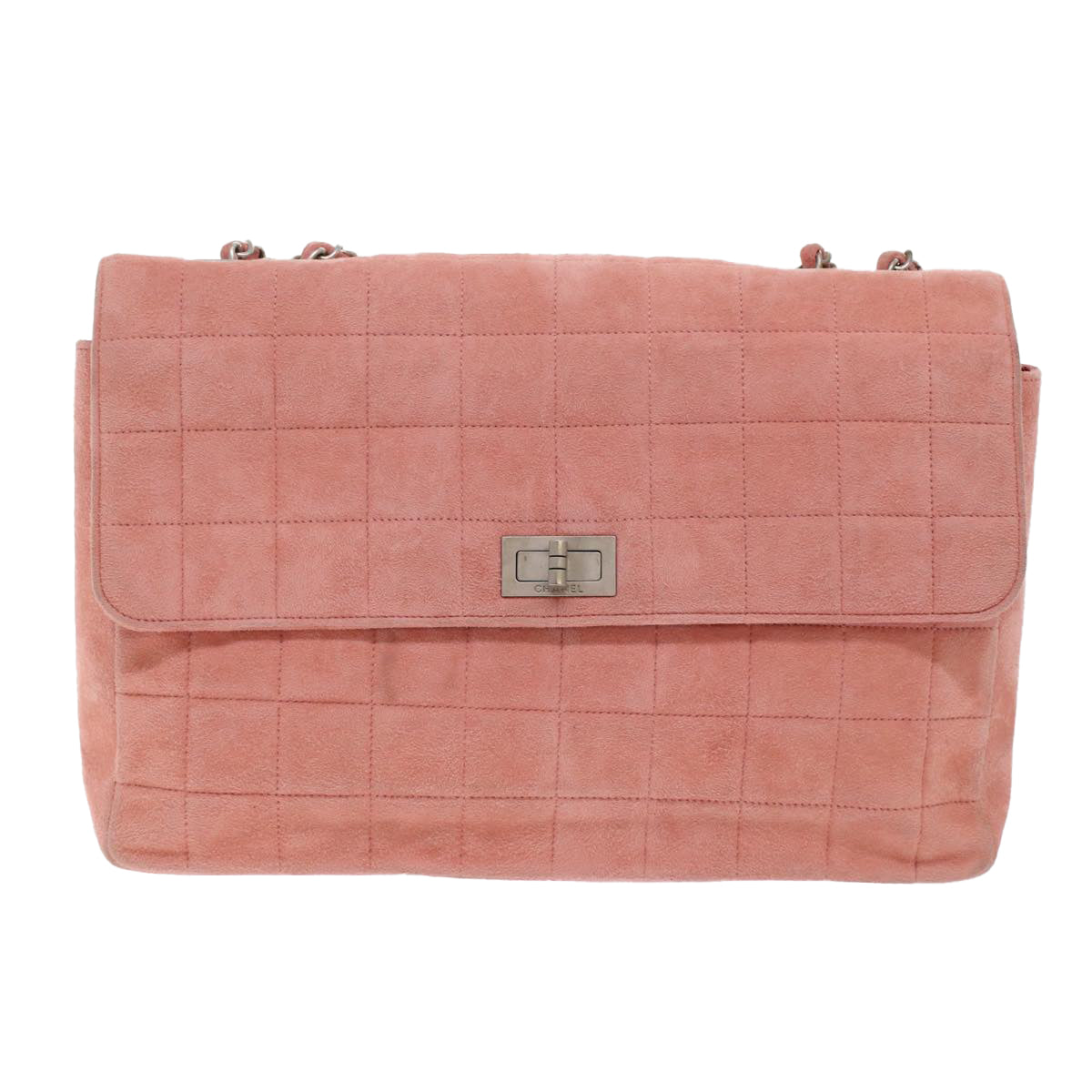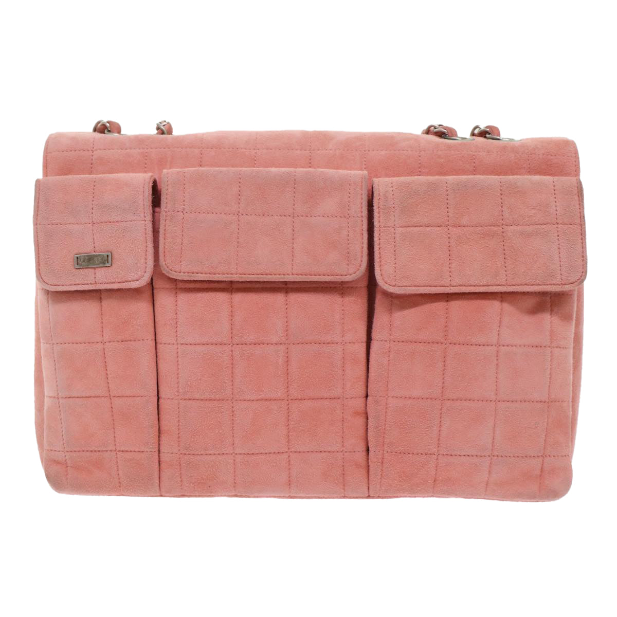 CHANEL Choco Bar Chain Shoulder Bag Suede Pink CC Auth bs7084