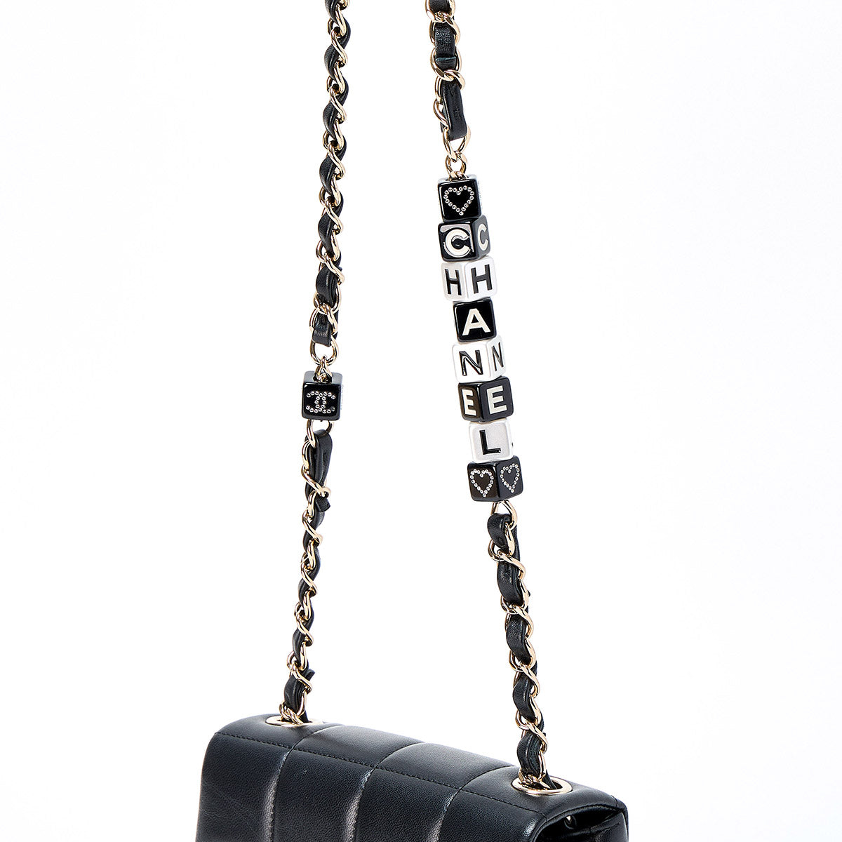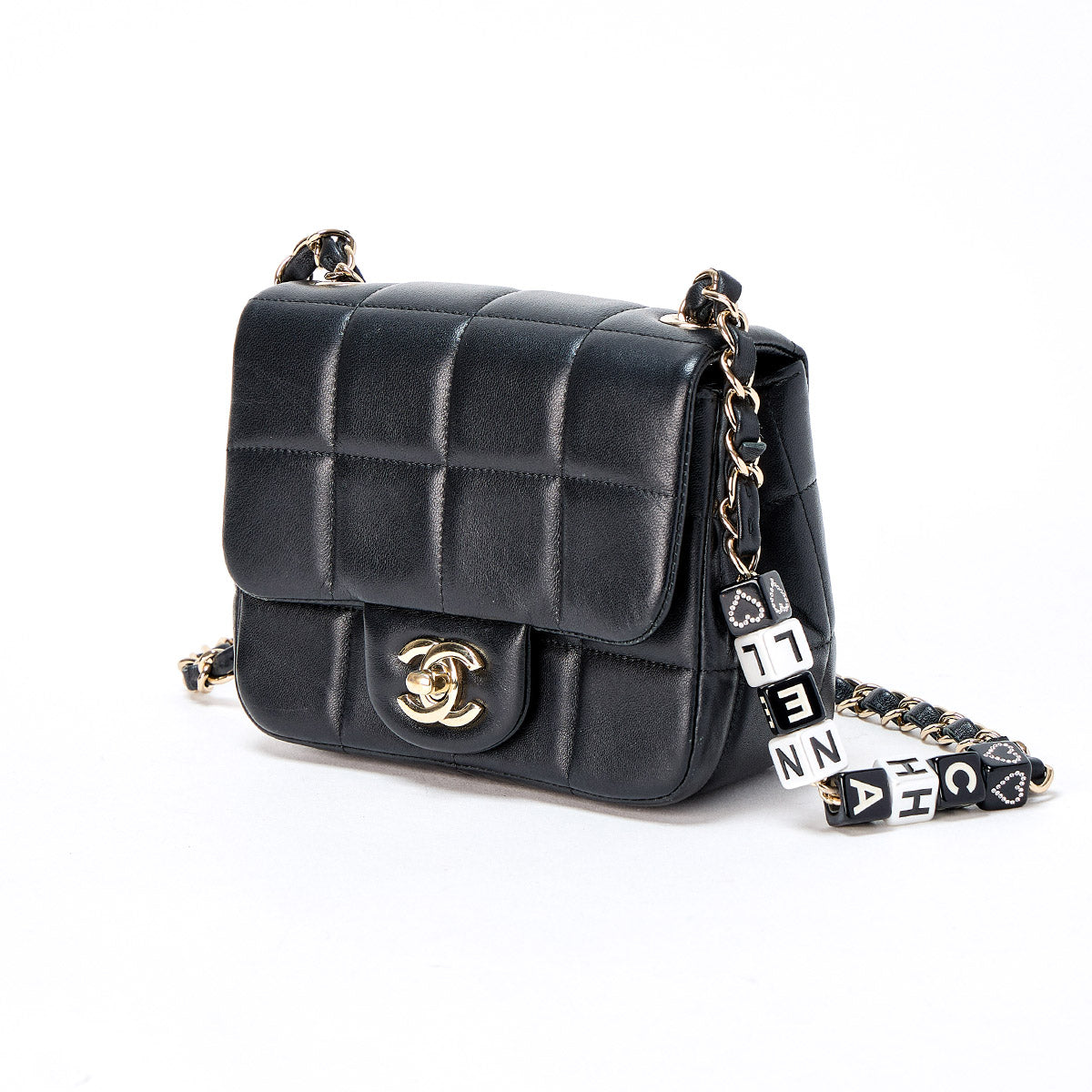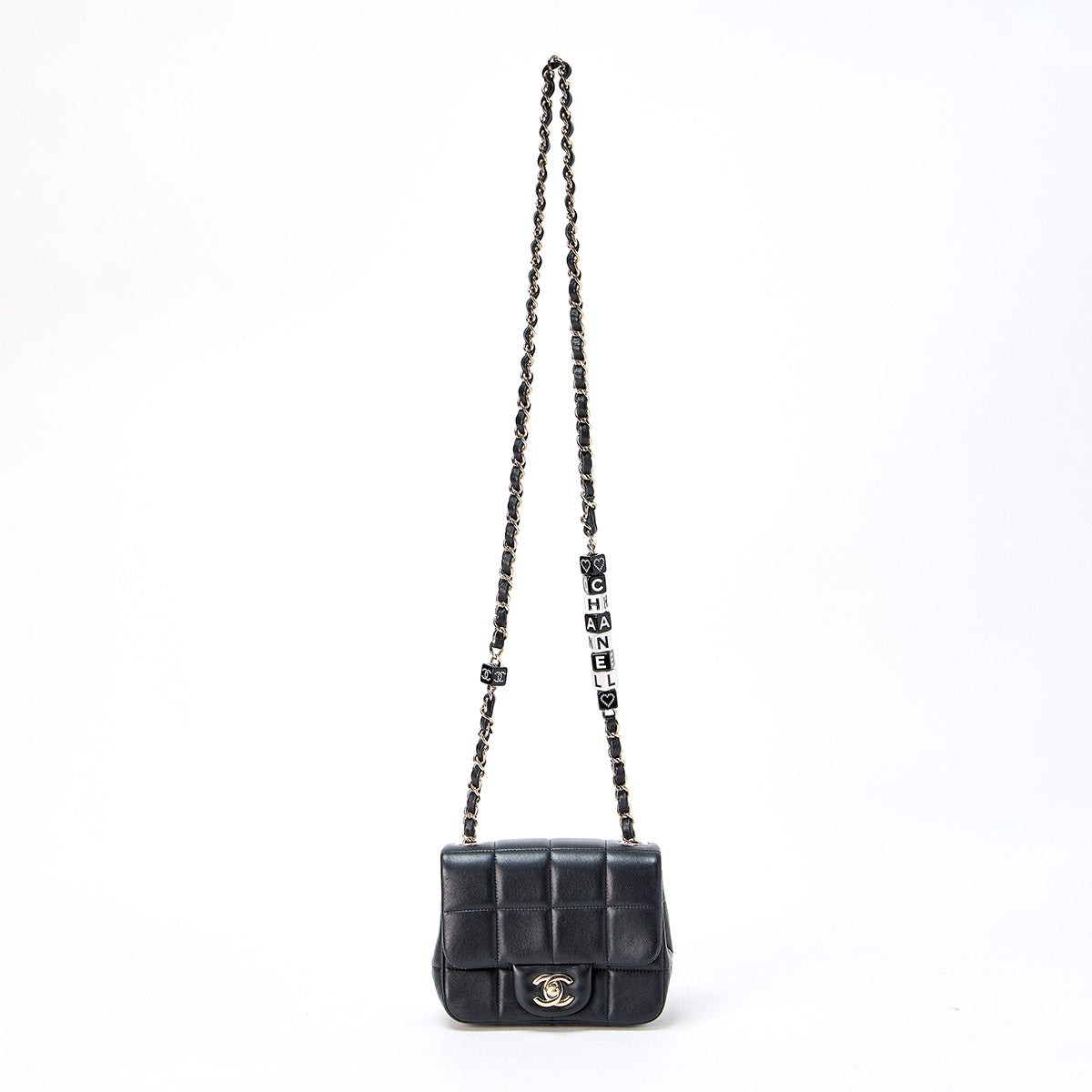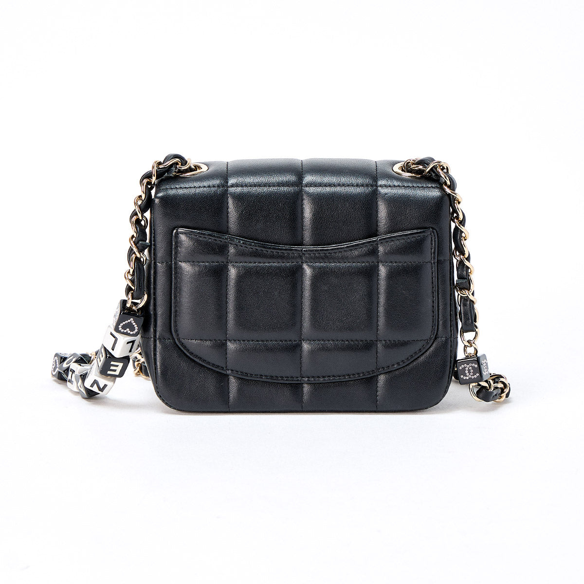 CHANEL Choco Bar Single Flap Single Chain Shoulder Bag 2021 and after Black Gold Lamb Skin Auth