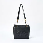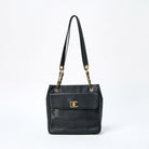 CHANEL COCO Mark 1995 Shoulder Bag Black Gold Caviar Skin Auth