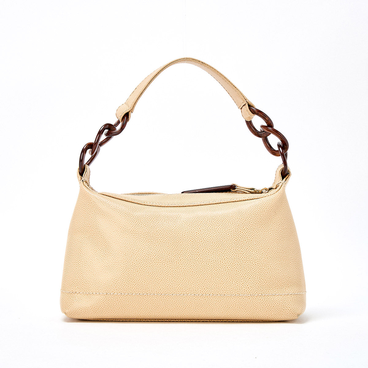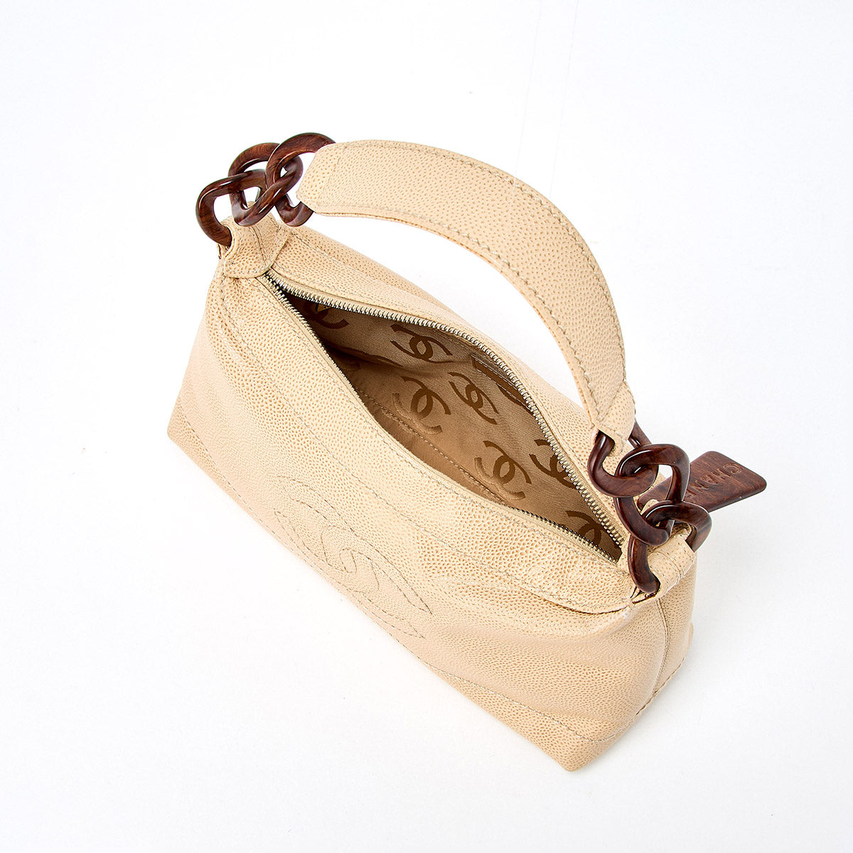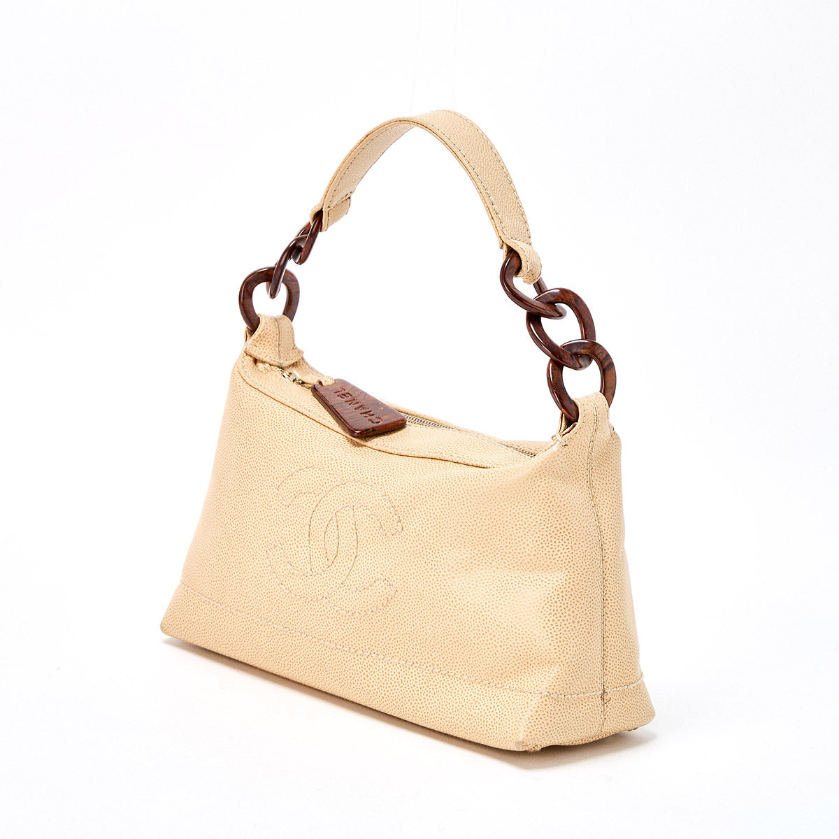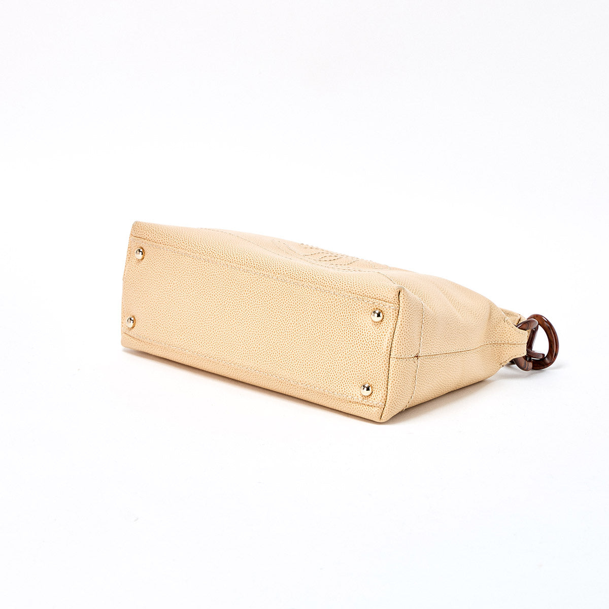 CHANEL COCO Mark 2002 Shoulder Bag Beige Gold Caviar Skin Auth