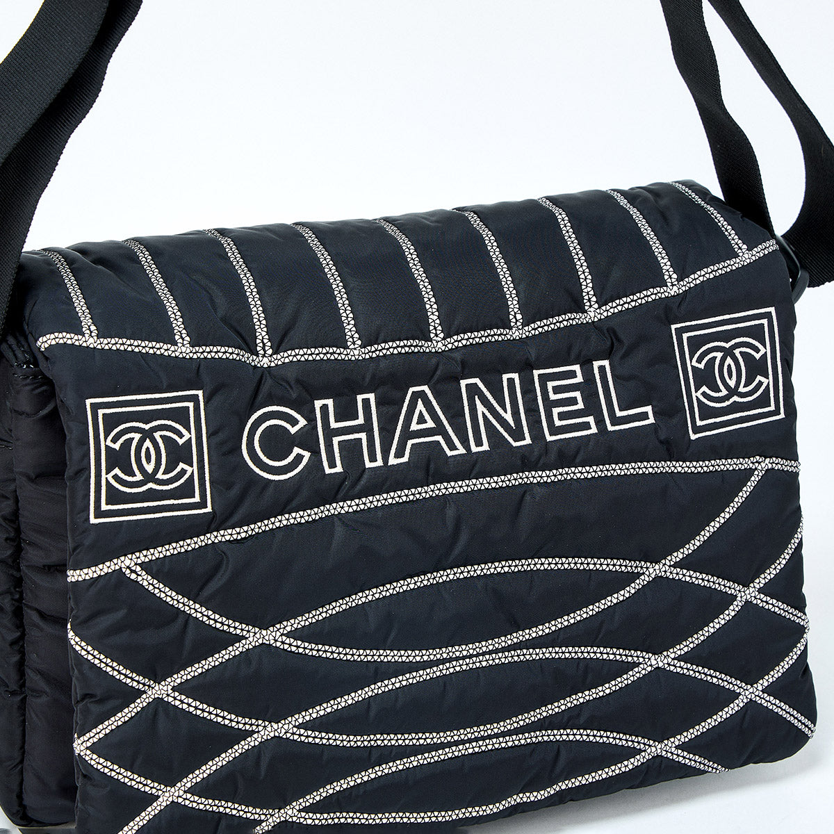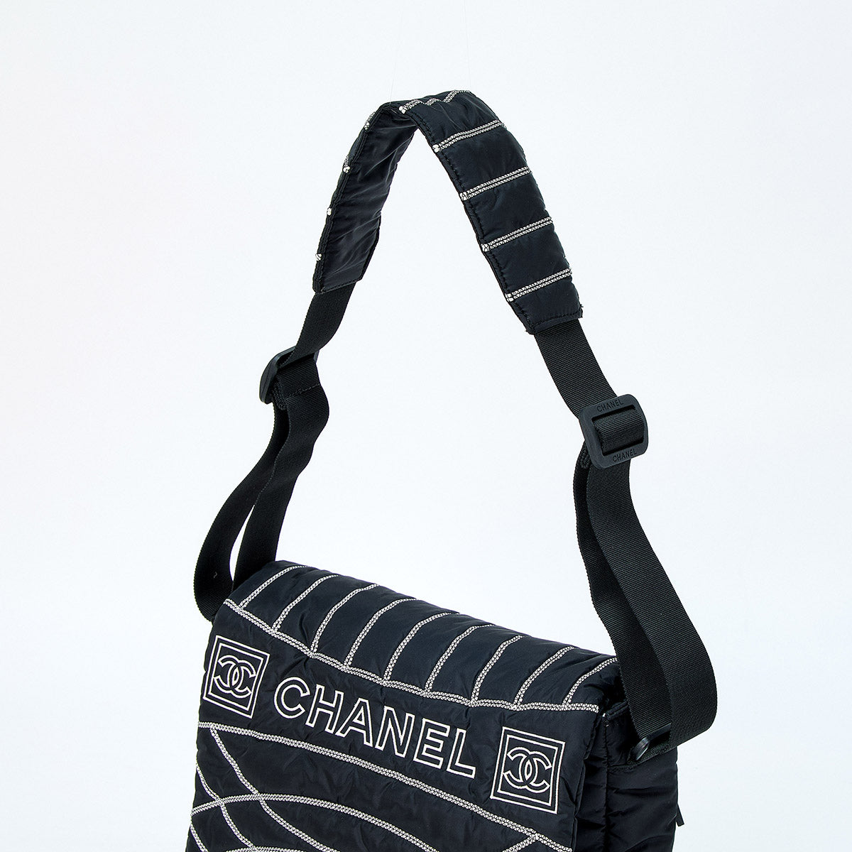 CHANEL COCO Mark Sports Line Shoulder Bag Black Nylon Auth