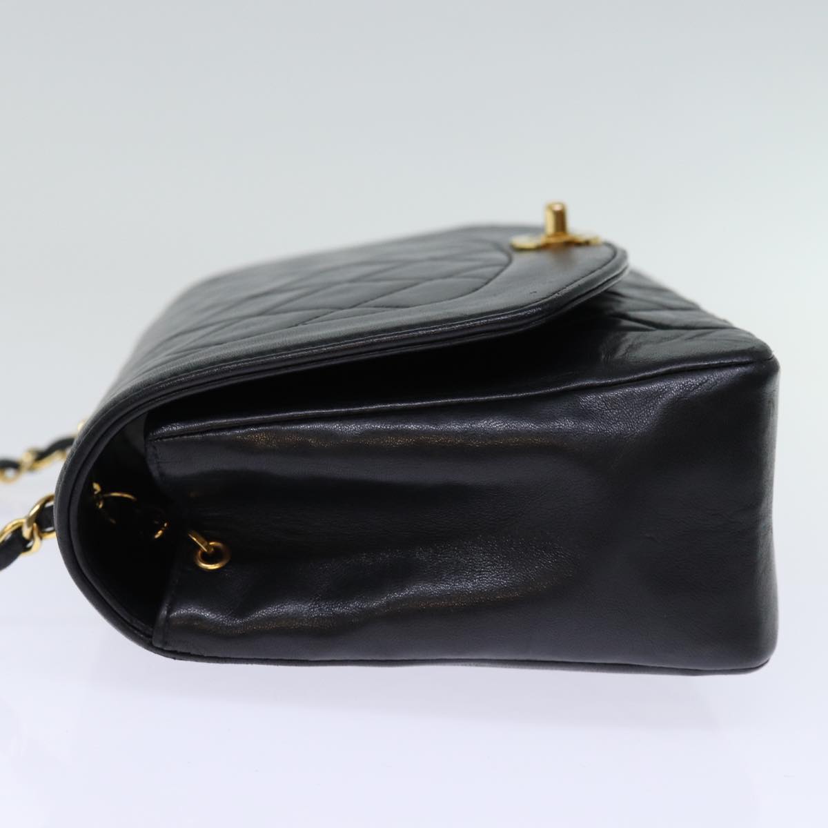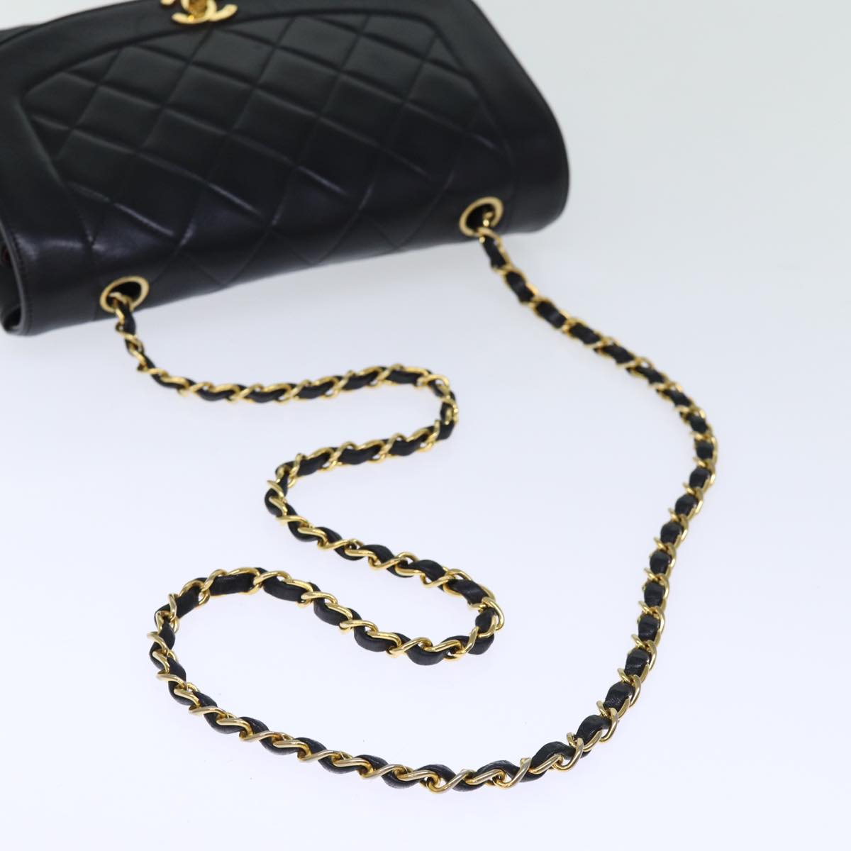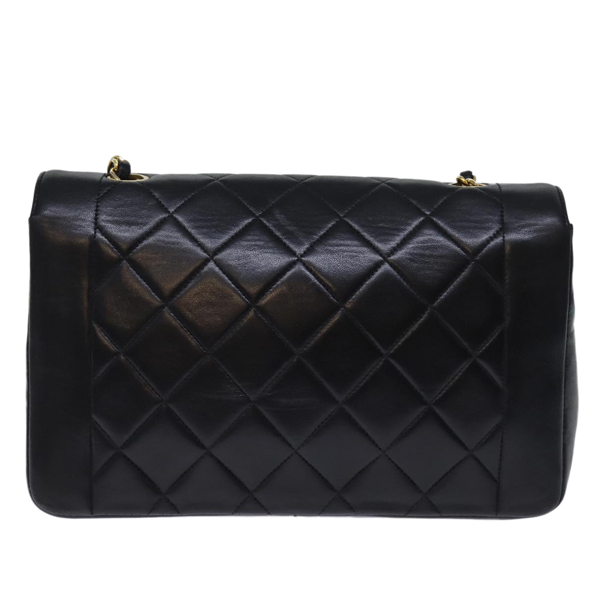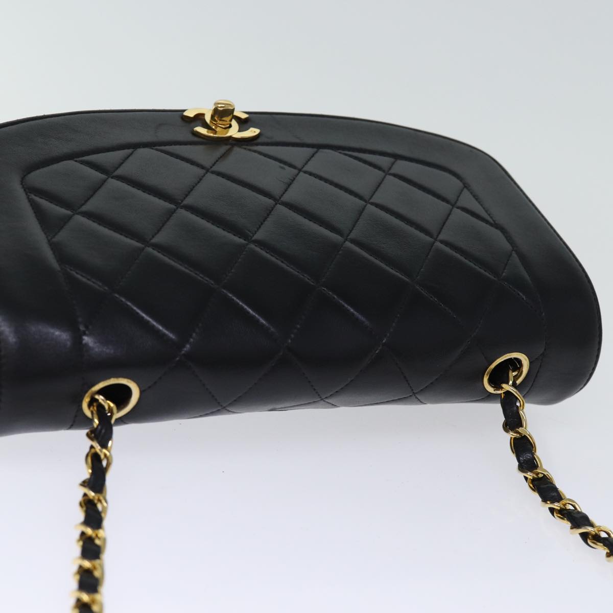 CHANEL Diana Matelasse Chain Shoulder Bag Lamb Skin Black CC Auth yk12418AV