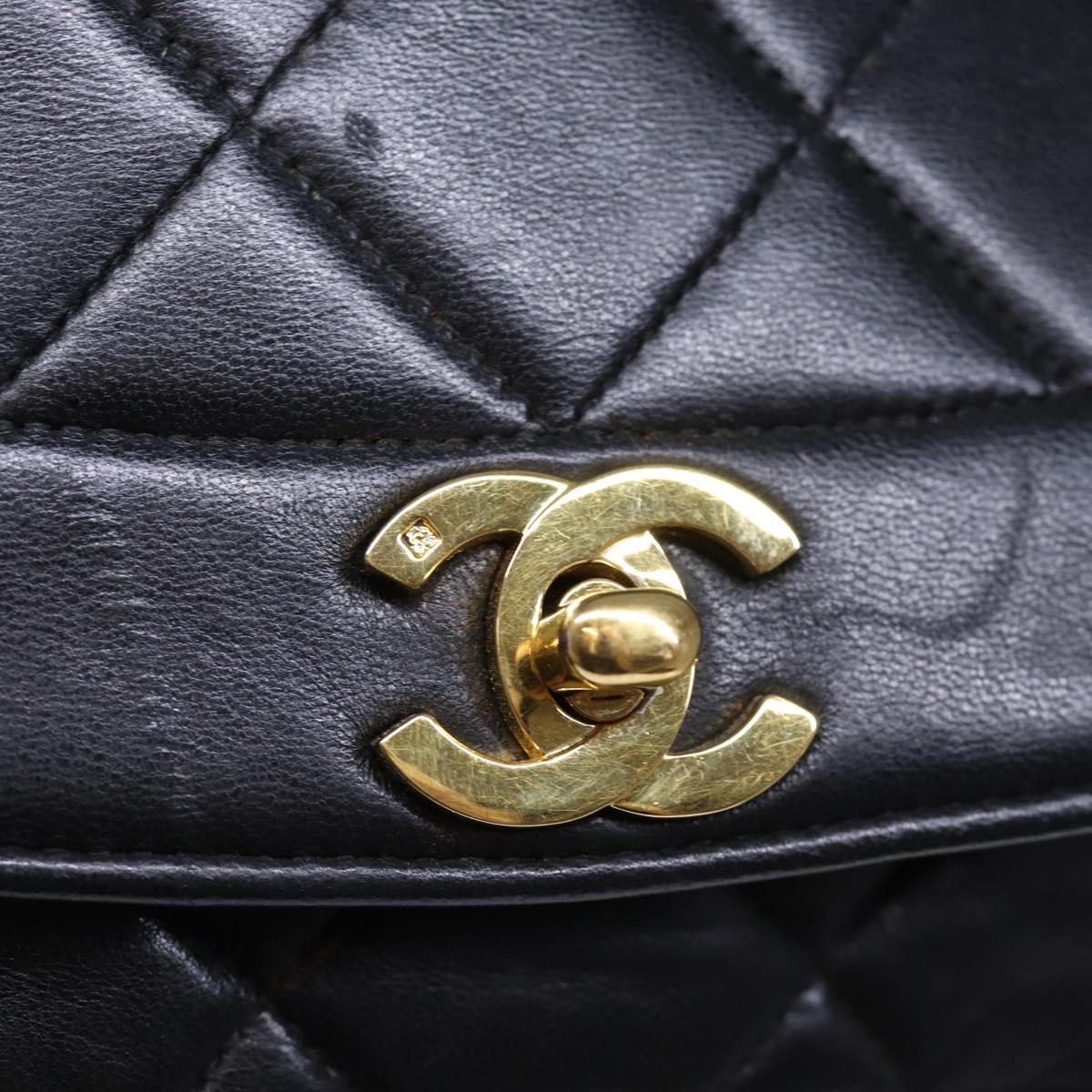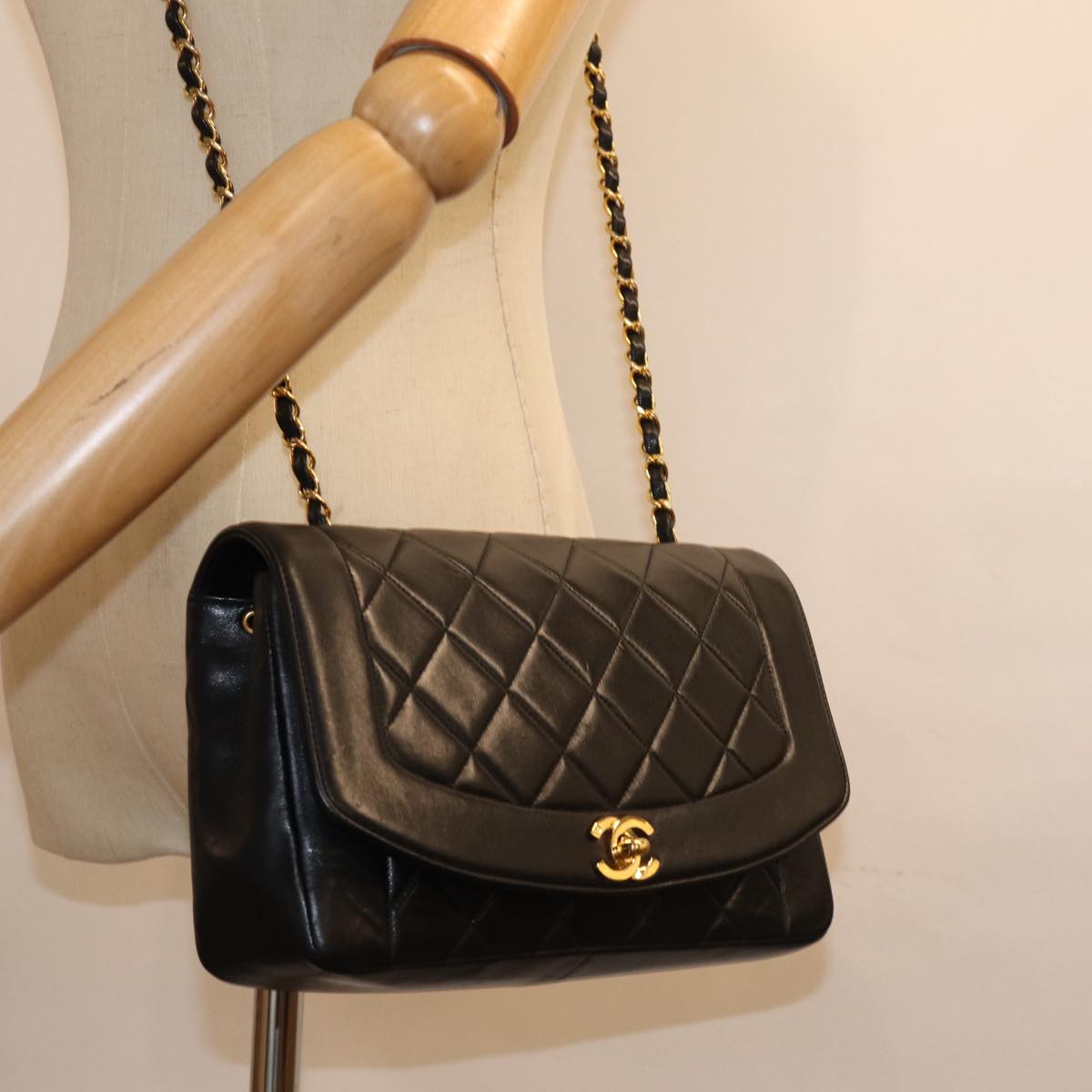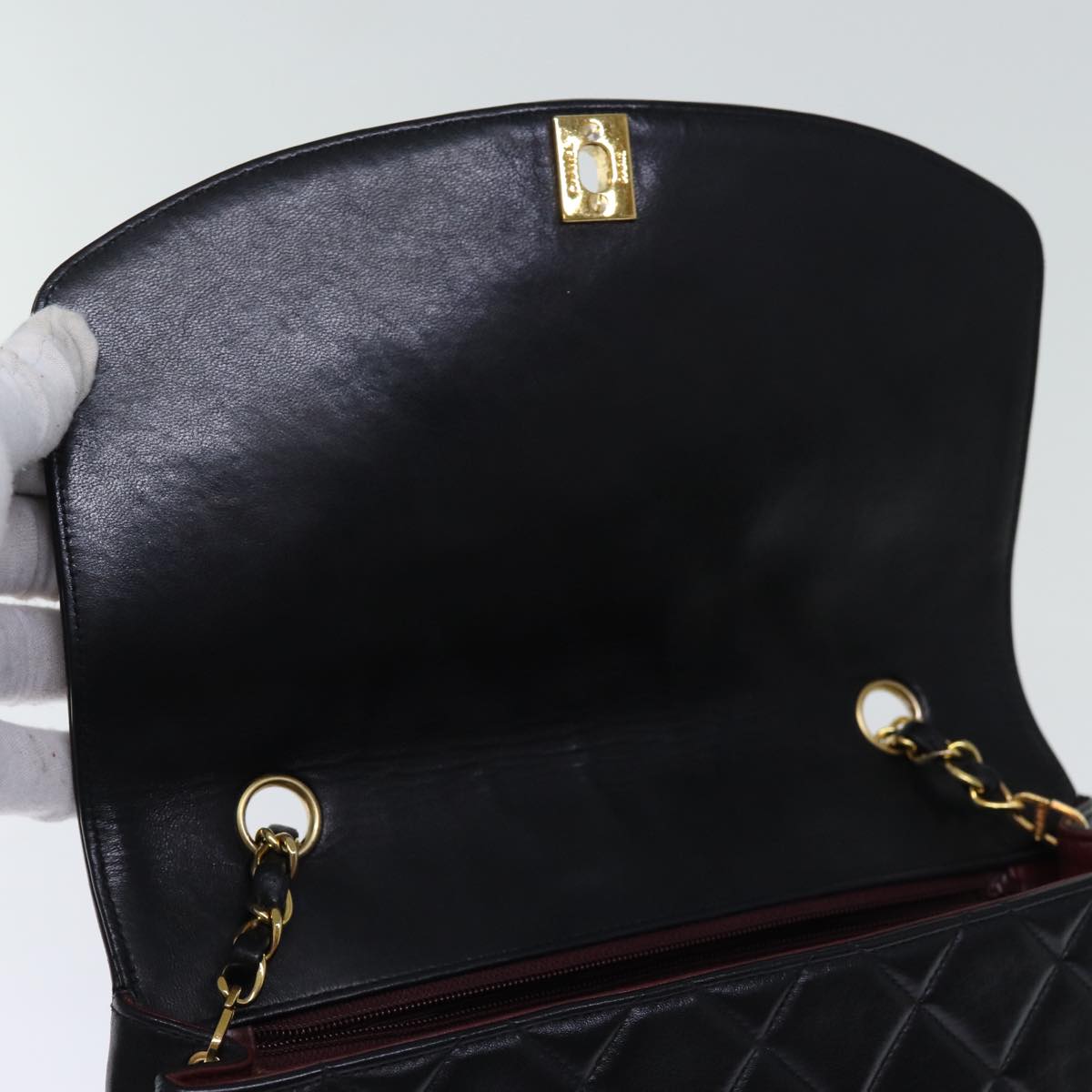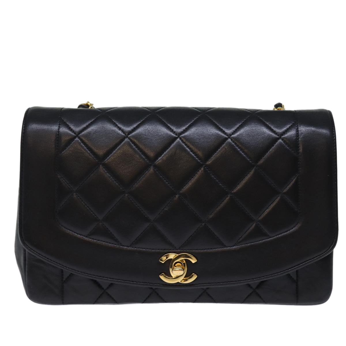 CHANEL Diana Matelasse Chain Shoulder Bag Lamb Skin Black CC Auth yk12418AV