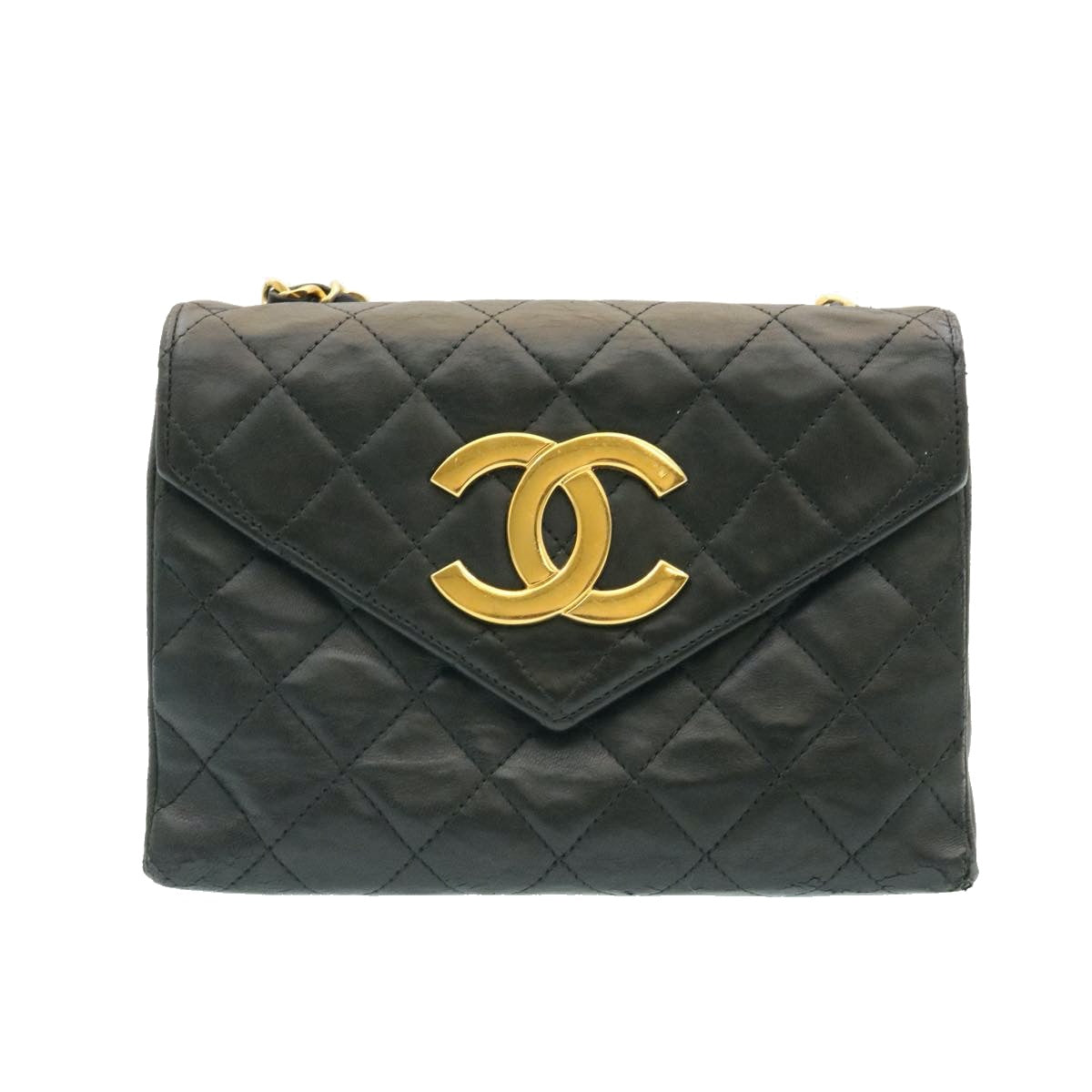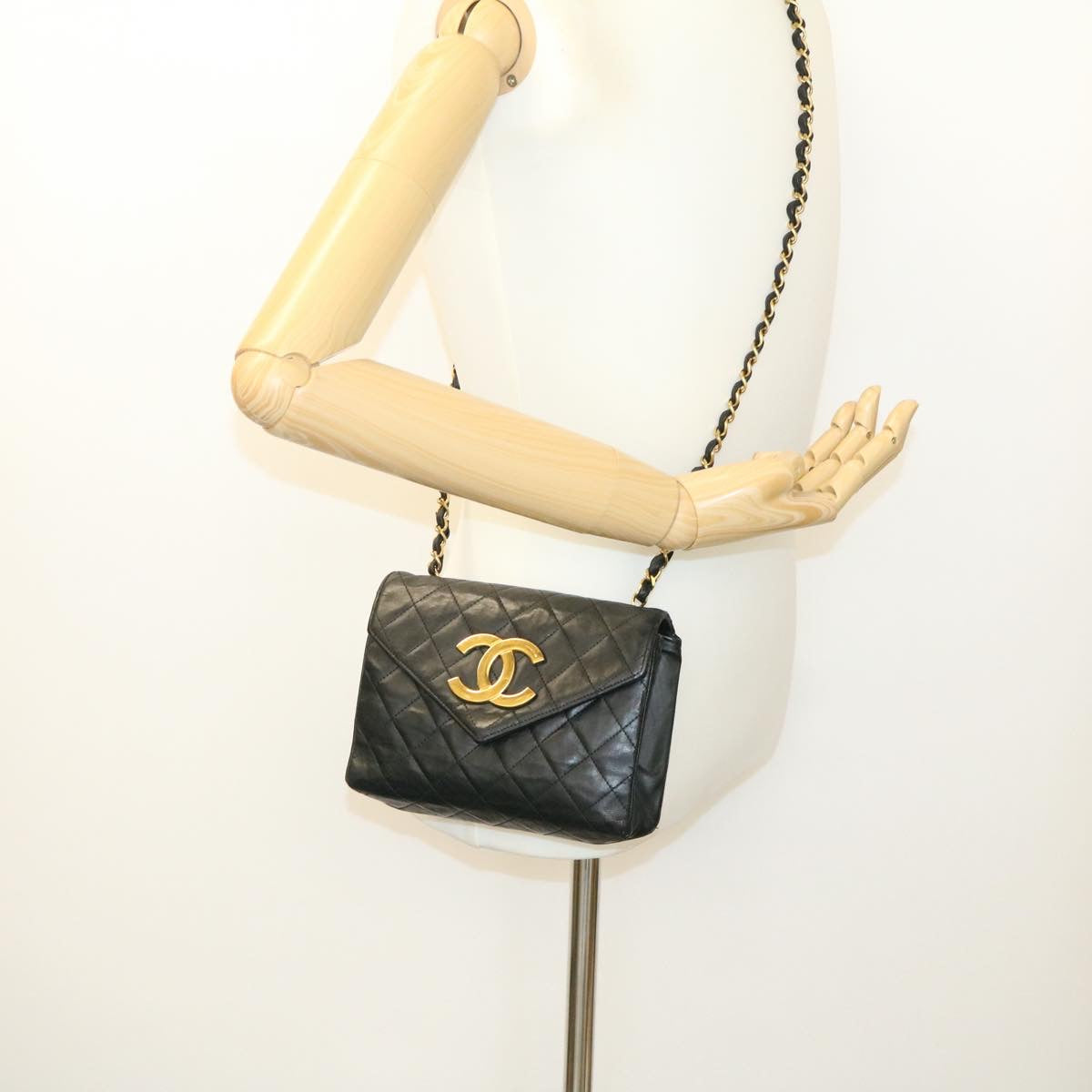 CHANEL Lamb Skin Matelasse Chain Shoulder Bag Black CC Auth 25810AV
