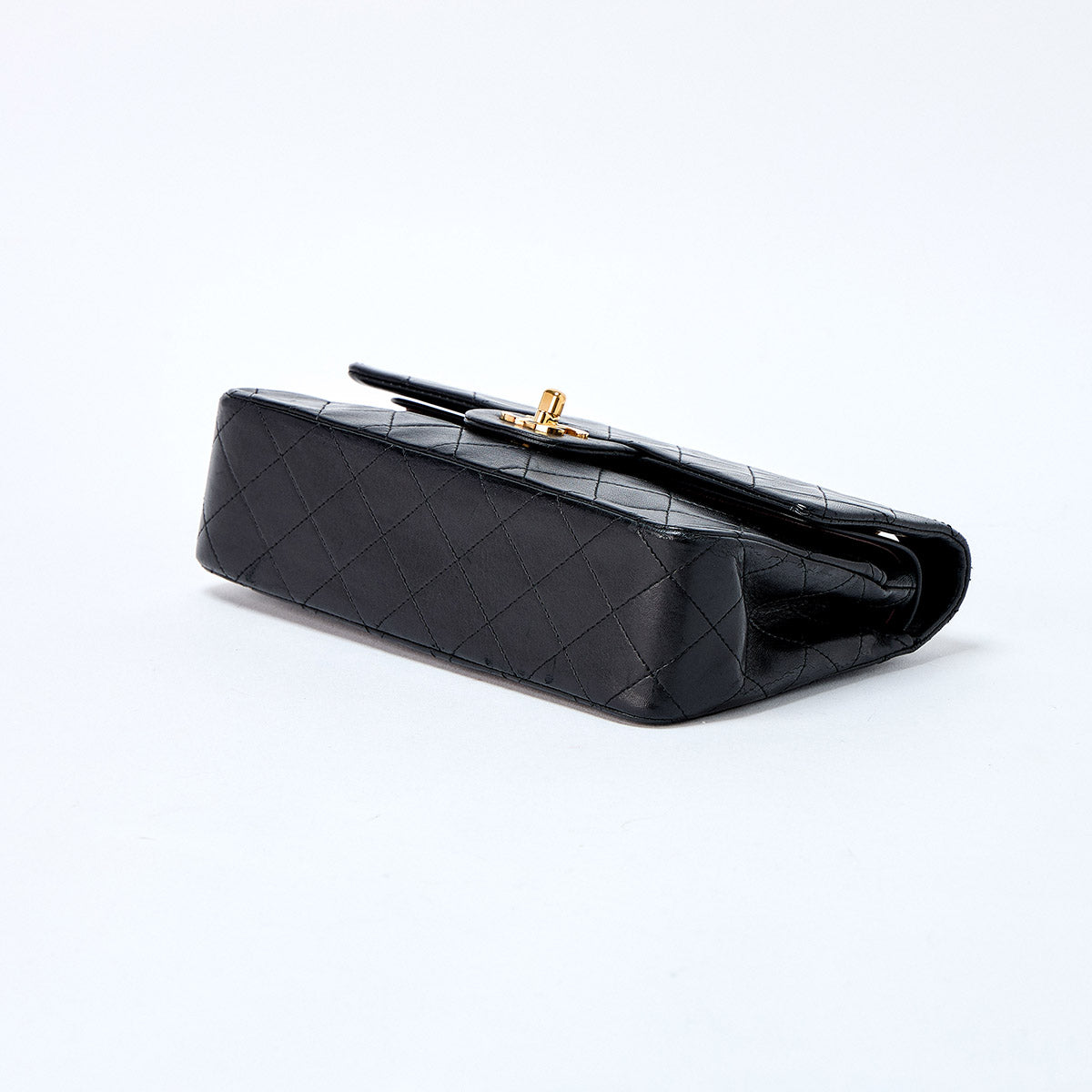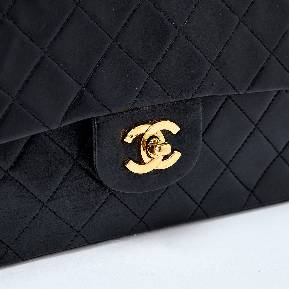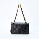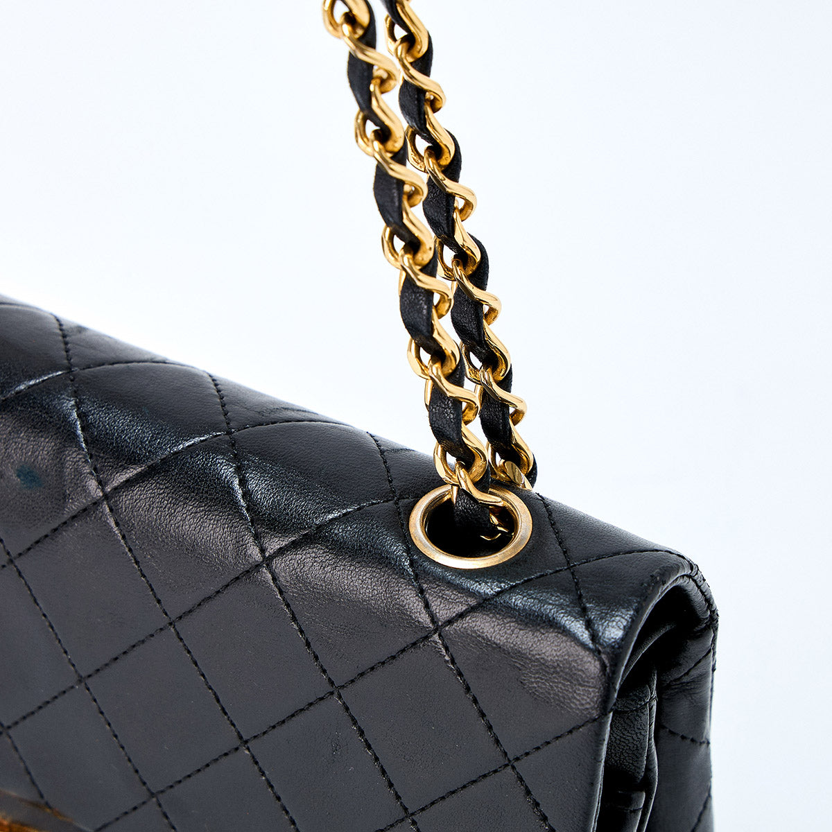 CHANEL Matelasse 23 Double Flap Double Chain Shoulder Bag circa 1990 Black Gold Lamb Skin Auth