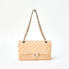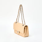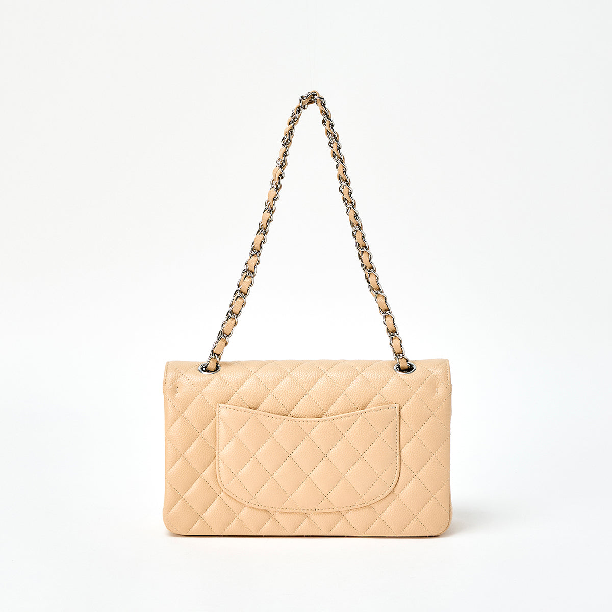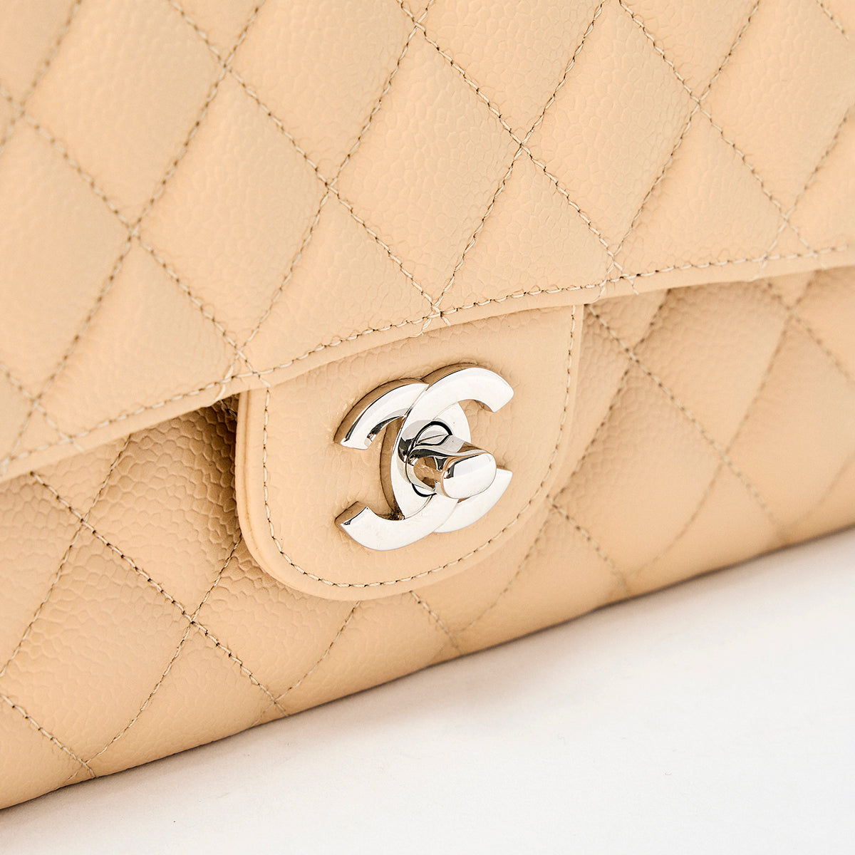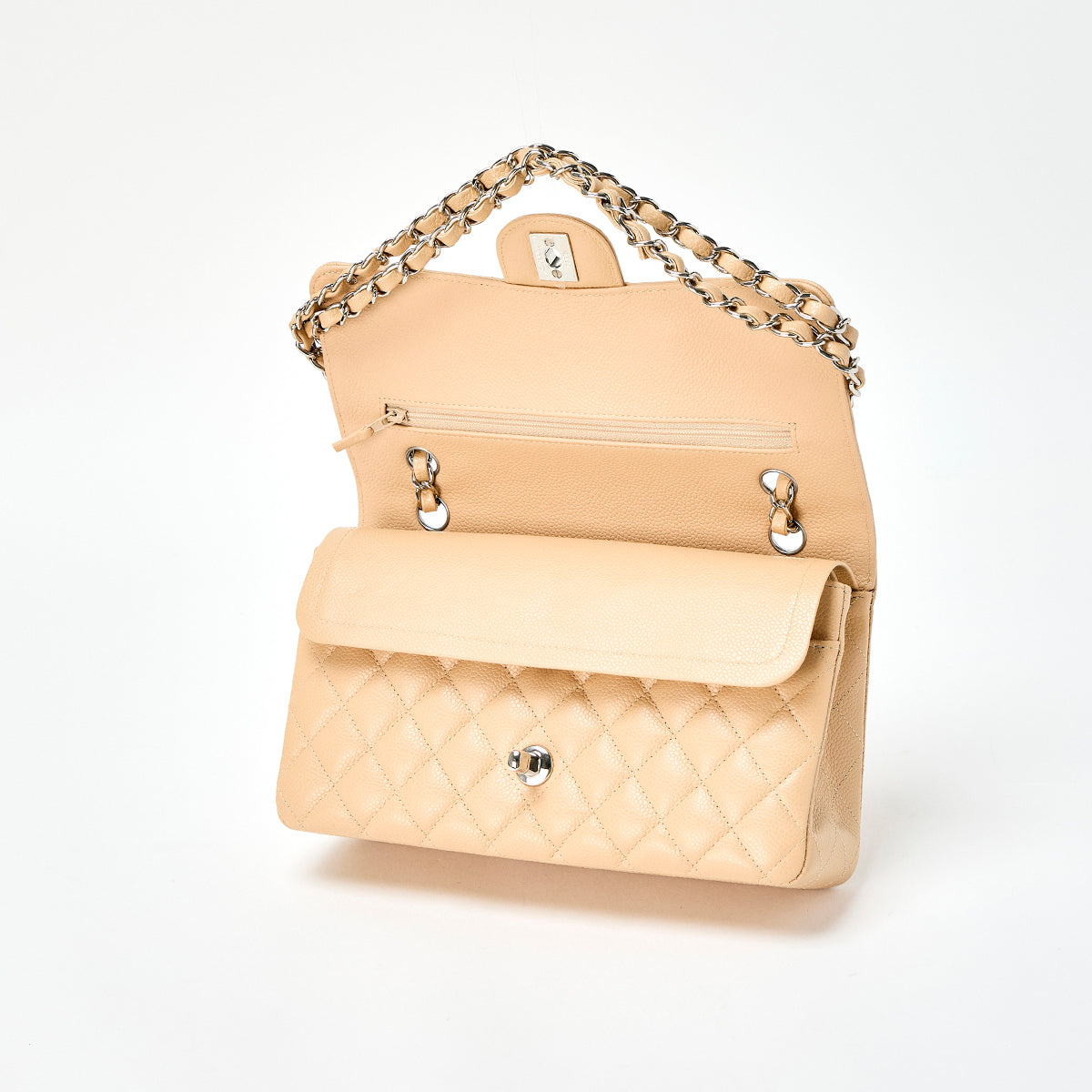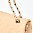 CHANEL Matelasse 25 Double Flap Double Chain Shoulder Bag Beige Silver Caviar Skin 2021 Auth