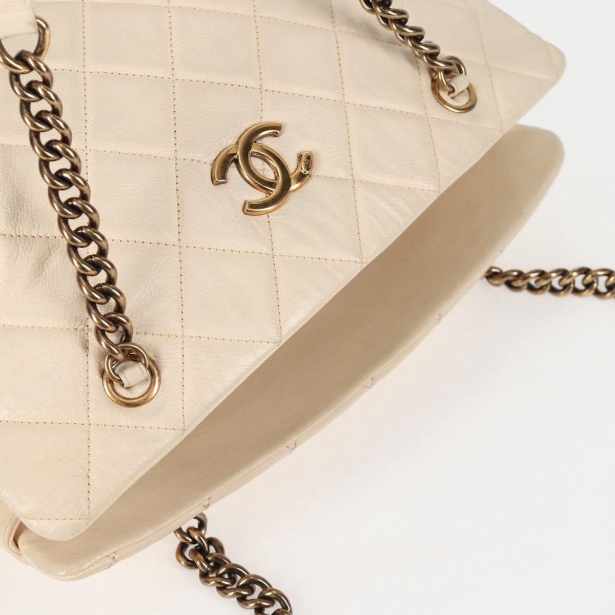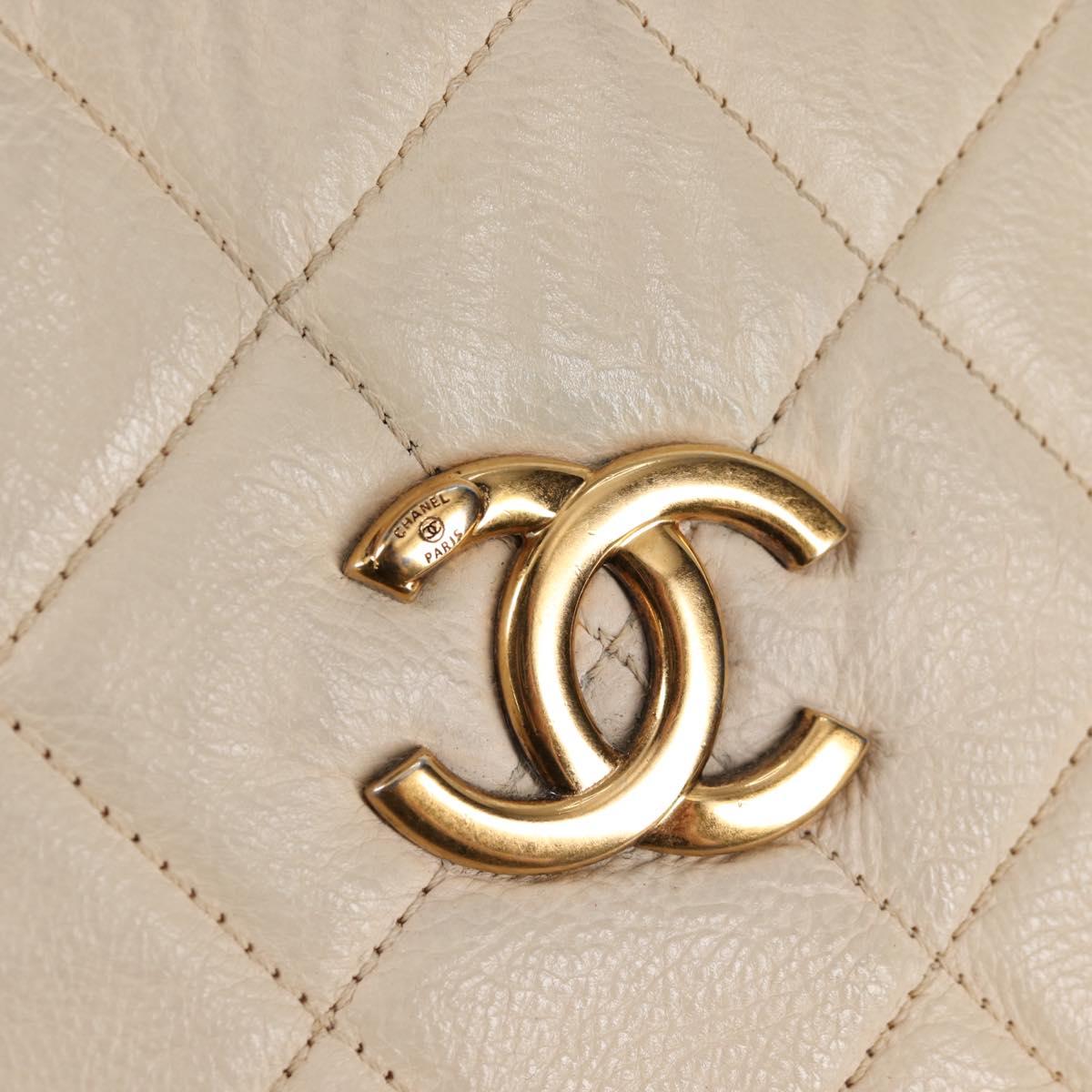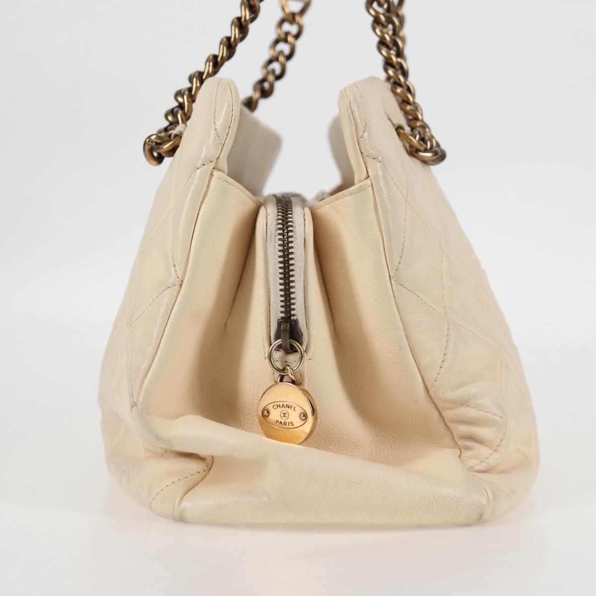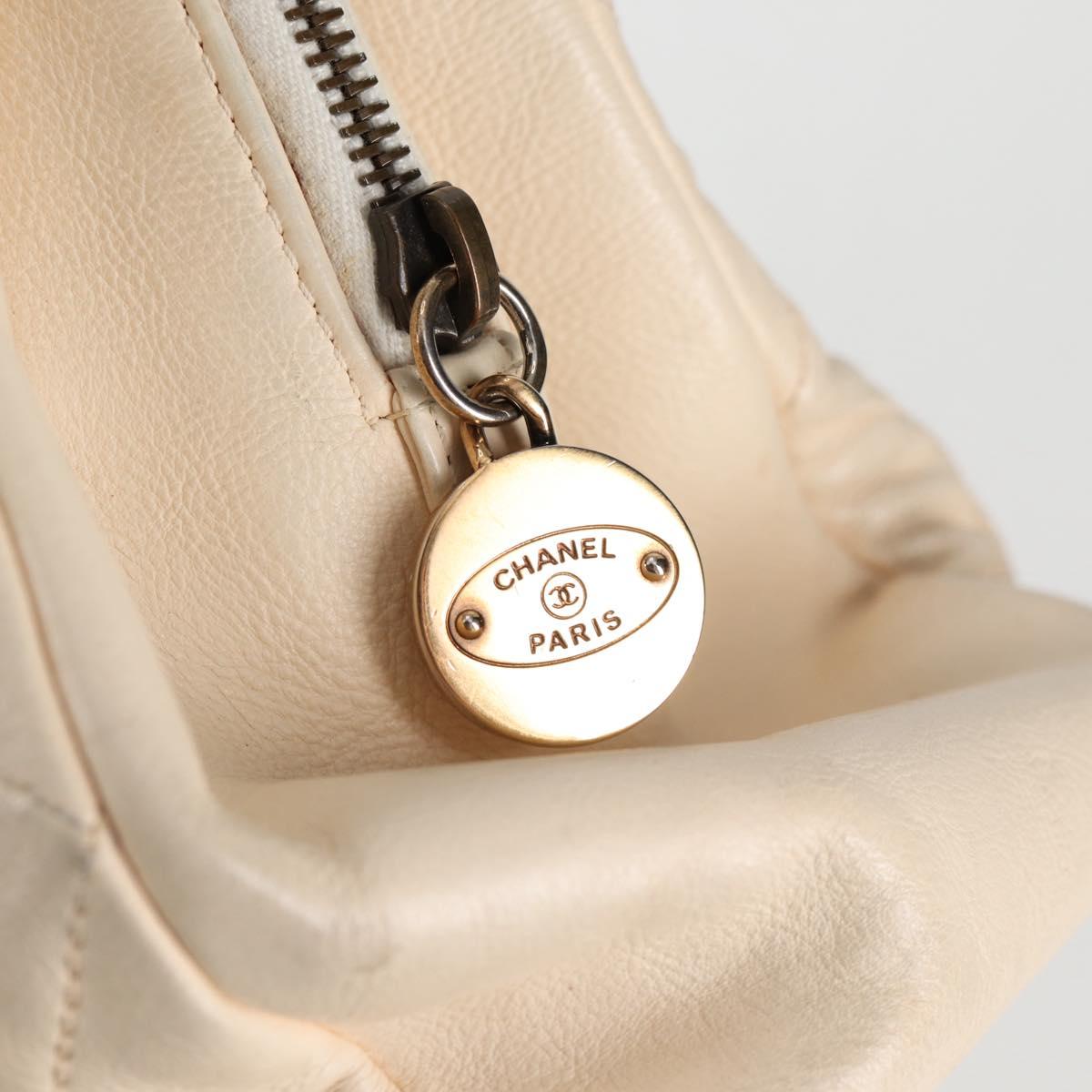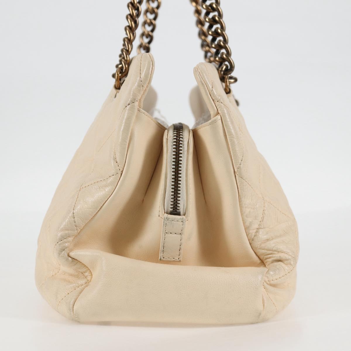 CHANEL Matelasse Chain Shoulder Bag Leather Beige Gold CC Auth BA2163V