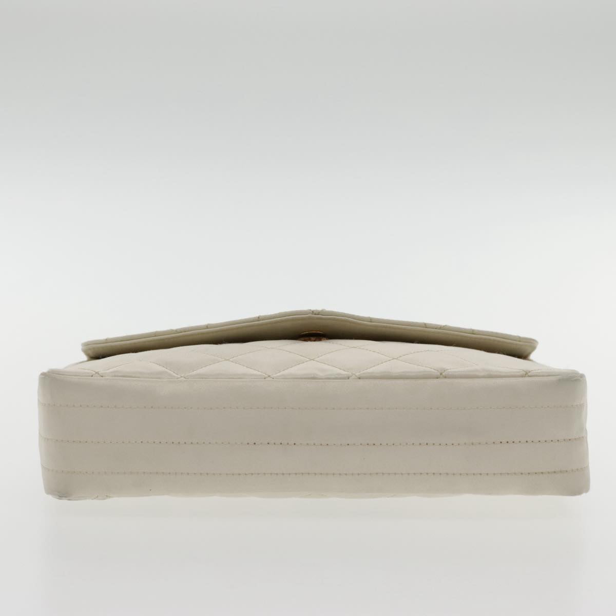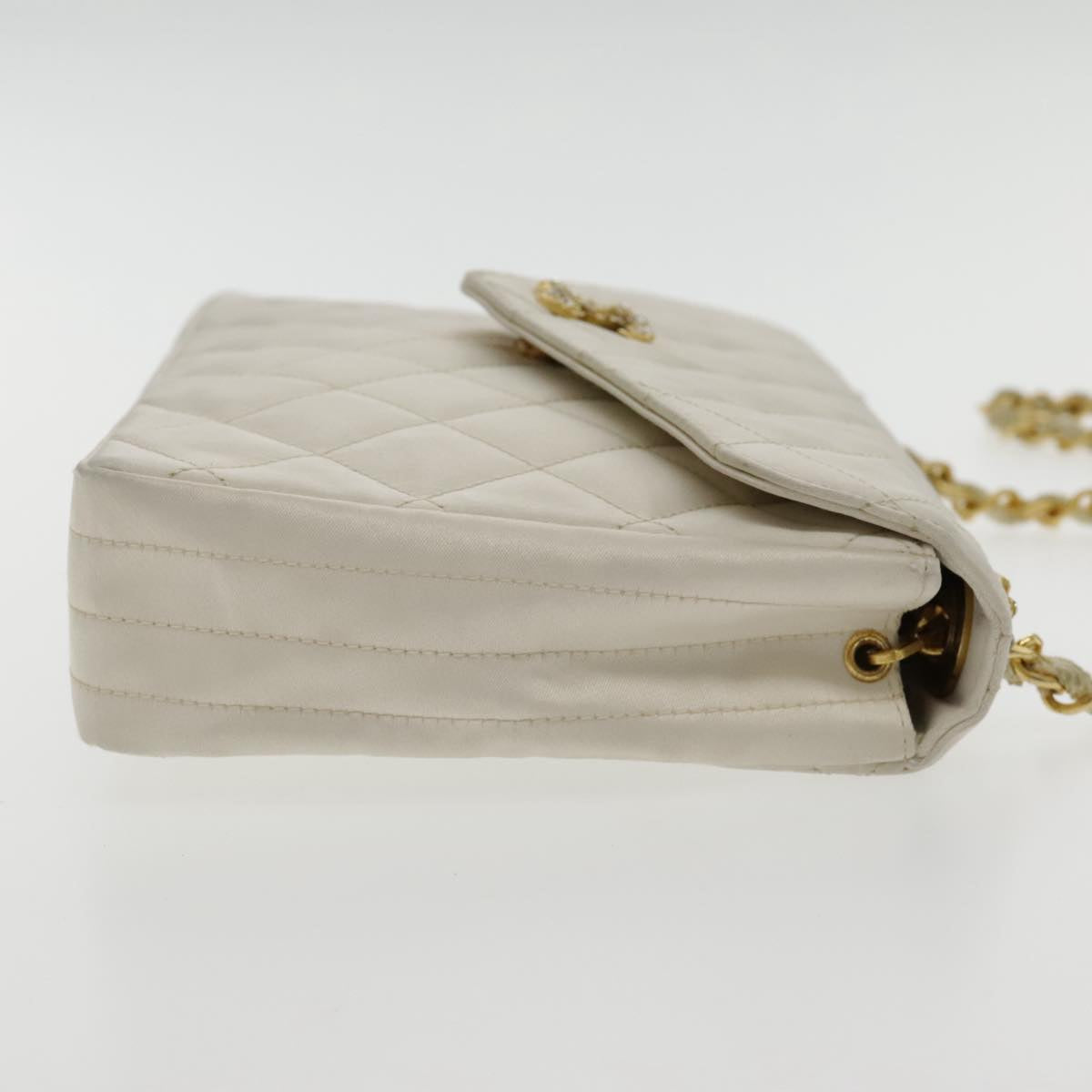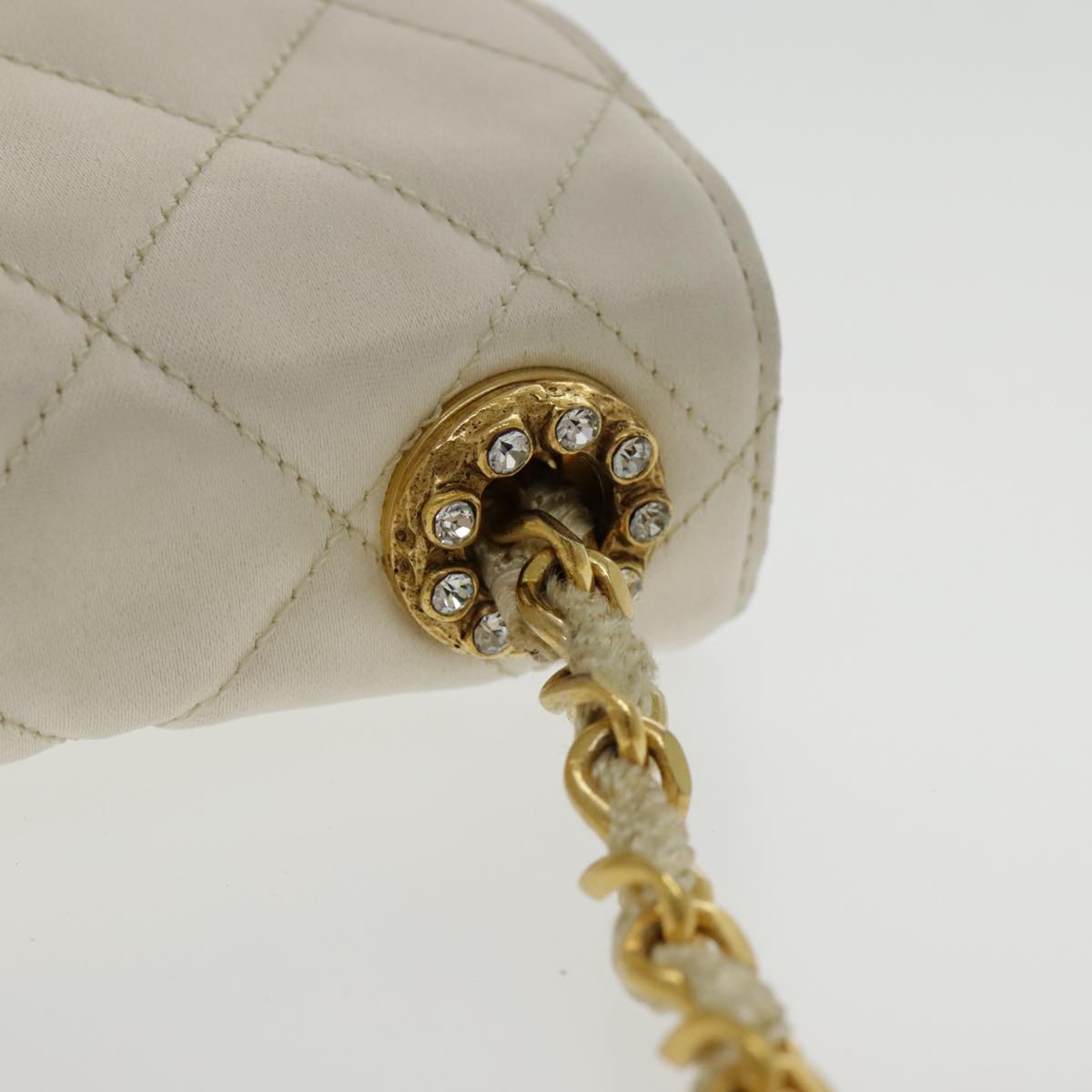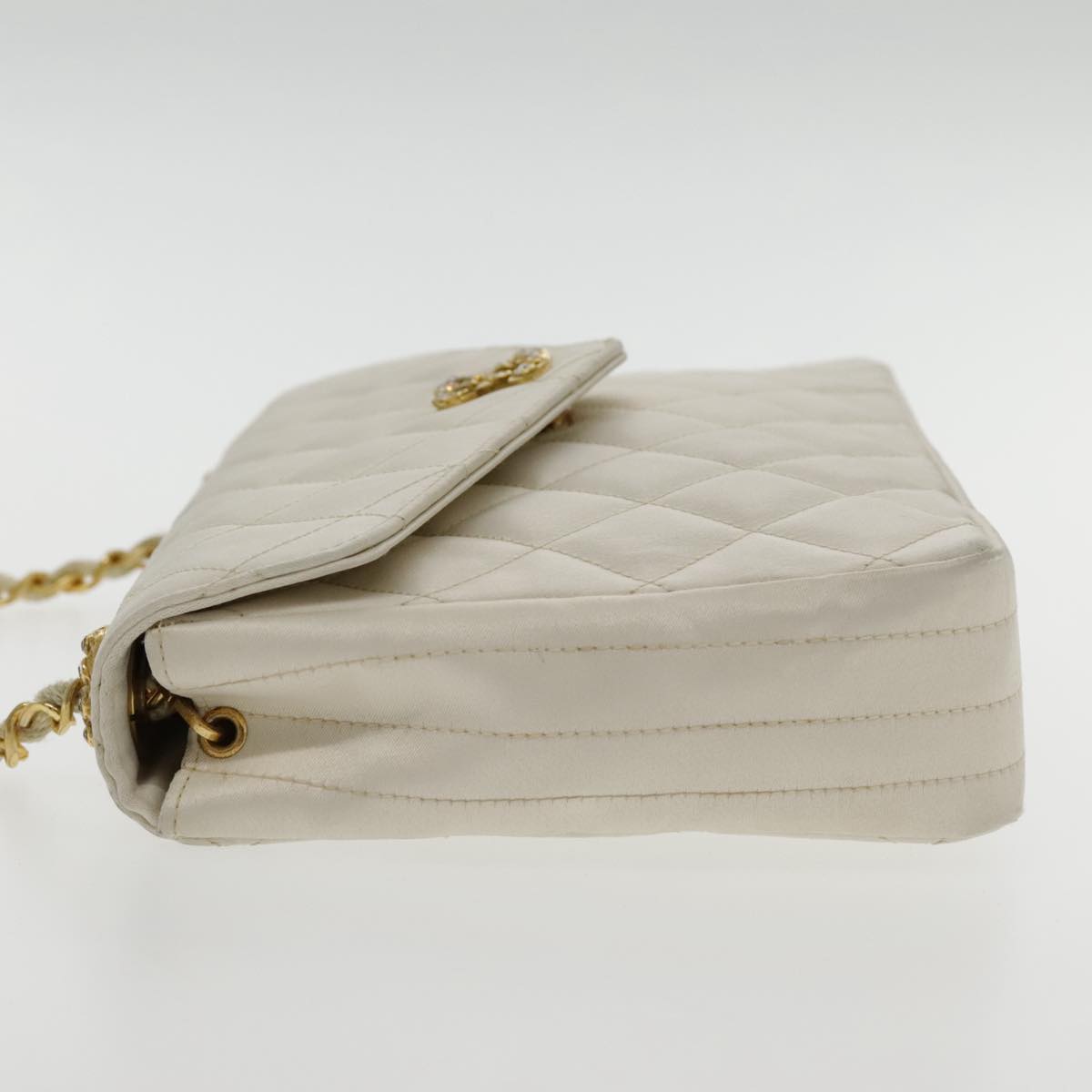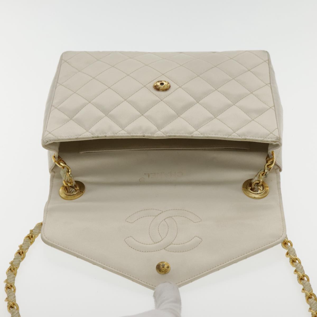 CHANEL Matelasse Chain Shoulder Bag Satin White Gold CC Auth kk366AV