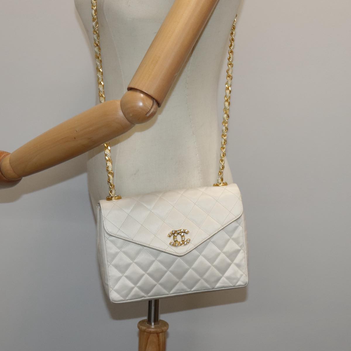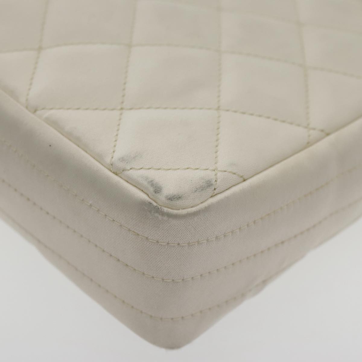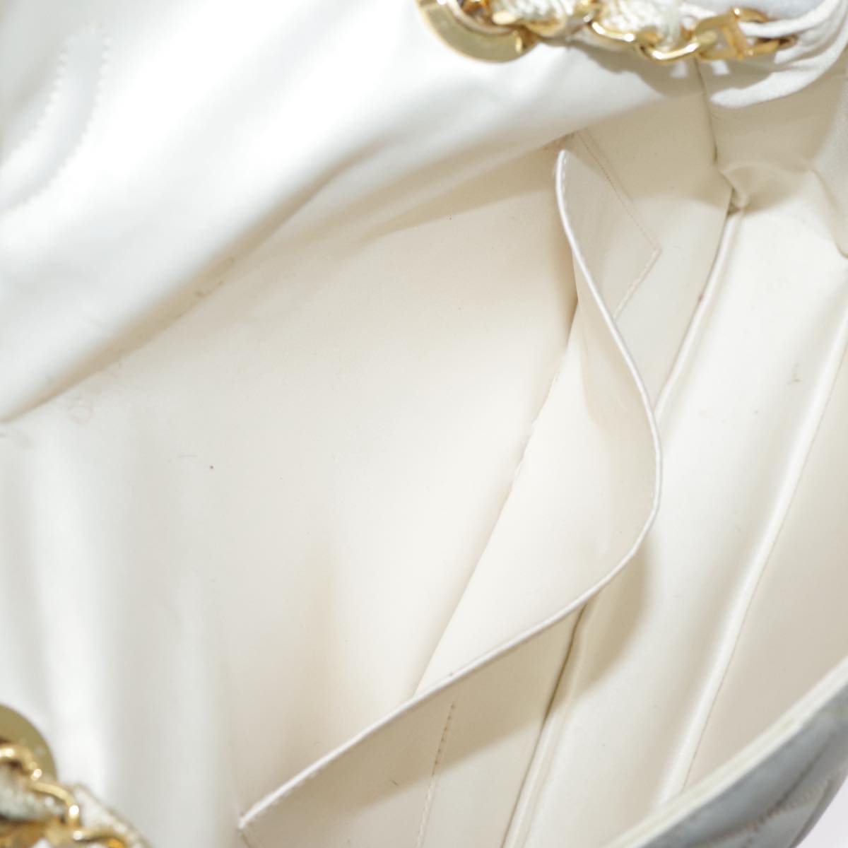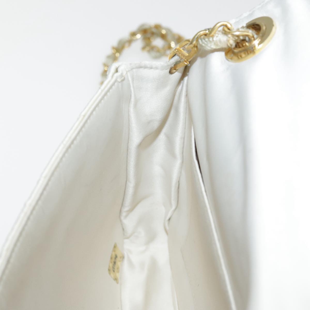 CHANEL Matelasse Chain Shoulder Bag Satin White Gold CC Auth kk366AV