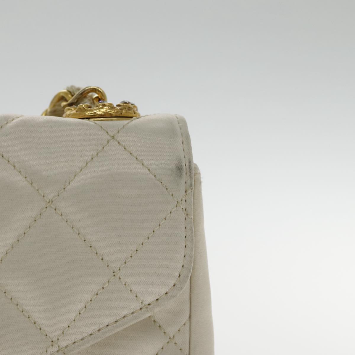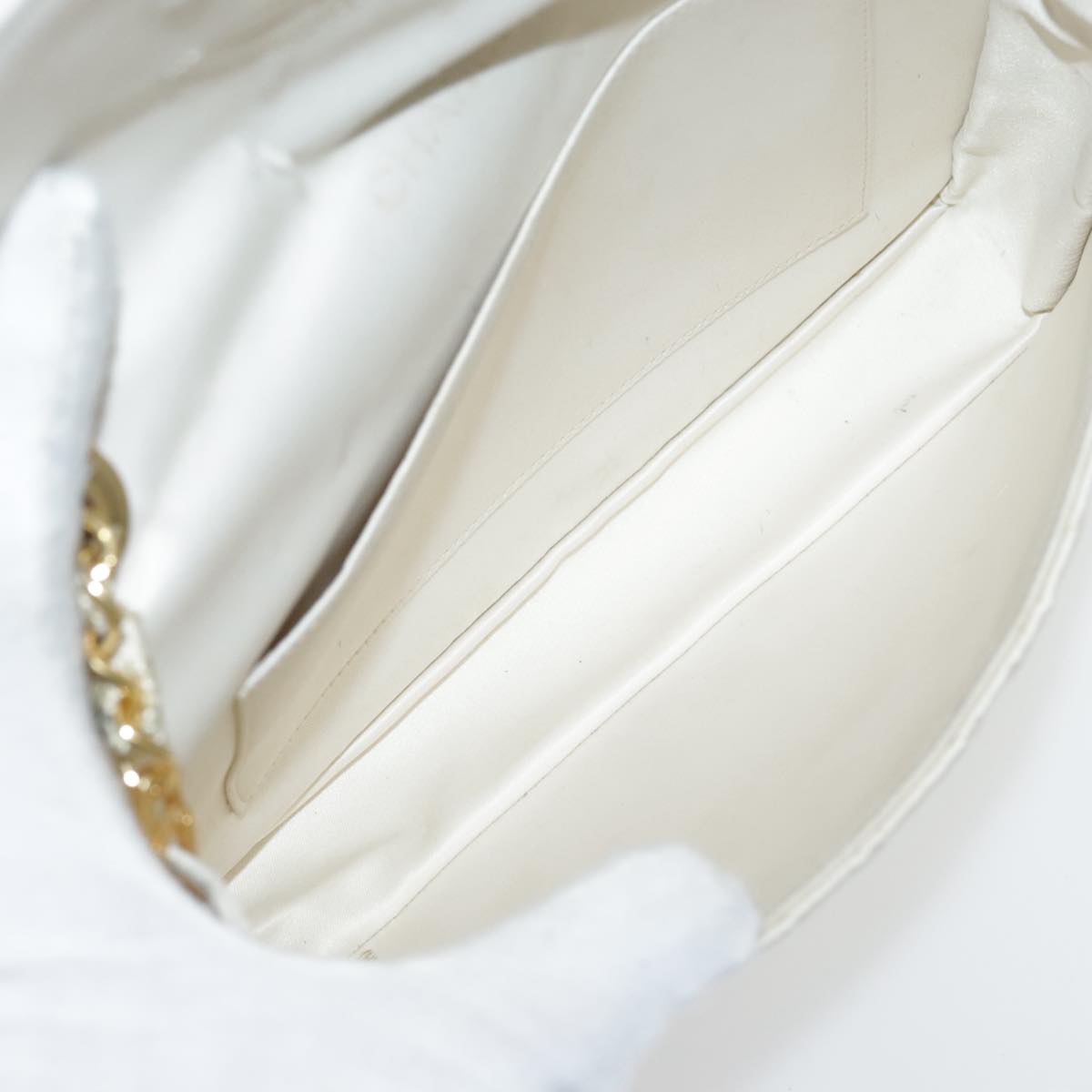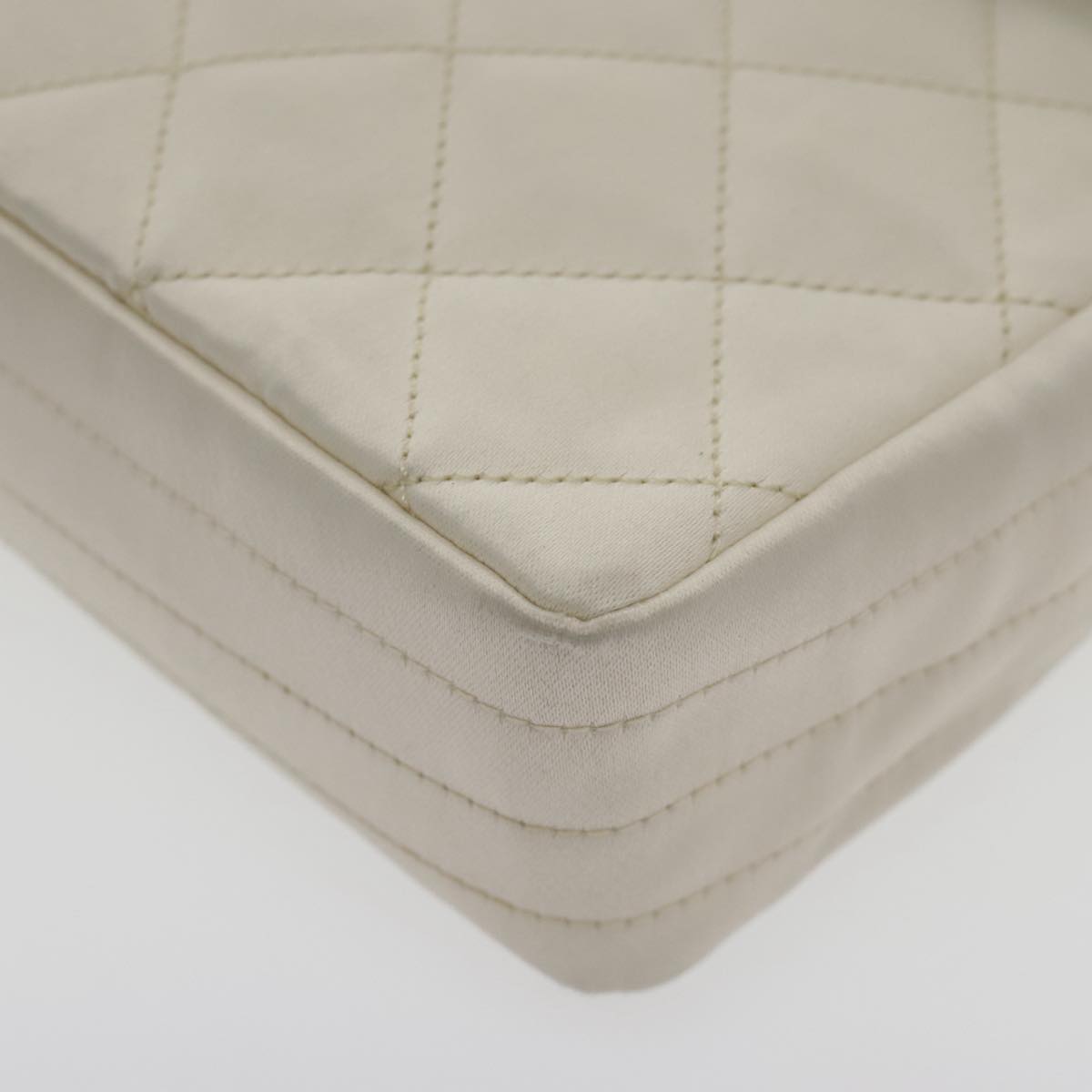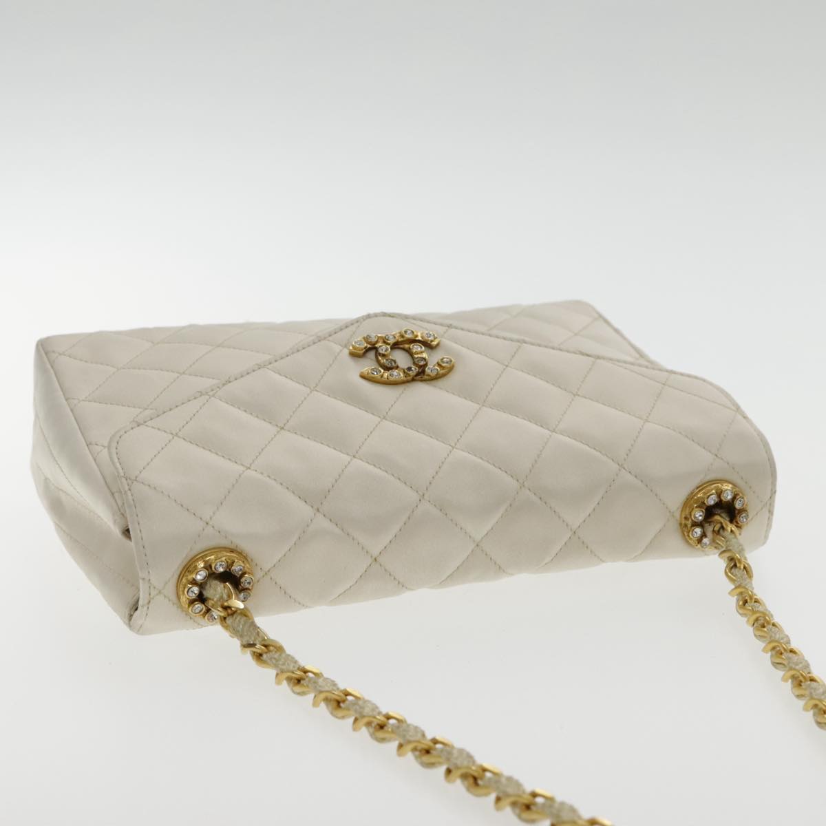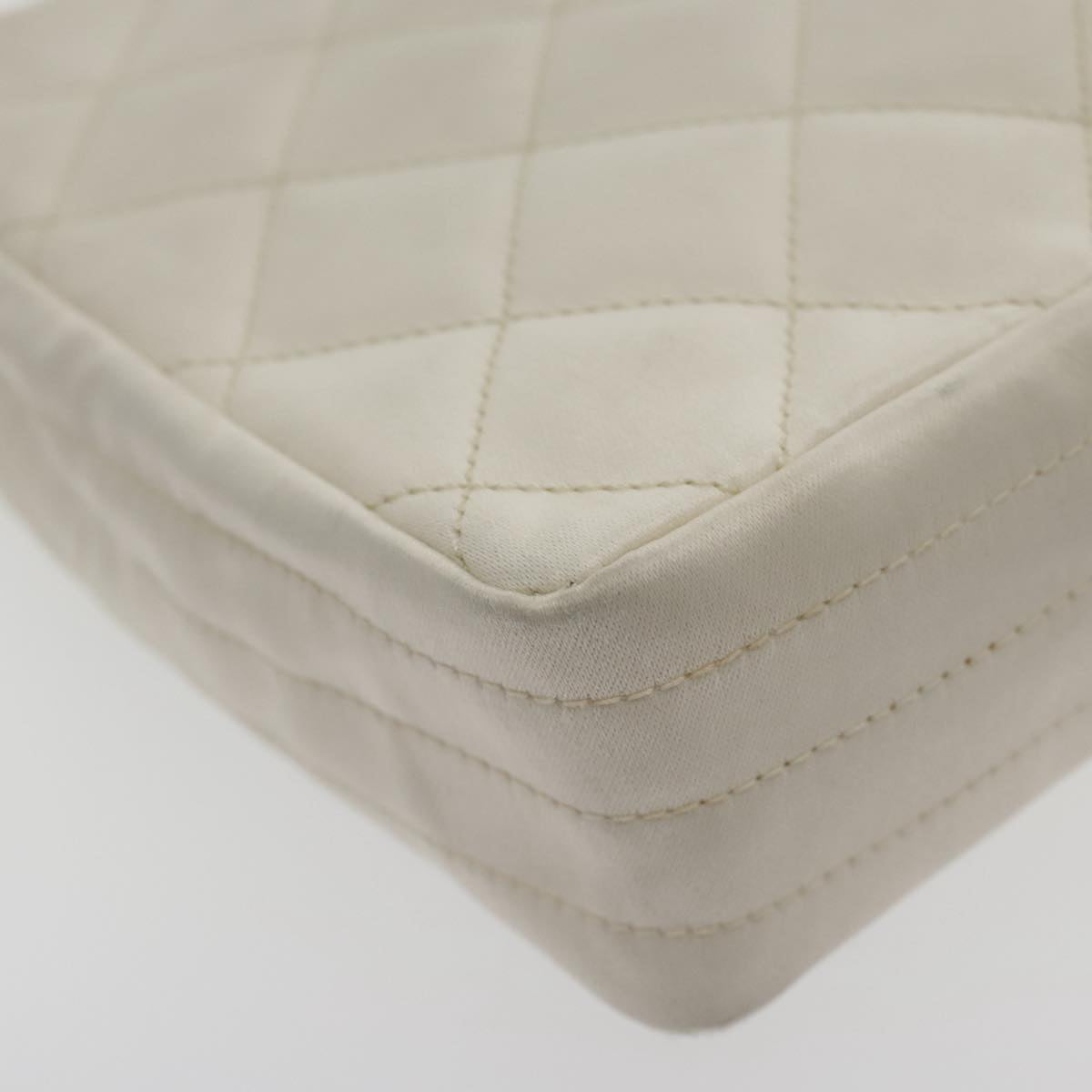 CHANEL Matelasse Chain Shoulder Bag Satin White Gold CC Auth kk366AV