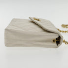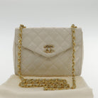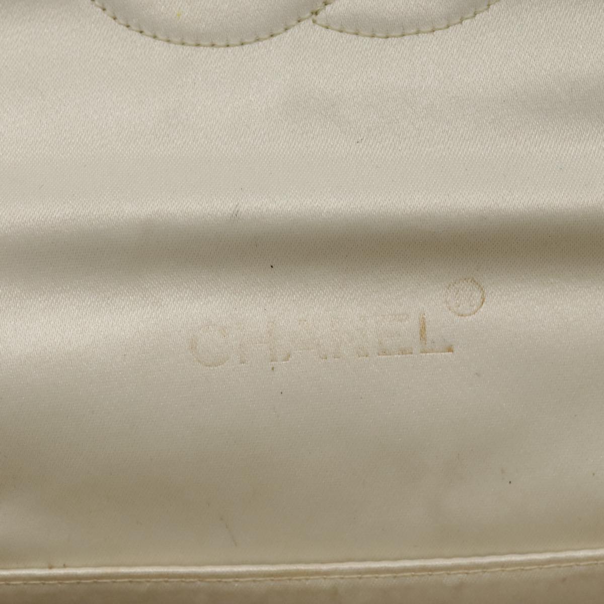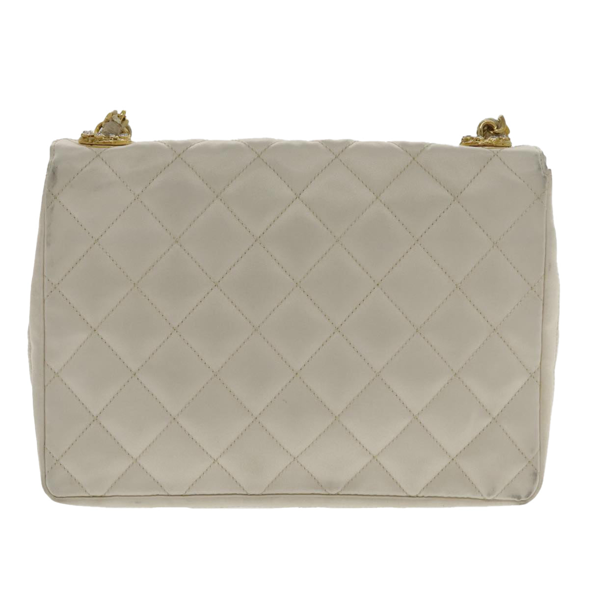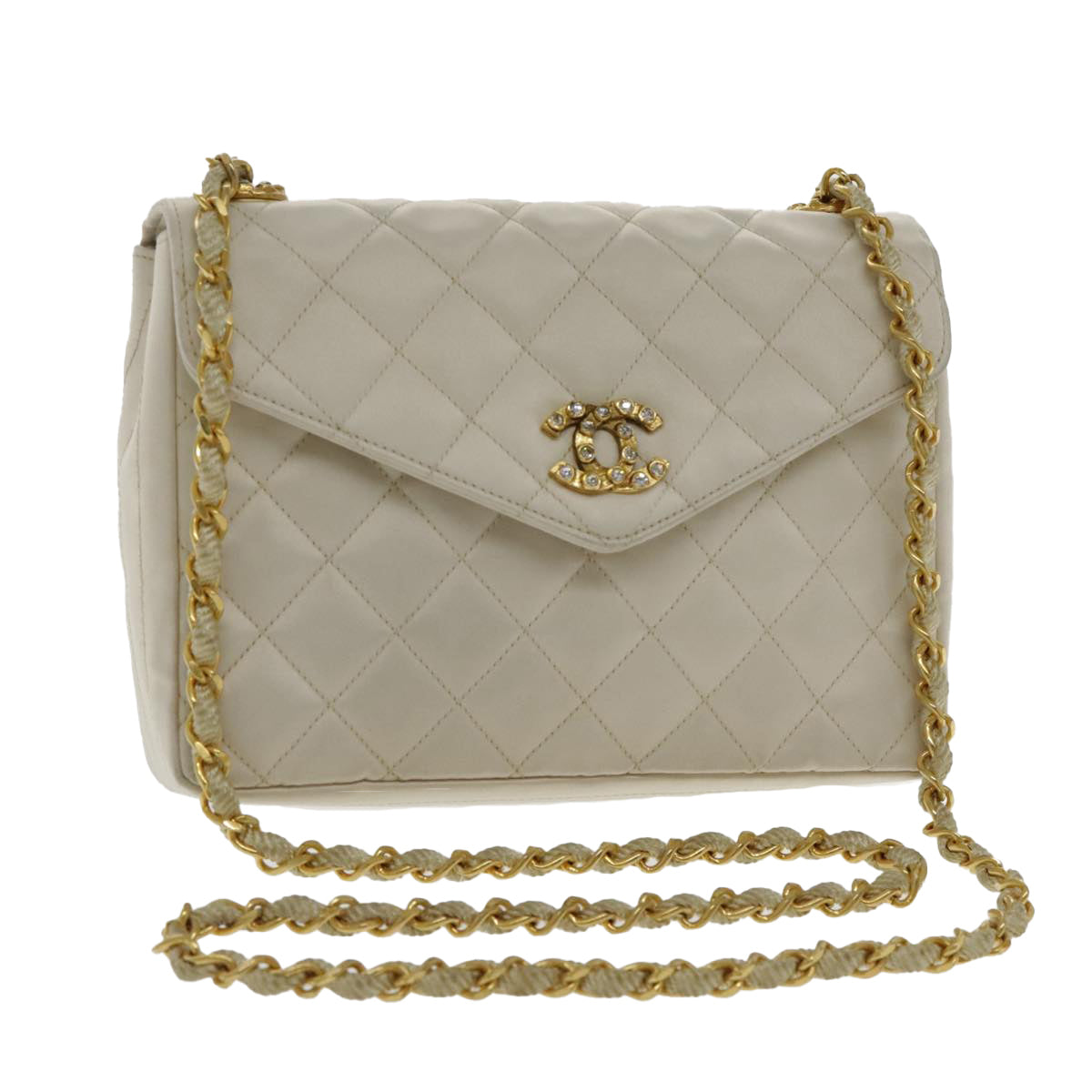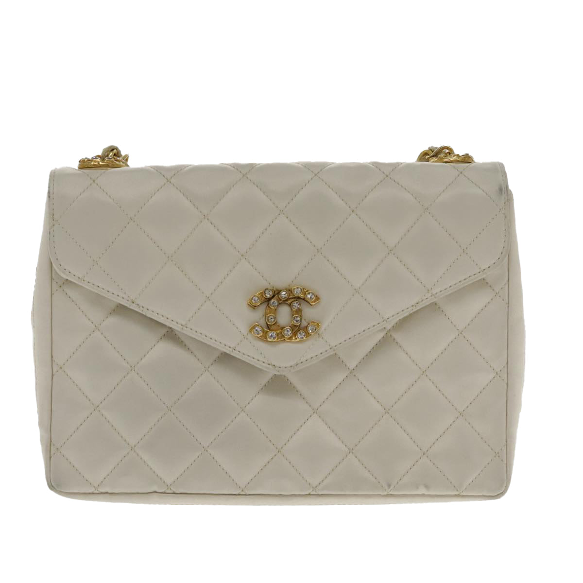 CHANEL Matelasse Chain Shoulder Bag Satin White Gold CC Auth kk366AV
