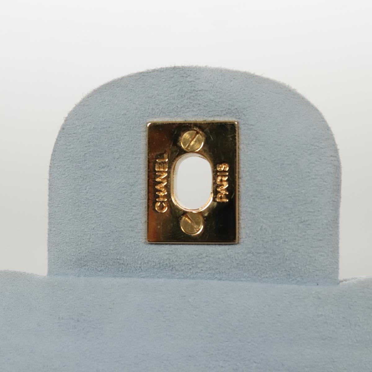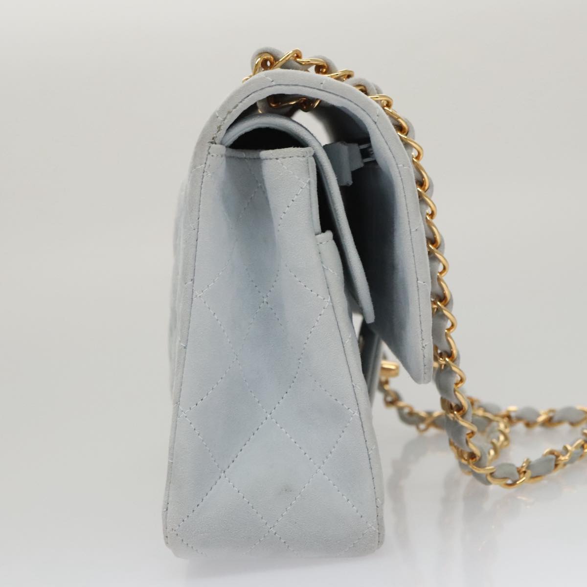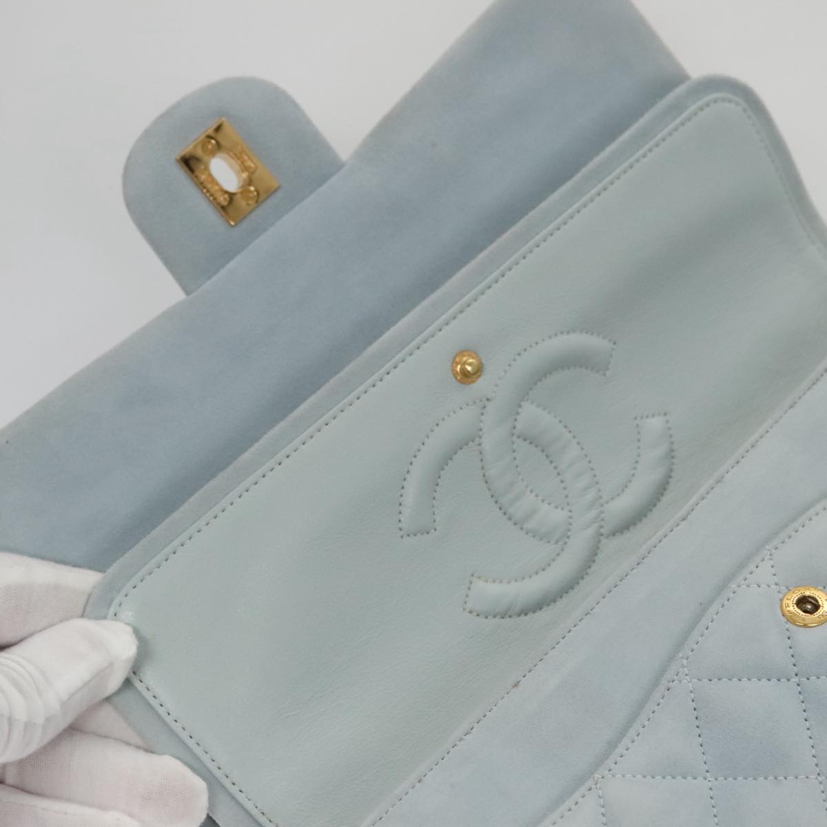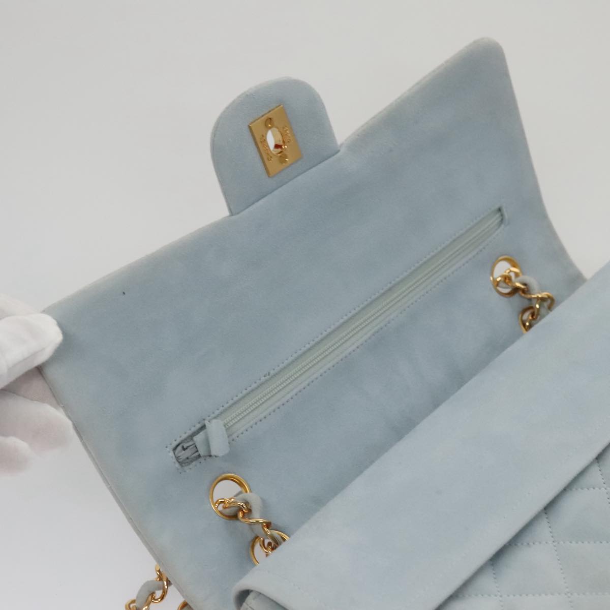 CHANEL Matelasse Chain Shoulder Bag Suede Light Blue Gold CC Auth 106433AV