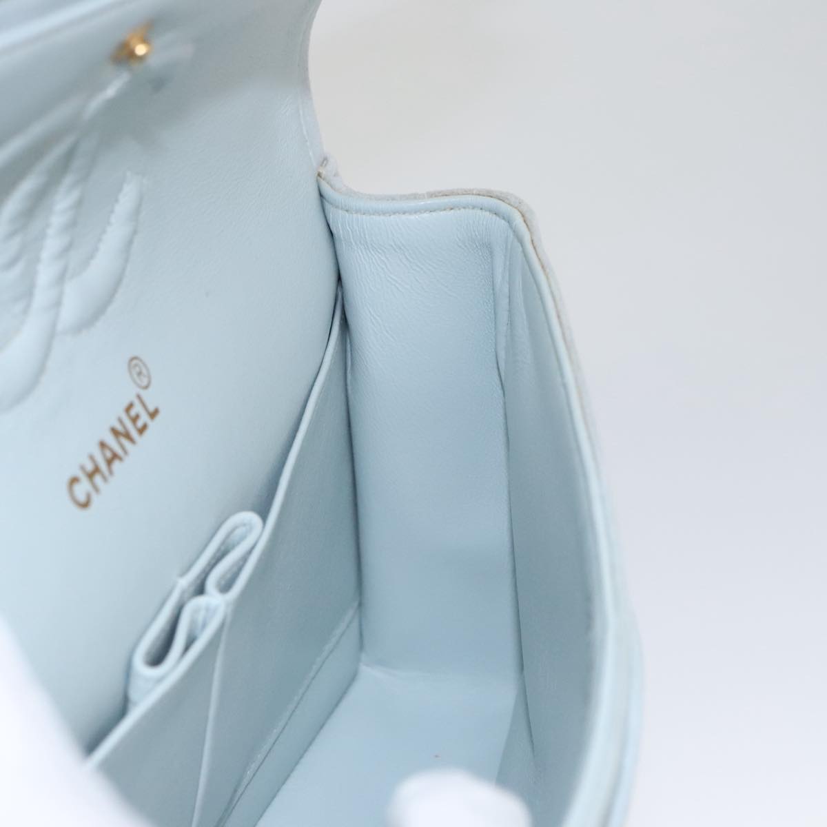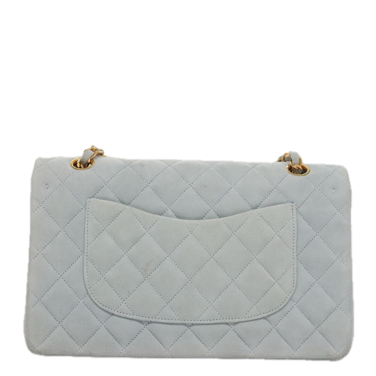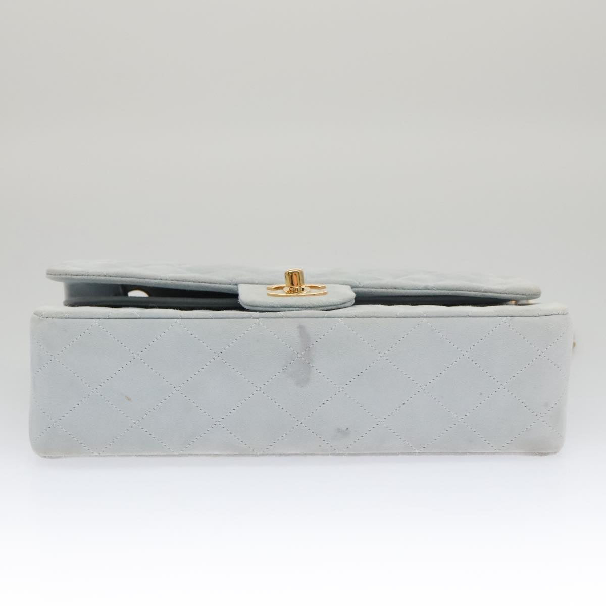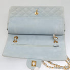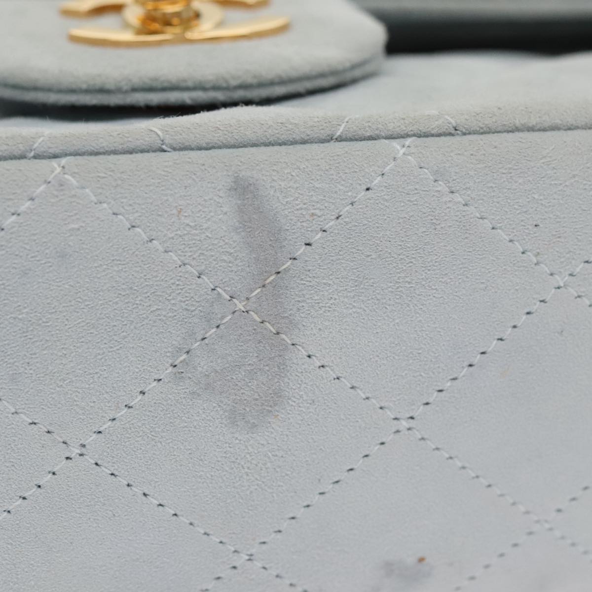 CHANEL Matelasse Chain Shoulder Bag Suede Light Blue Gold CC Auth 106433AV