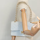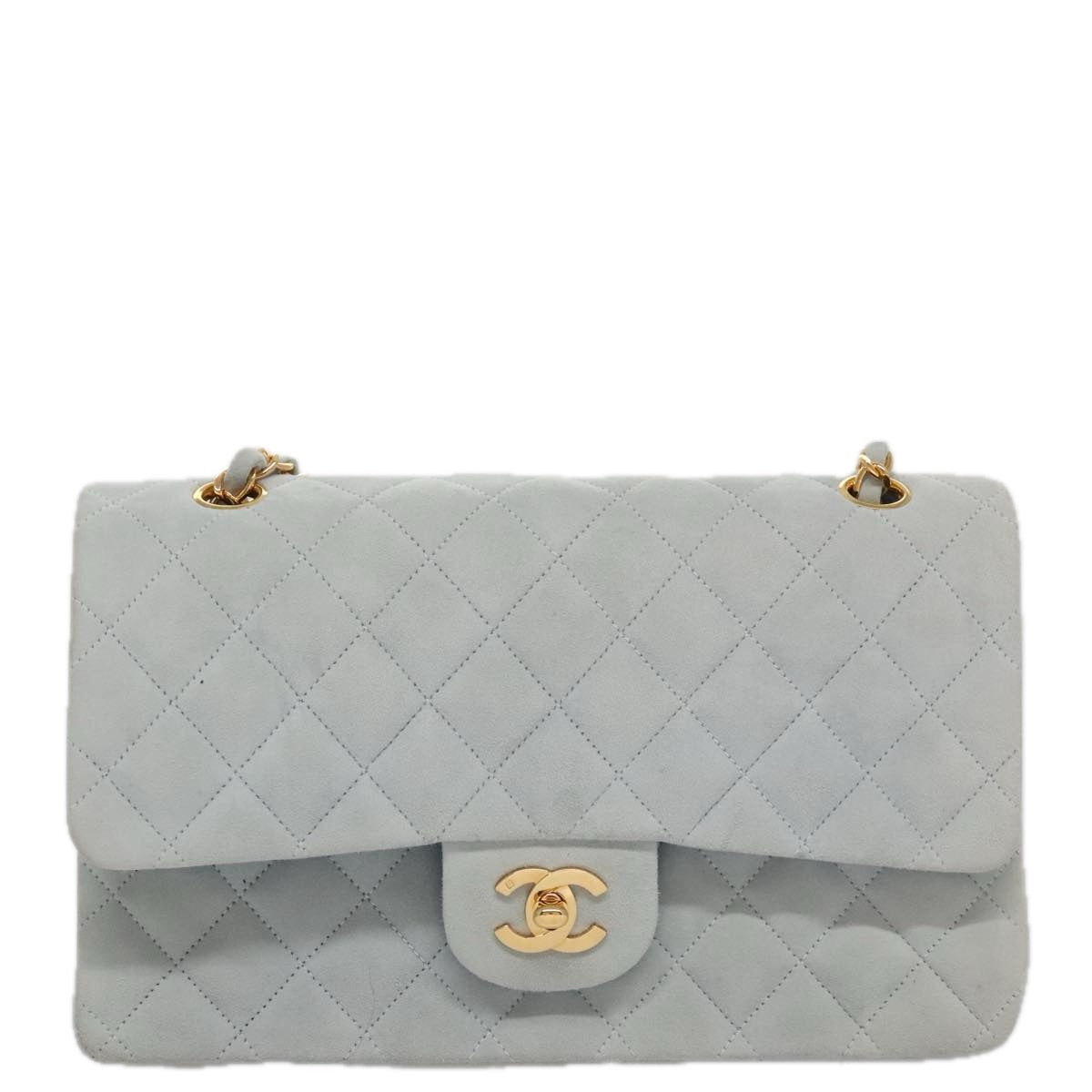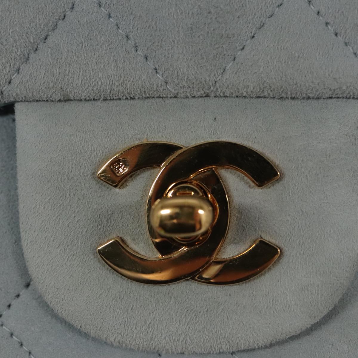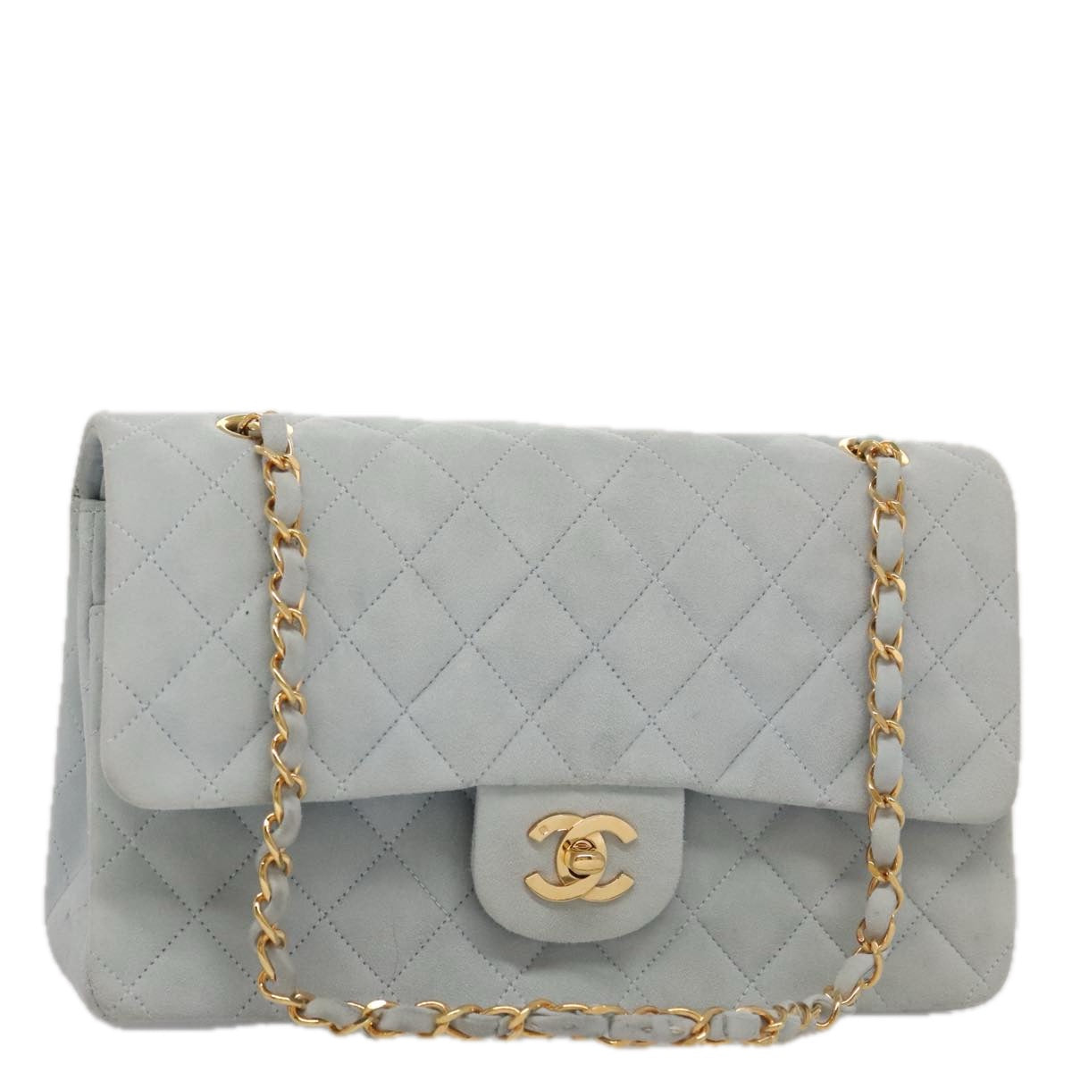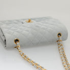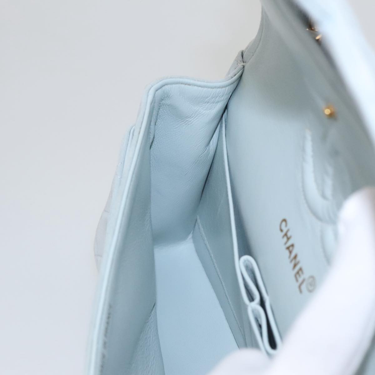 CHANEL Matelasse Chain Shoulder Bag Suede Light Blue Gold CC Auth 106433AV