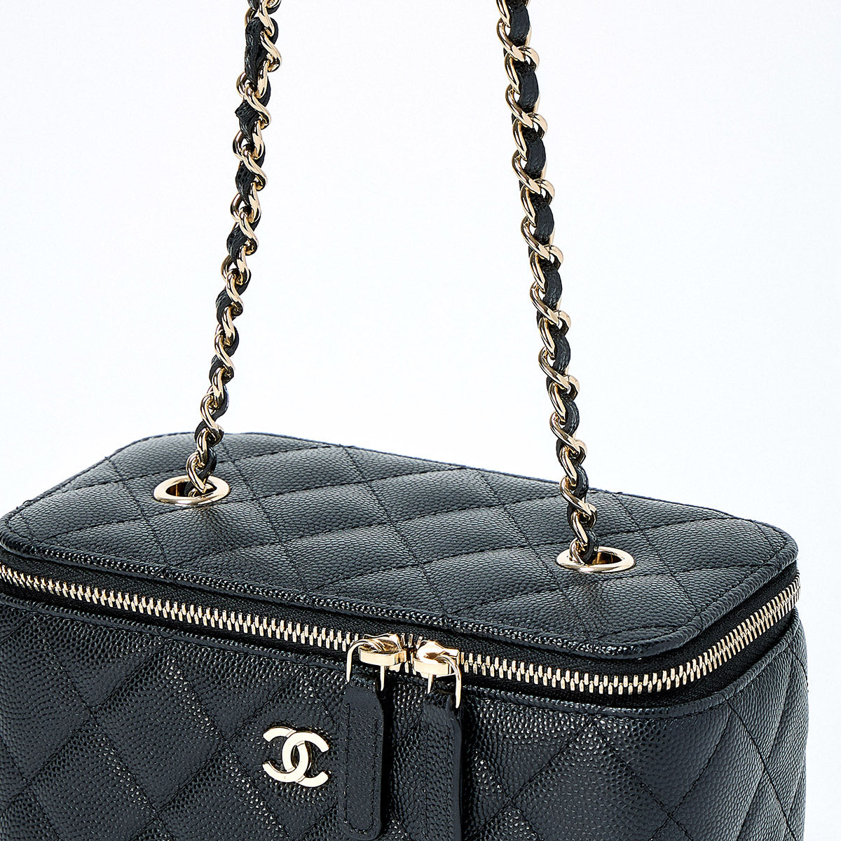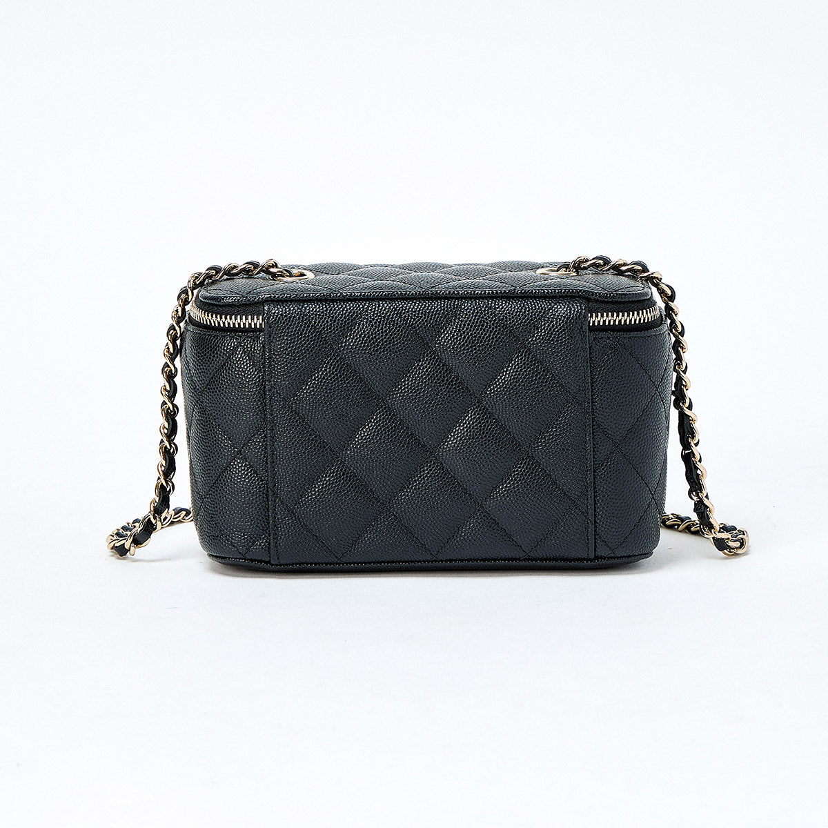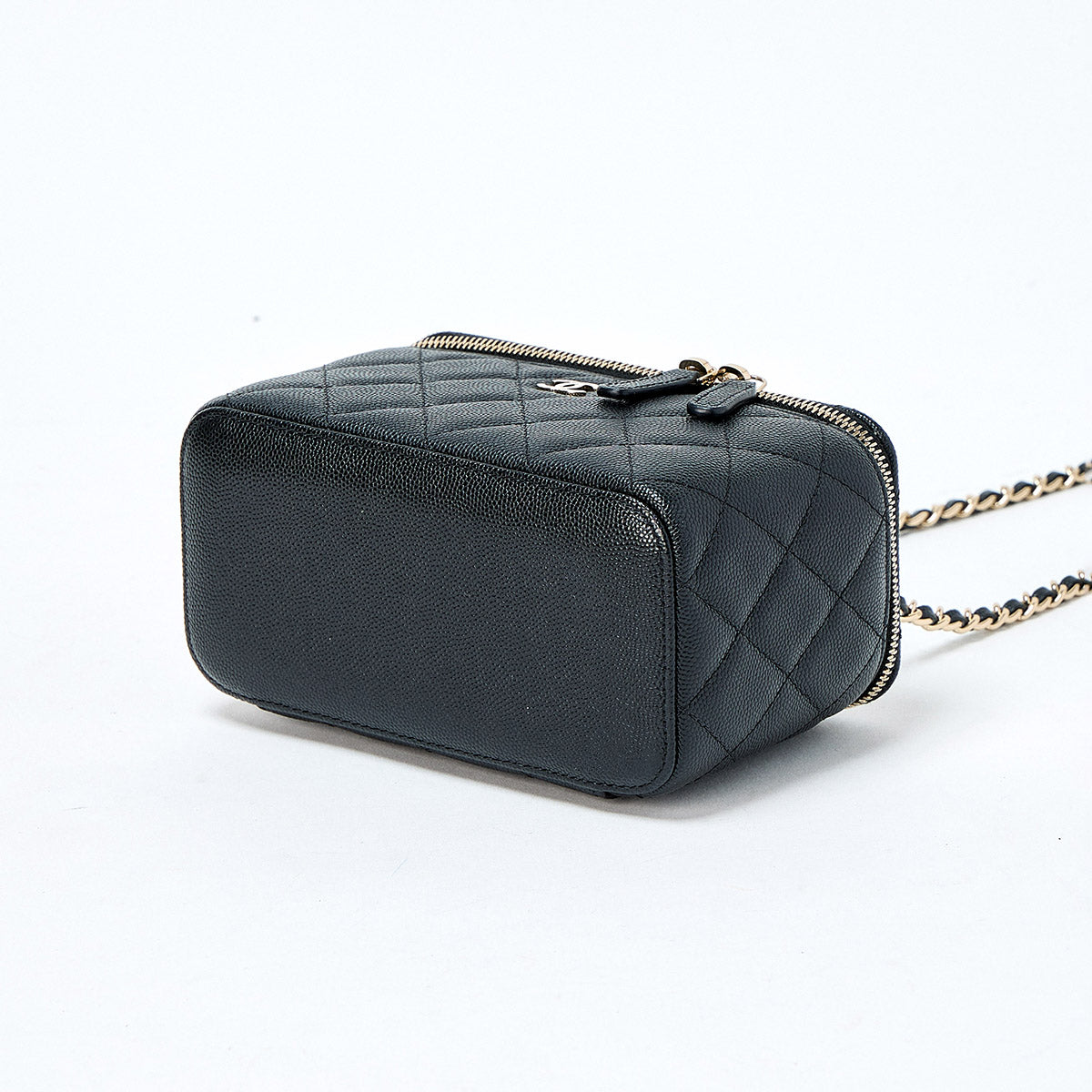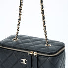 CHANEL Matelasse Chain Vanity 2021 Shoulder Bag Black Gold Caviar Skin Auth
