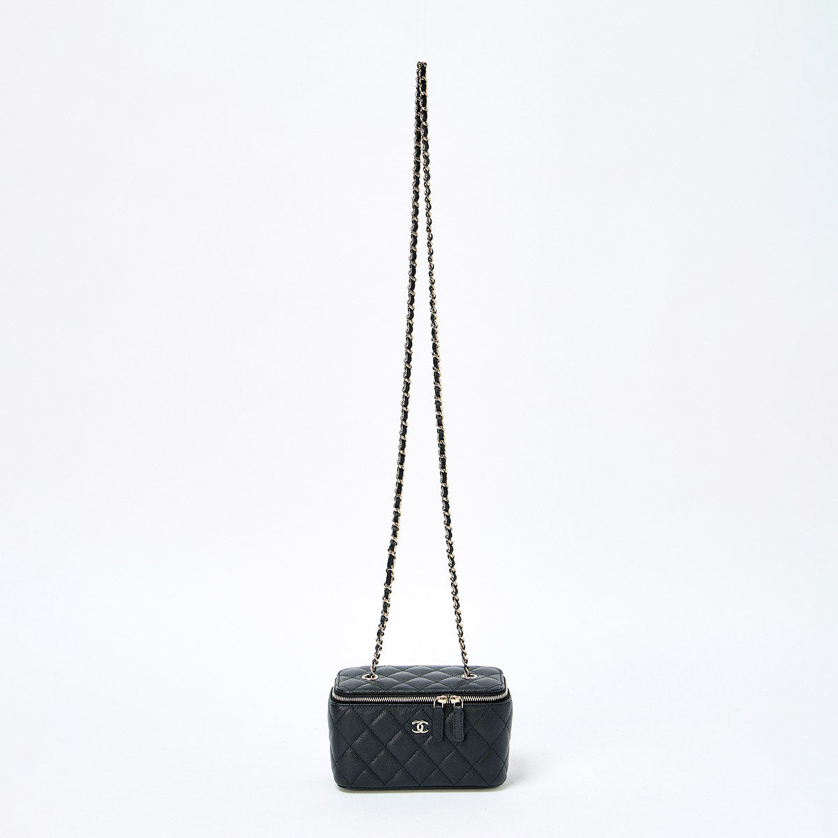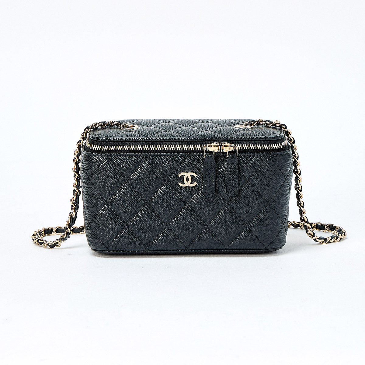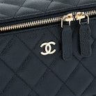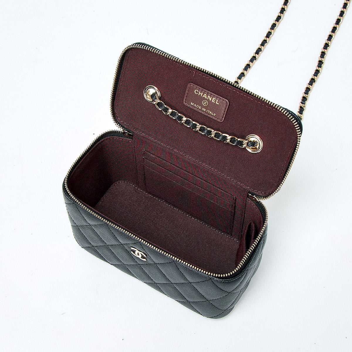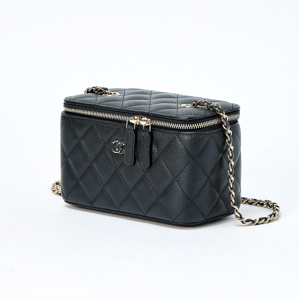 CHANEL Matelasse Chain Vanity 2021 Shoulder Bag Black Gold Caviar Skin Auth