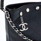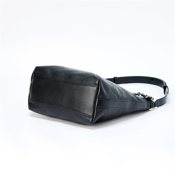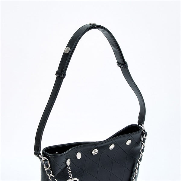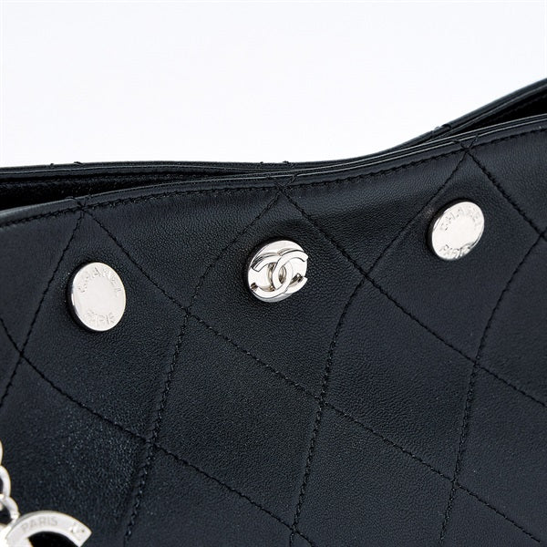 CHANEL Matelasse Large Bucket 2025 Shoulder Bag Black Silver Shiny Lamb Skin Auth
