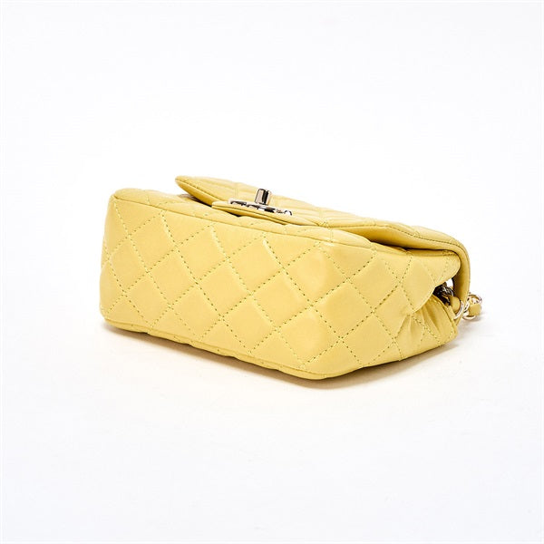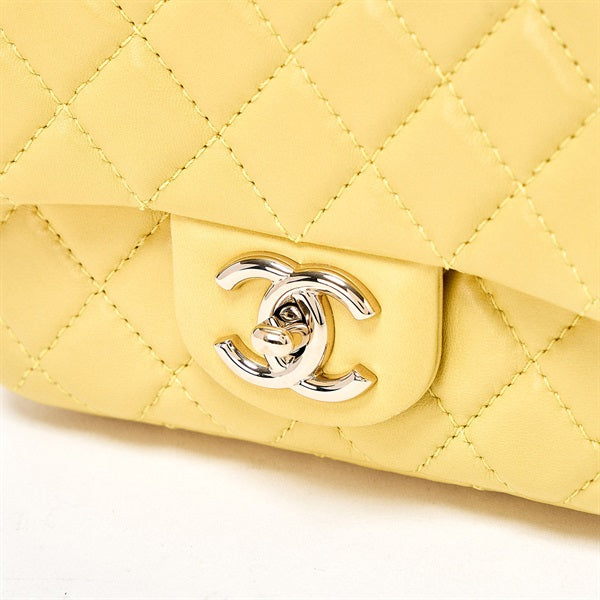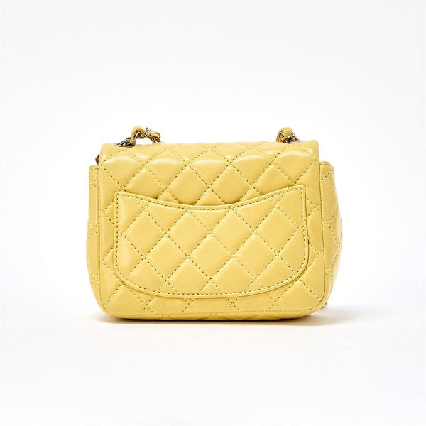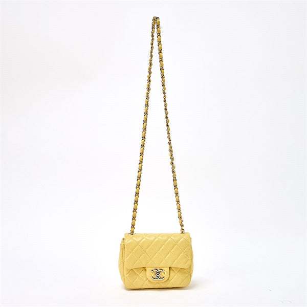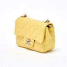 CHANEL Mini Matelasse Single Flap Single Chain Shoulder Bag Yellow Gold Lamb Skin circa 2008 Auth