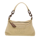 CHANEL Shoulder Bag Calf Skin Beige CC Auth am3924V