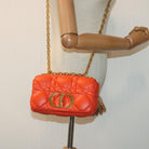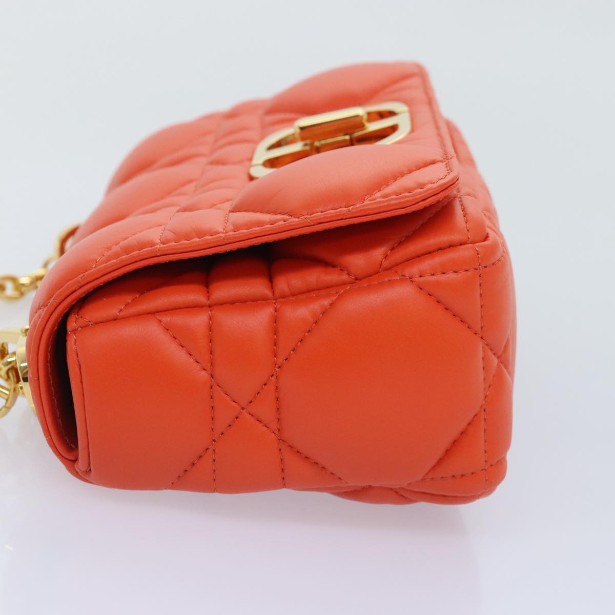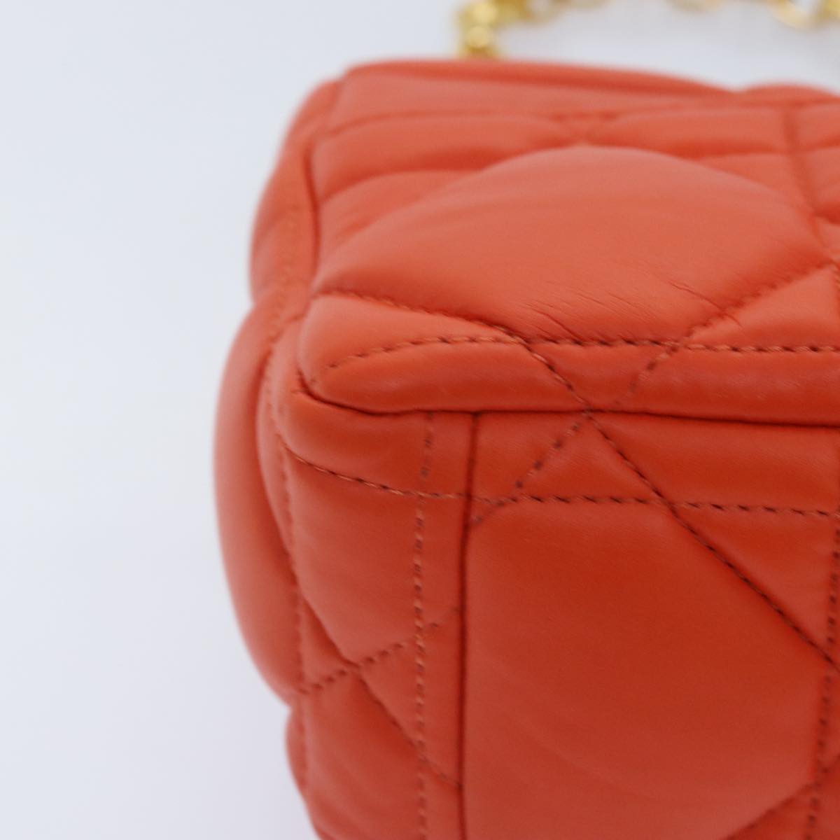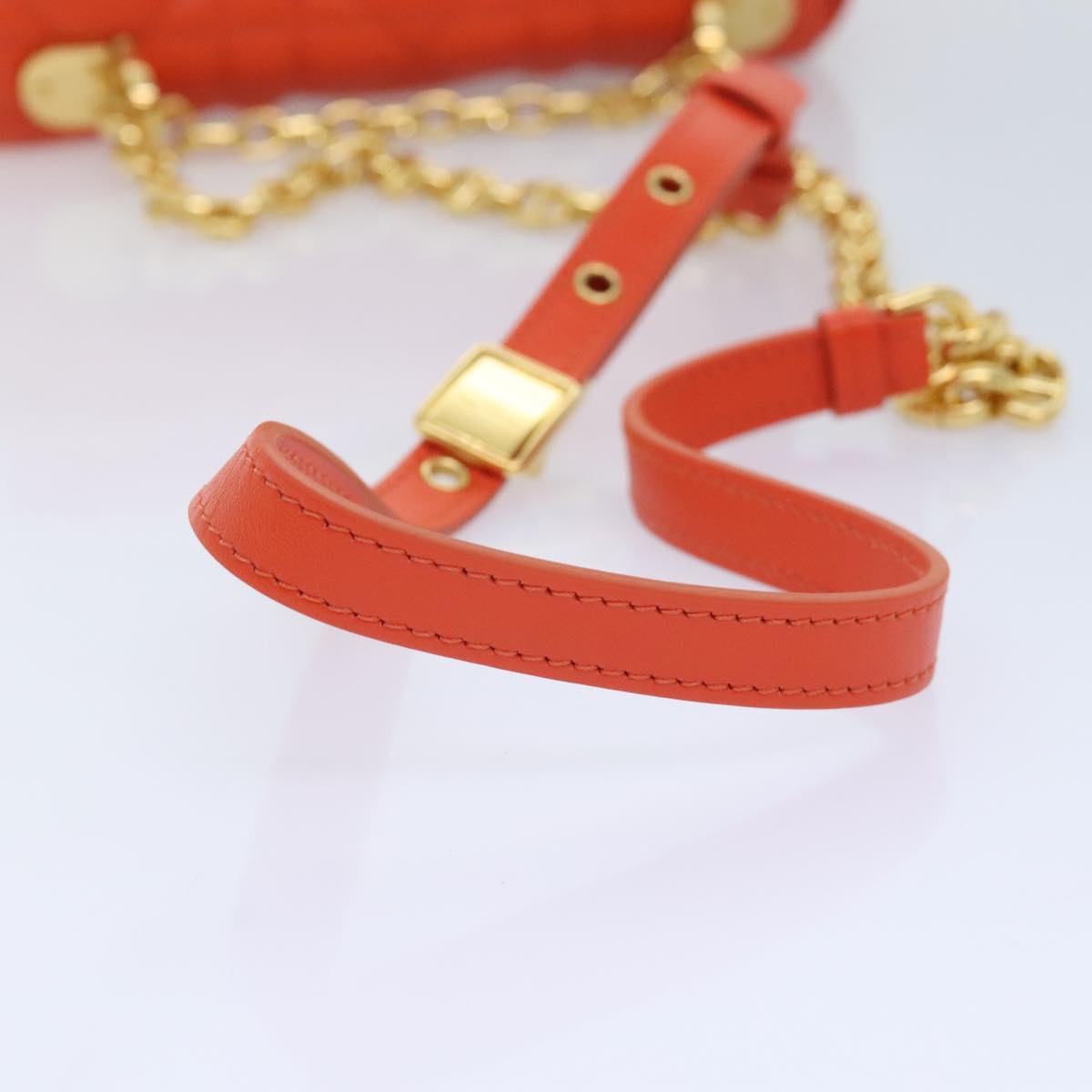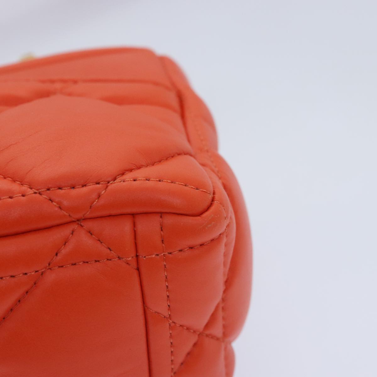 Christian Dior Chain Canage Shoulder Bag Leather Orange Gold Auth 92531AM