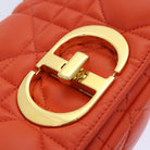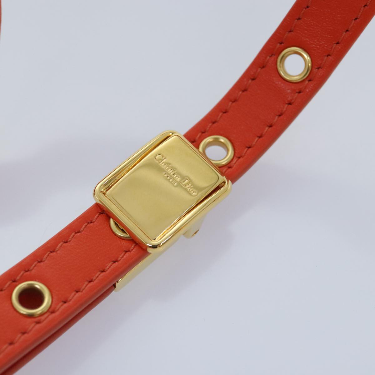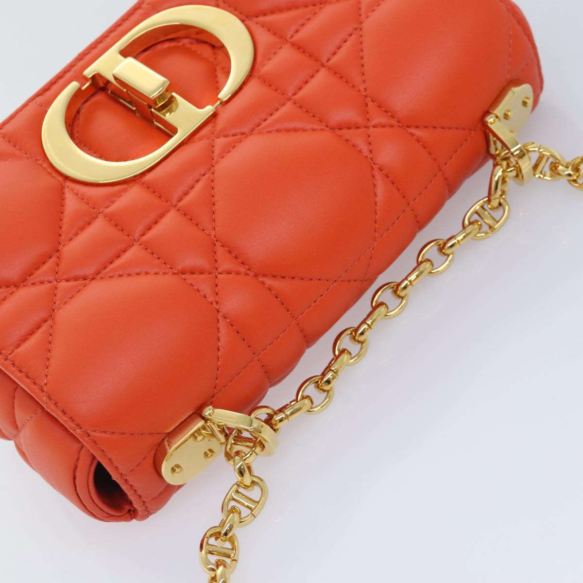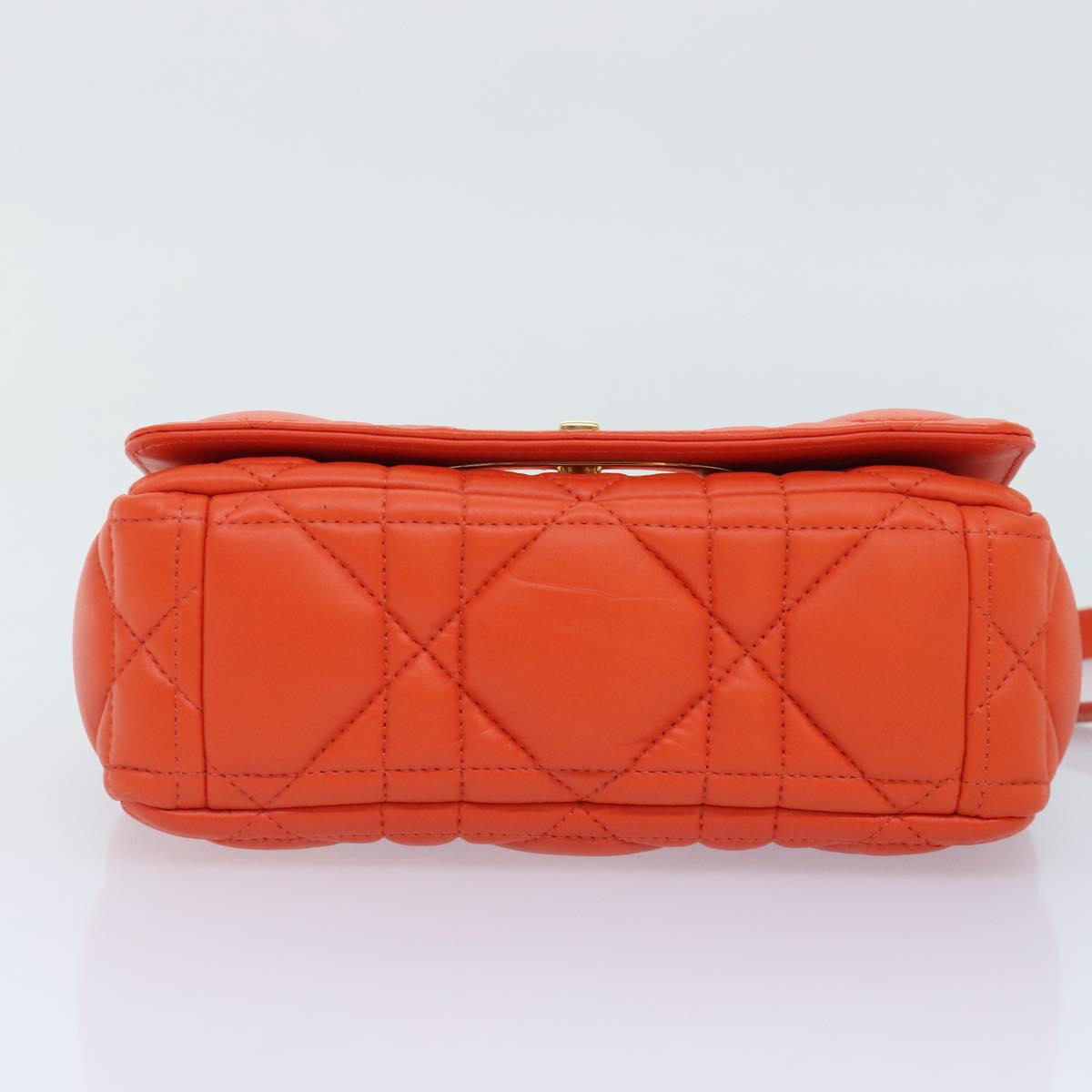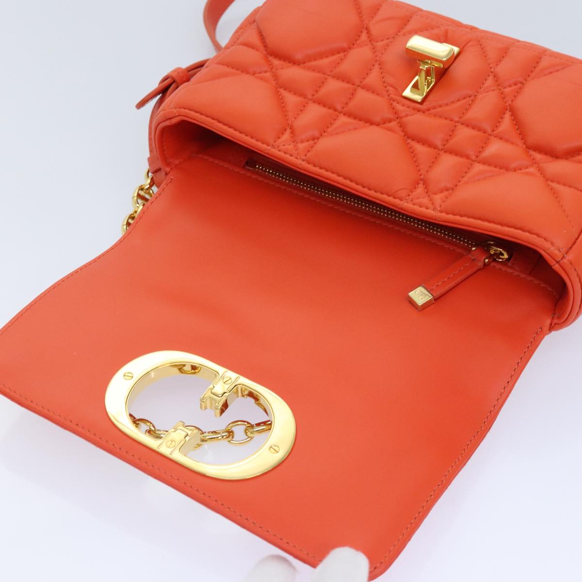 Christian Dior Chain Canage Shoulder Bag Leather Orange Gold Auth 92531AM