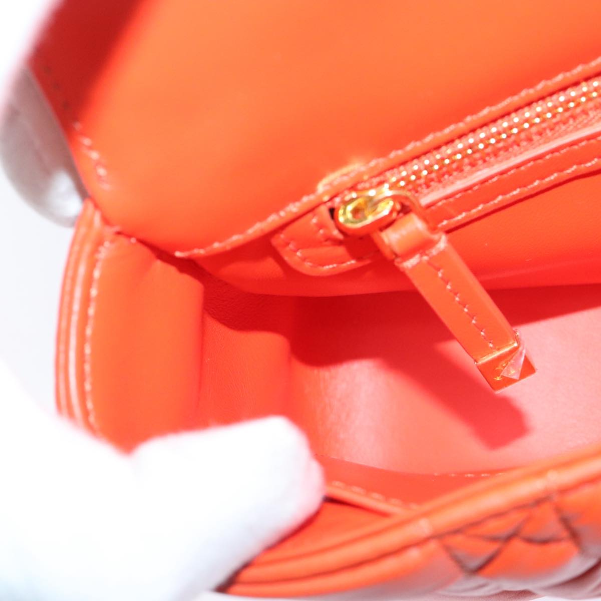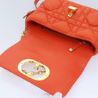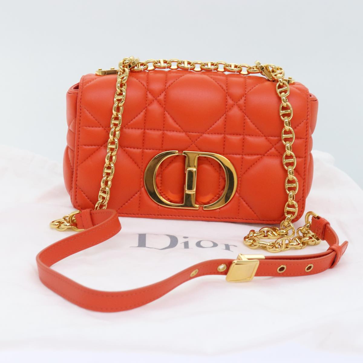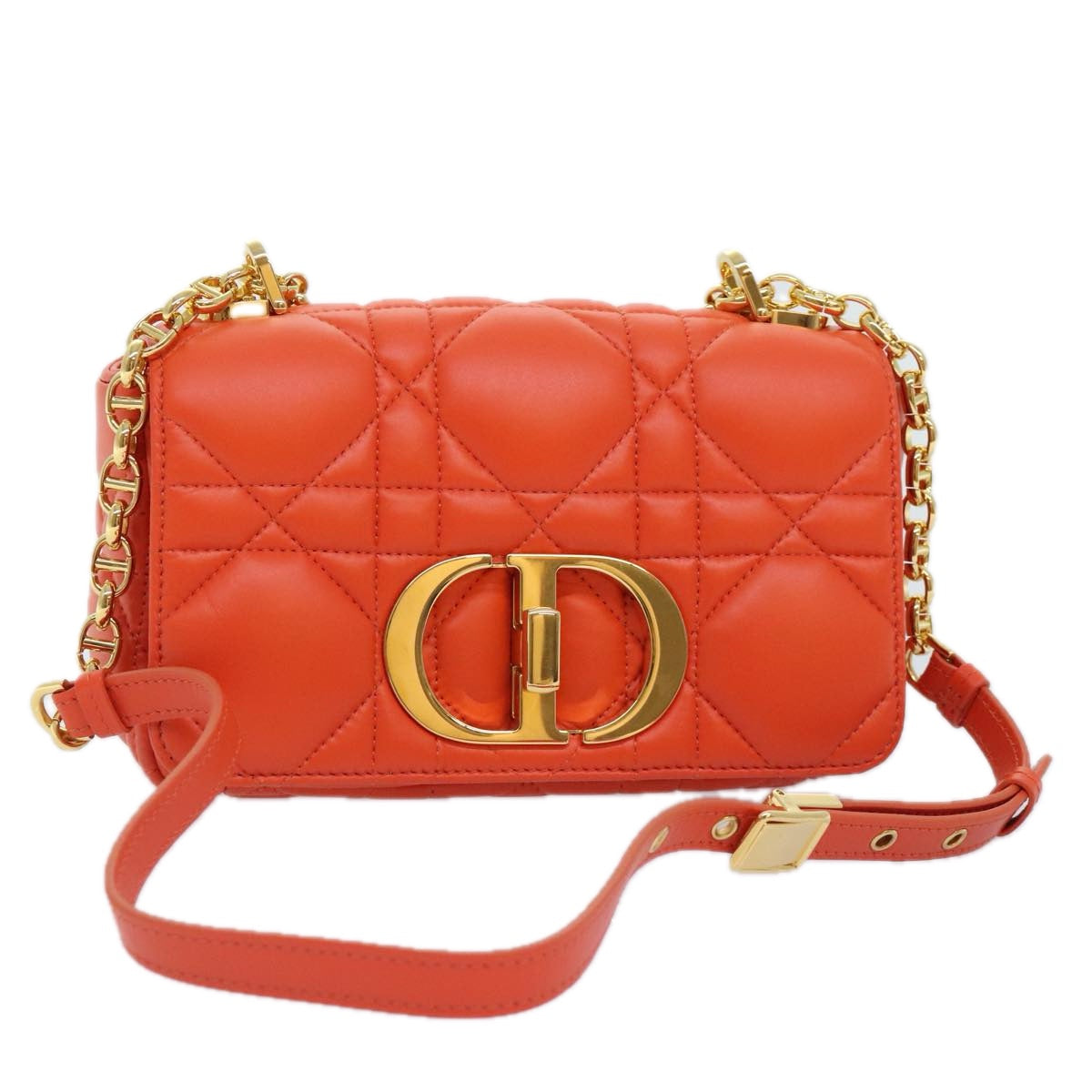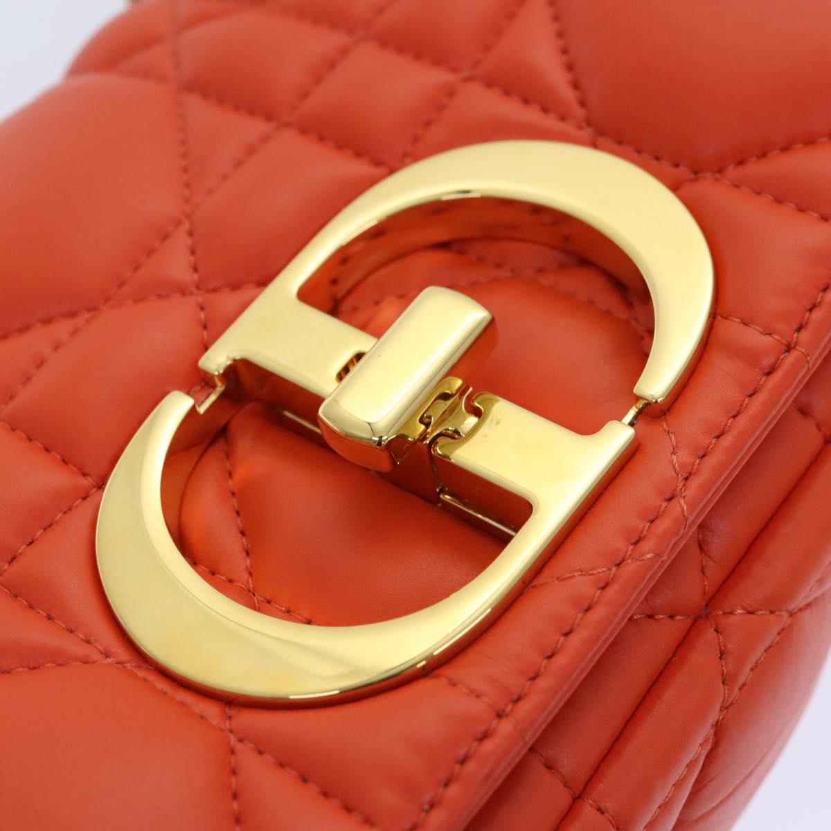 Christian Dior Chain Canage Shoulder Bag Leather Orange Gold Auth 92531AM