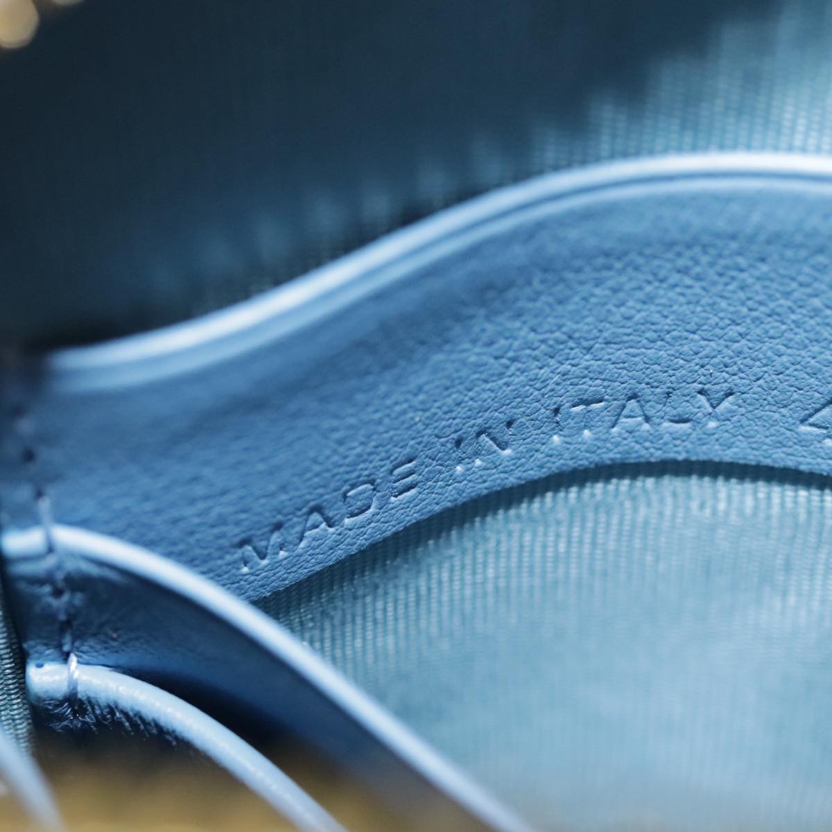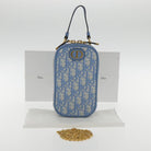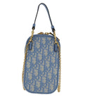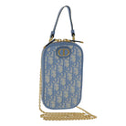 Christian Dior Chain Trotter Canvas Shoulder Bag Blue Gold Auth 94170SAM