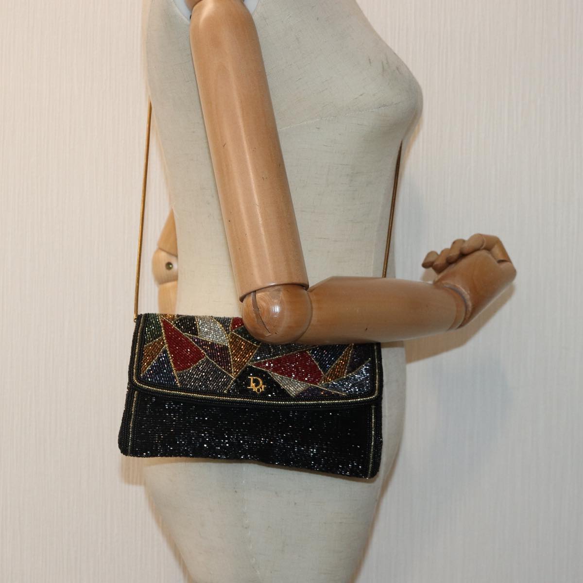 Christian Dior Shoulder Bag beads Black Multicolor Auth 87649SM