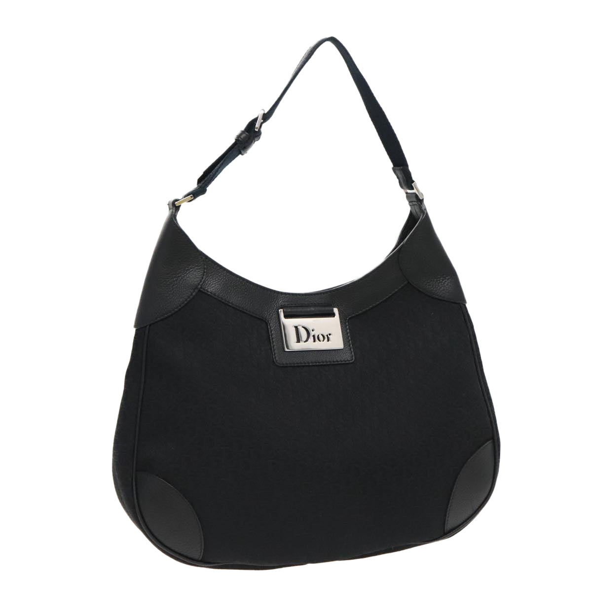 Christian Dior Trotter Canvas Shoulder Bag Black Silver Auth yk15711AM