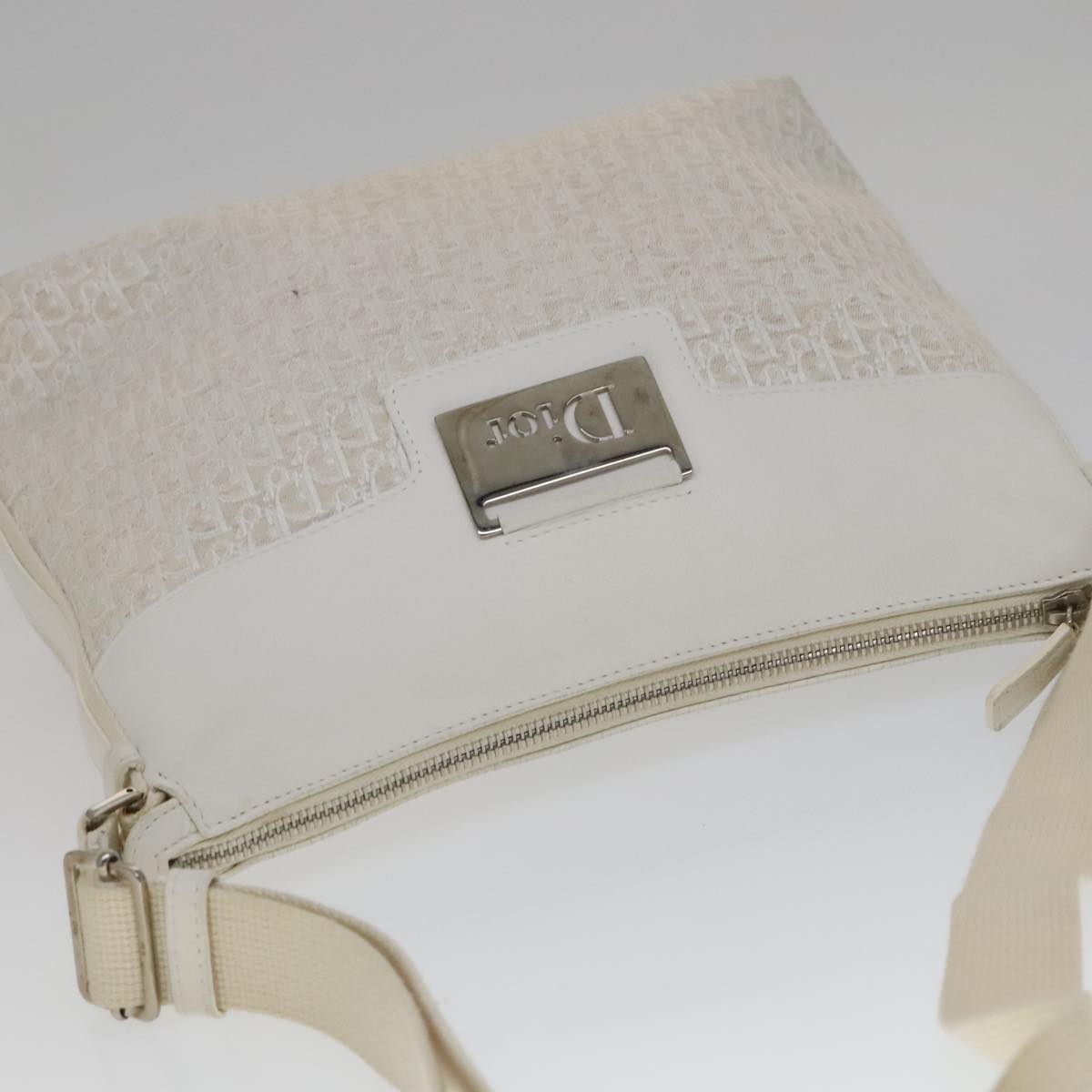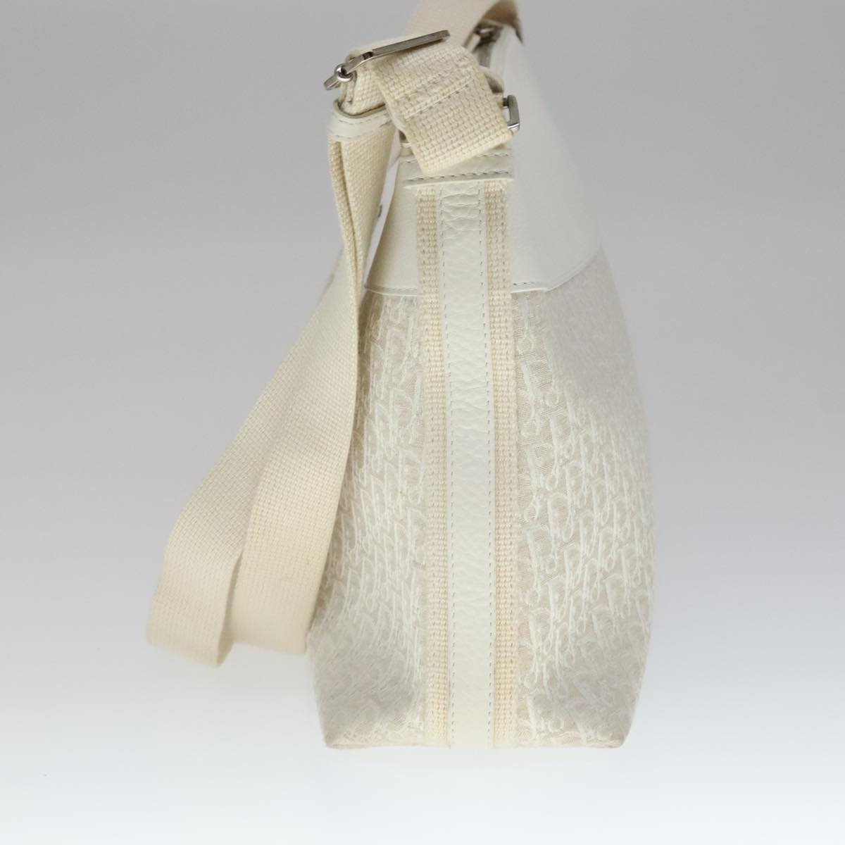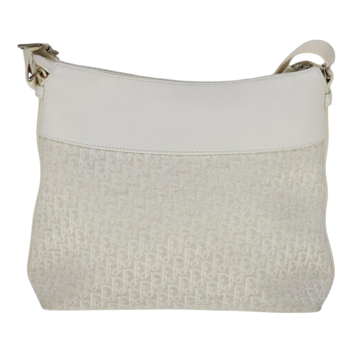 Christian Dior Trotter Canvas Shoulder Bag White Silver Auth 105952V
