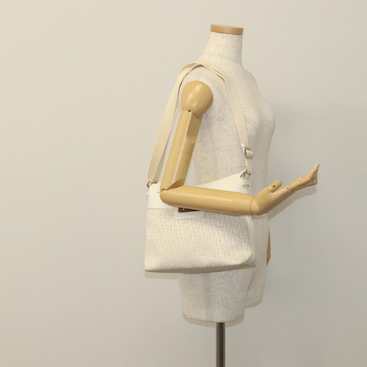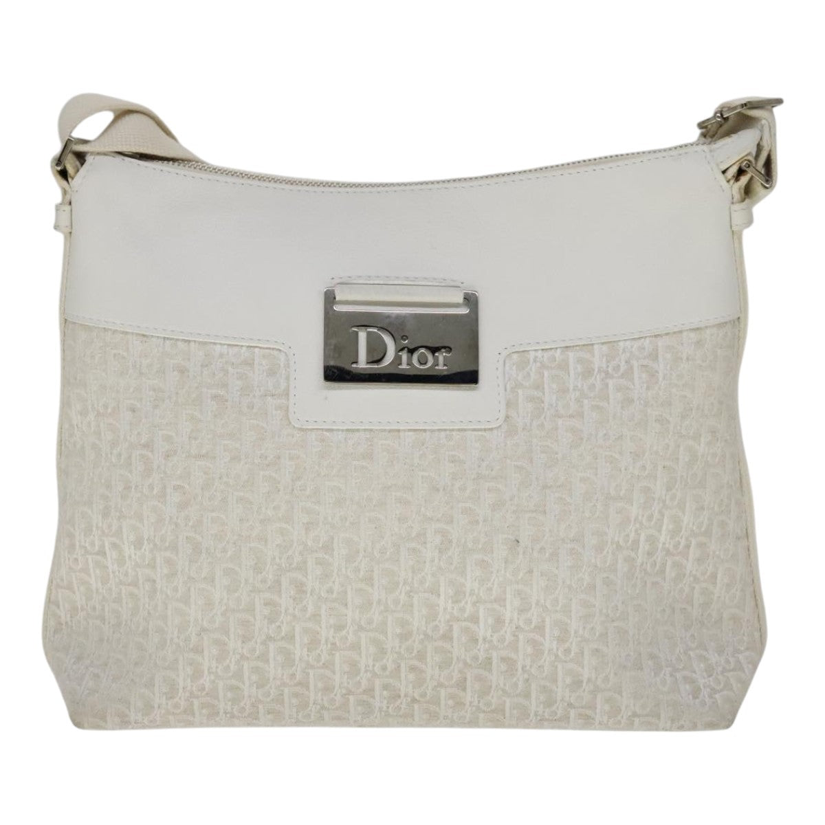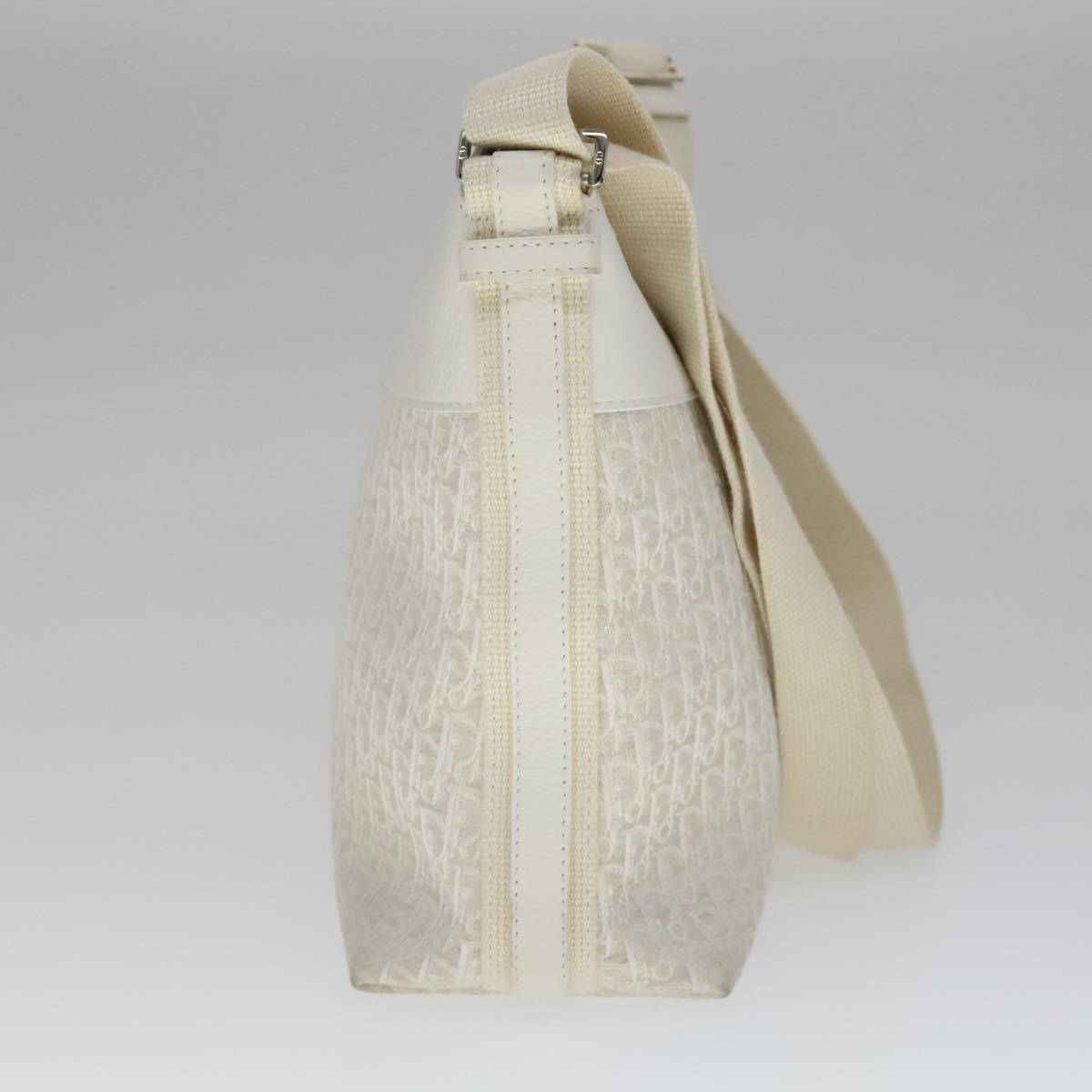 Christian Dior Trotter Canvas Shoulder Bag White Silver Auth 105952V