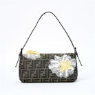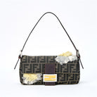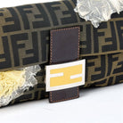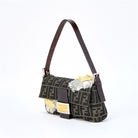FENDI Mamma Baguette Shoulder Bag Brown Silver Jacquard Auth