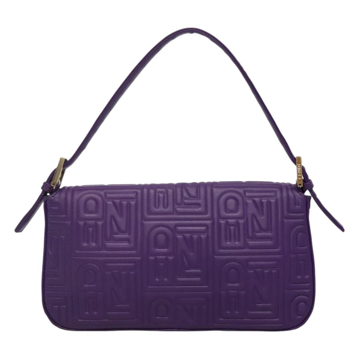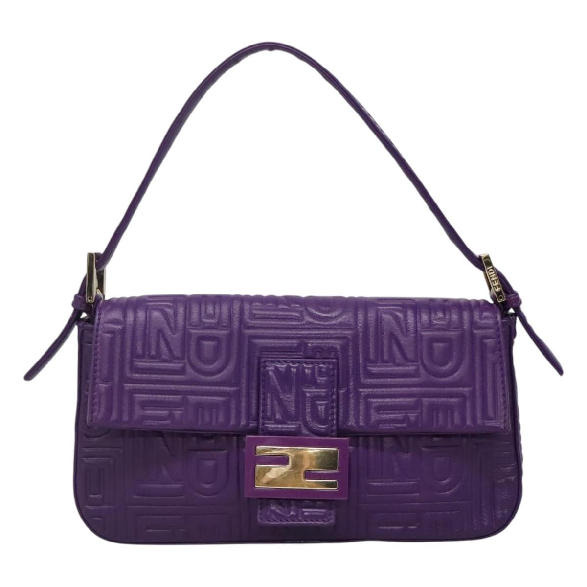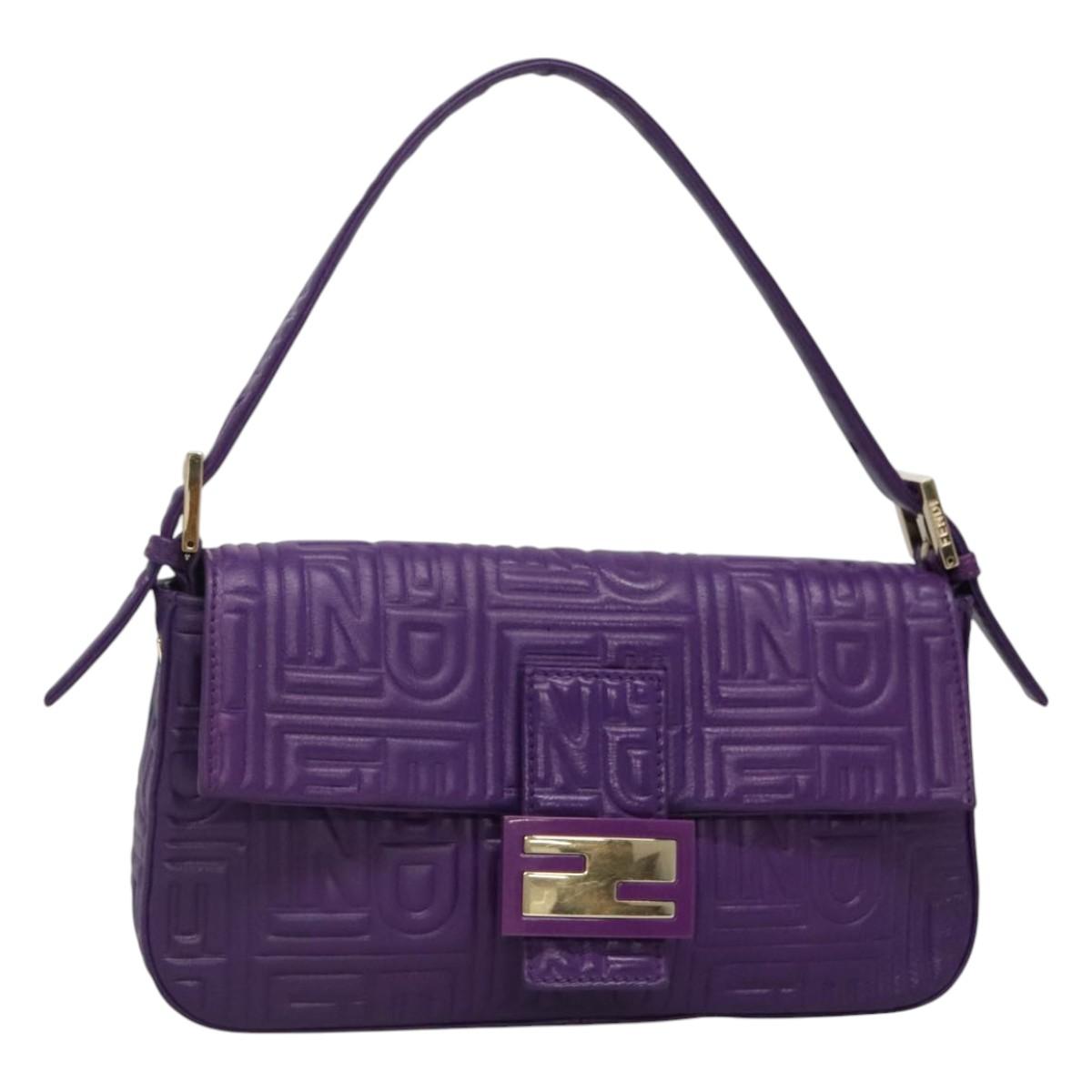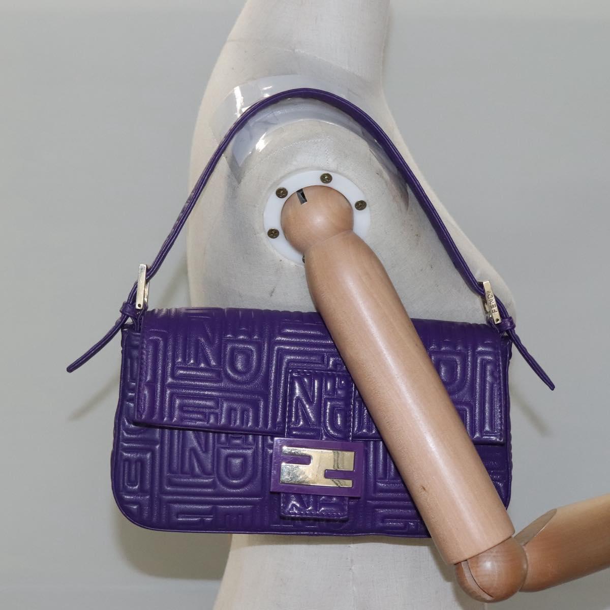 FENDI Mamma Baguette Shoulder Bag Leather Purple Auth 115816AM