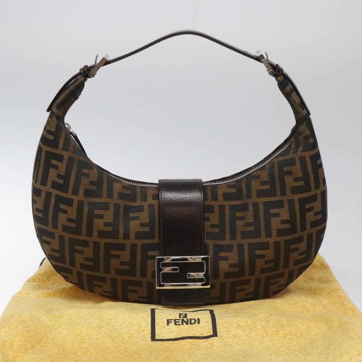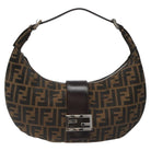 FENDI Zucca Canvas Croissant Shoulder Bag Black Brown Auth yk17081AV
