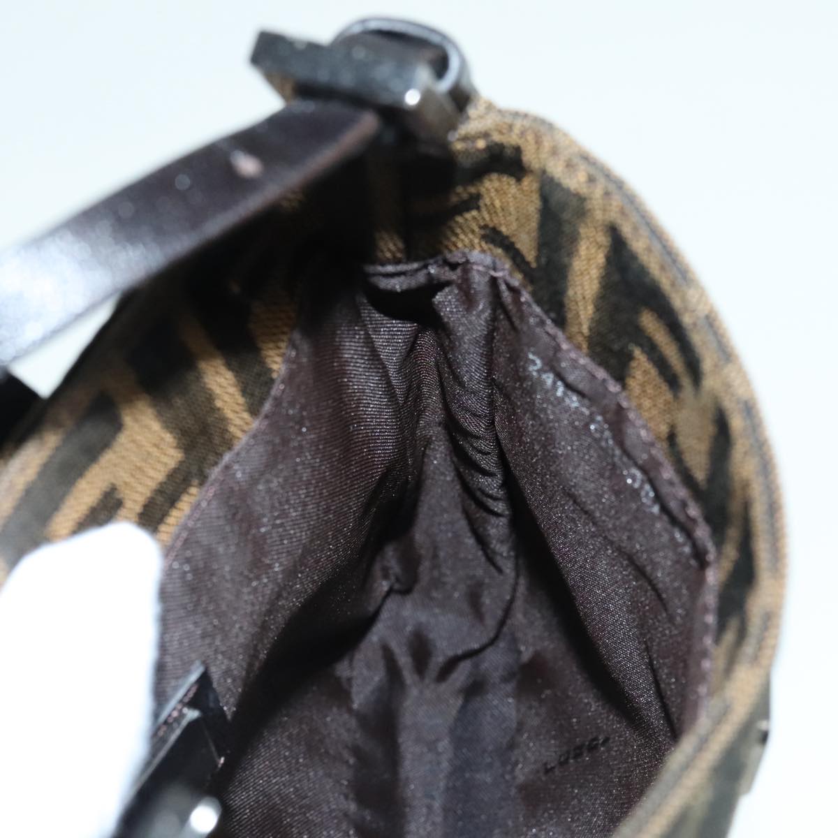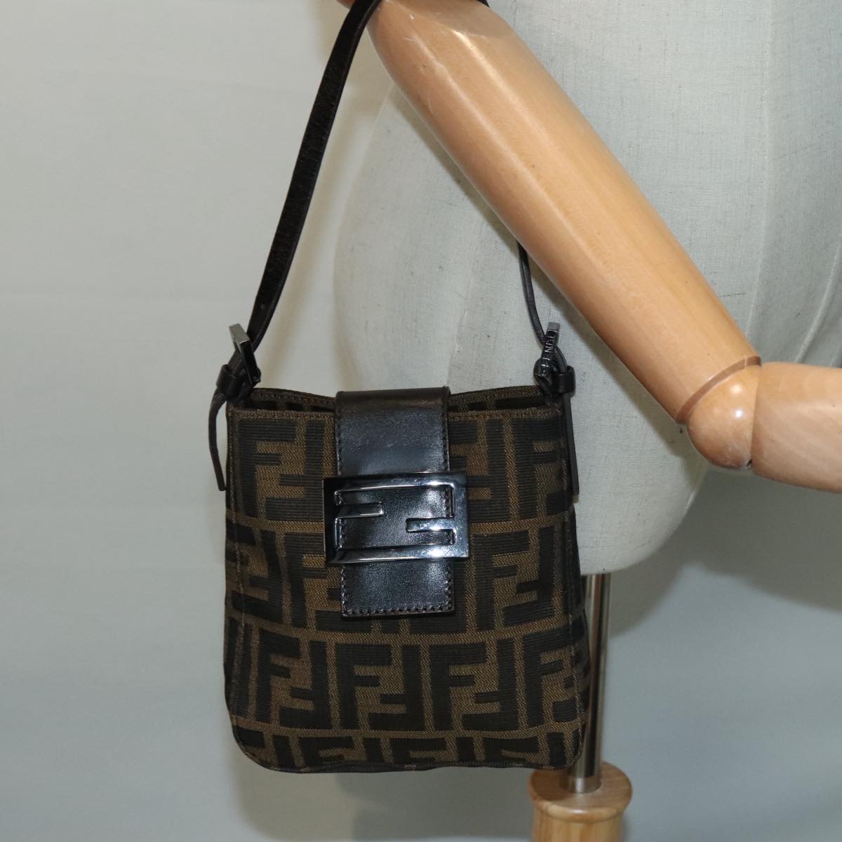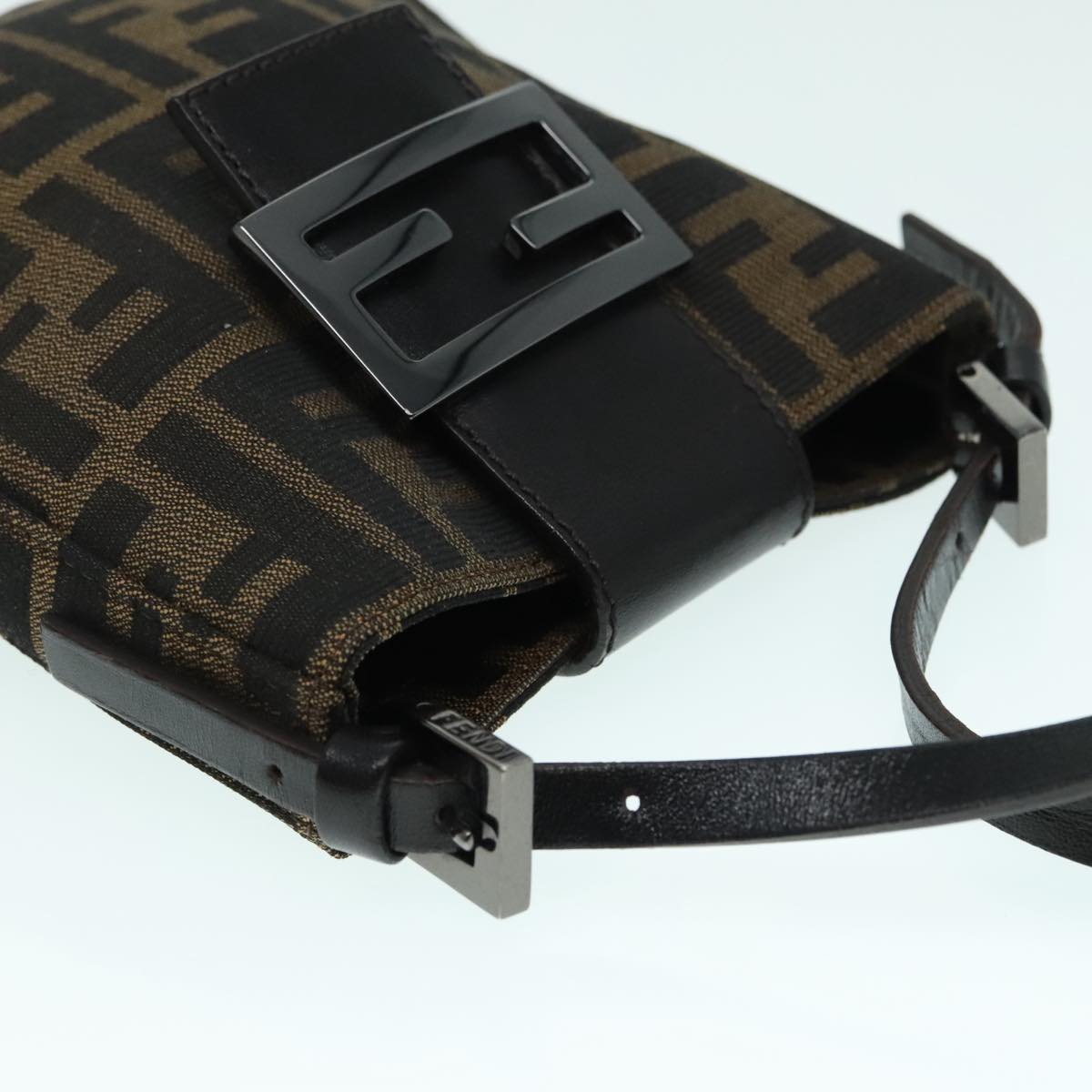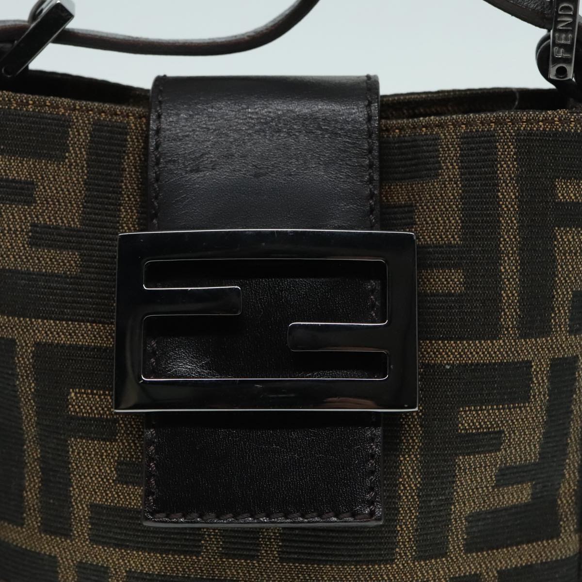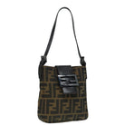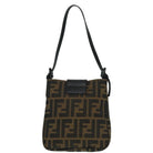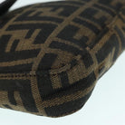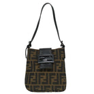 FENDI Zucca Canvas Mamma Baguette Shoulder Bag Black Silver Brown Auth 93258V