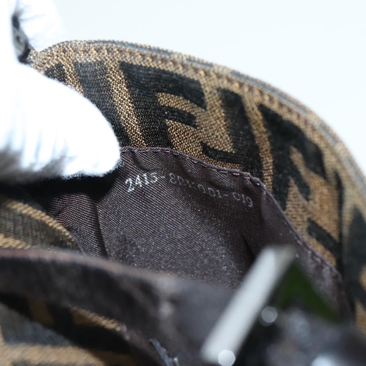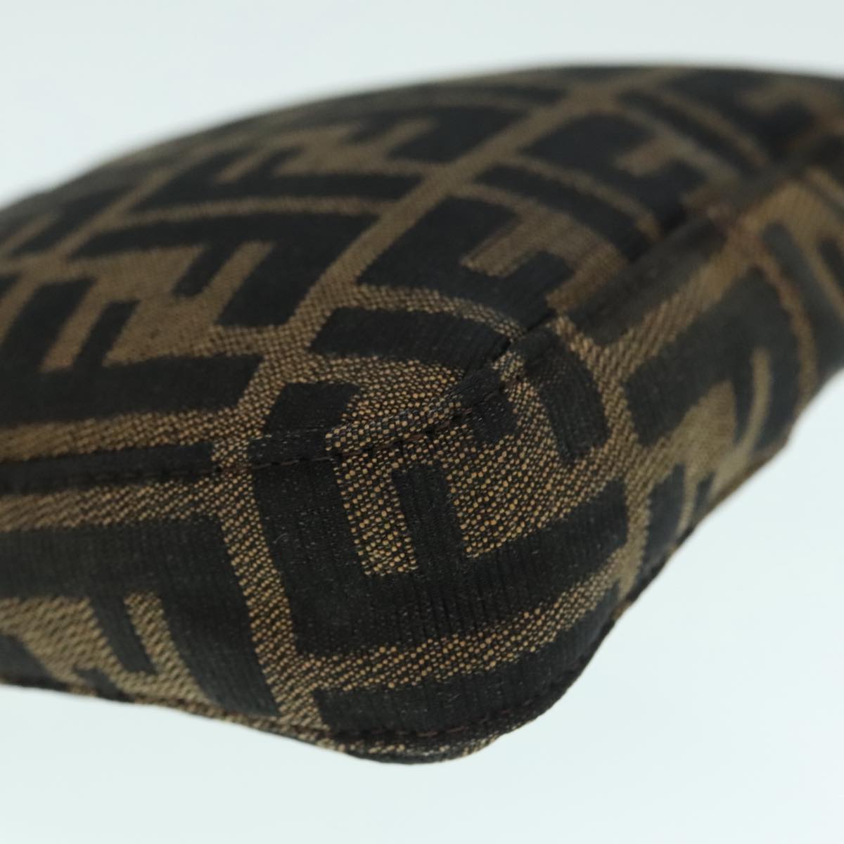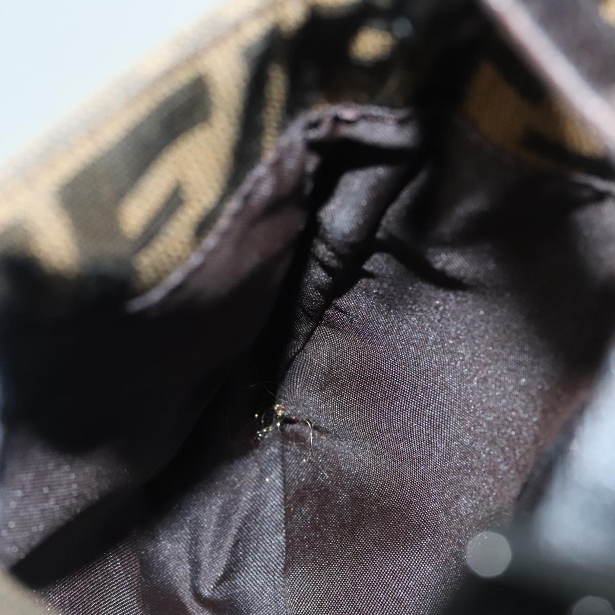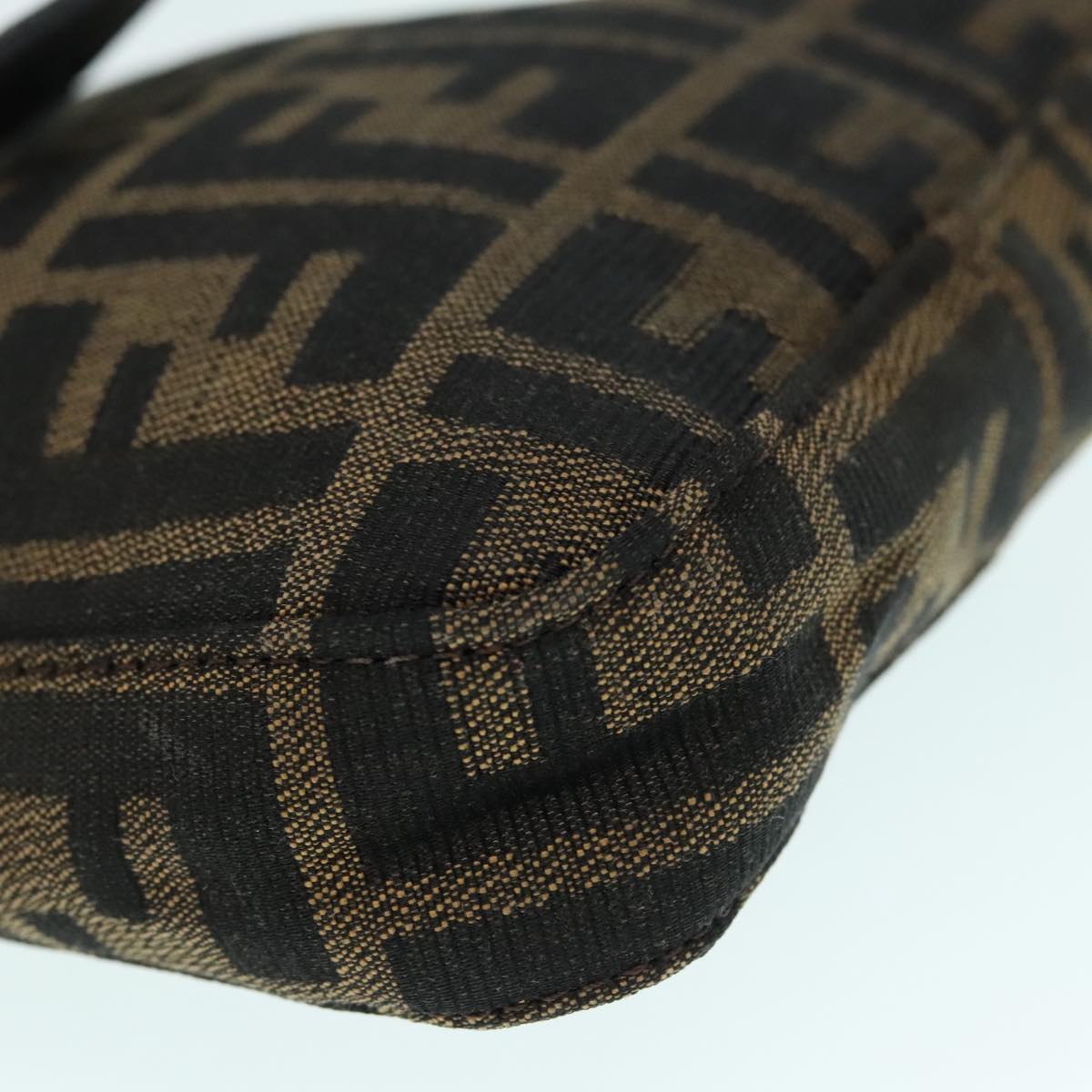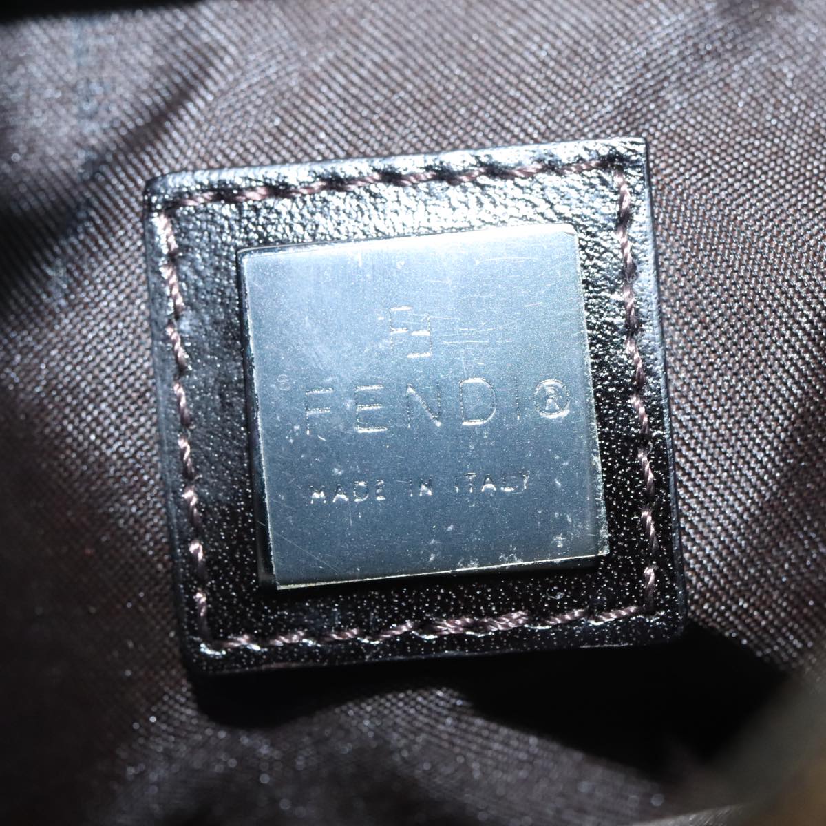 FENDI Zucca Canvas Mamma Baguette Shoulder Bag Black Silver Brown Auth 93258V