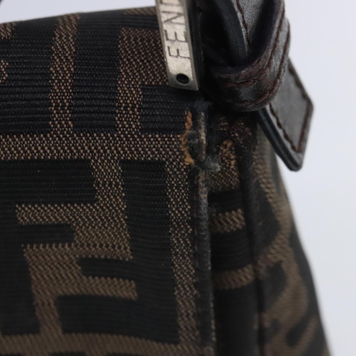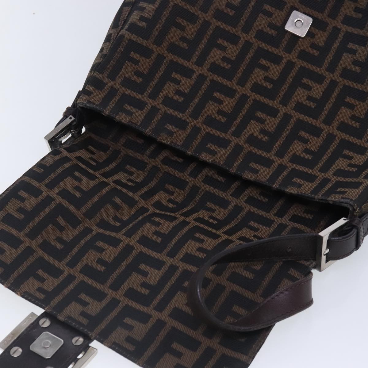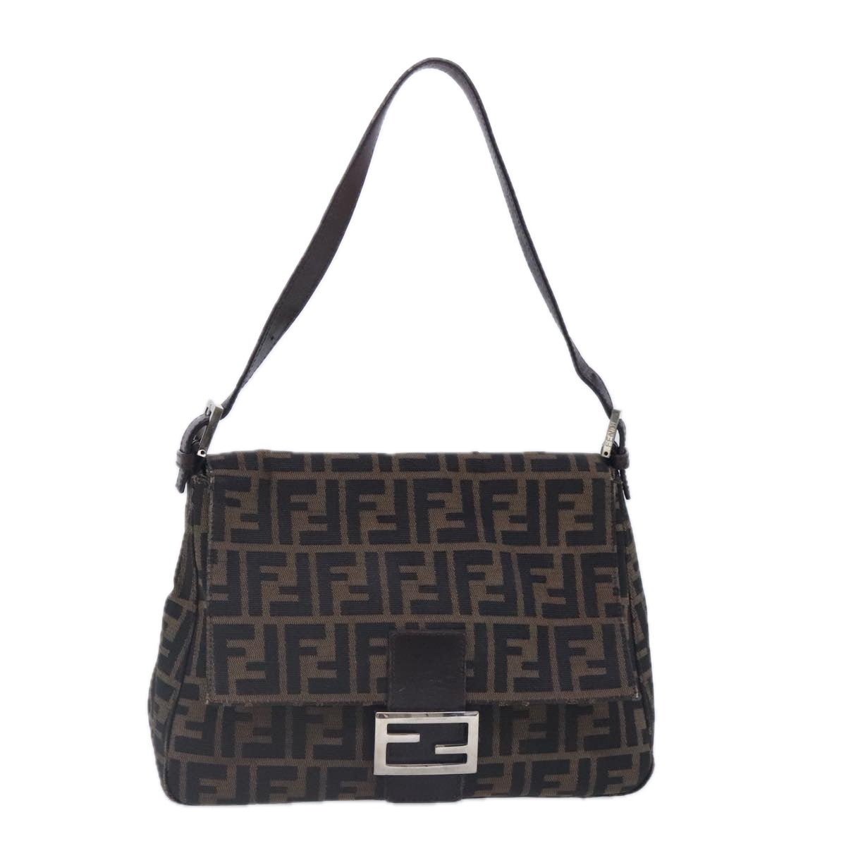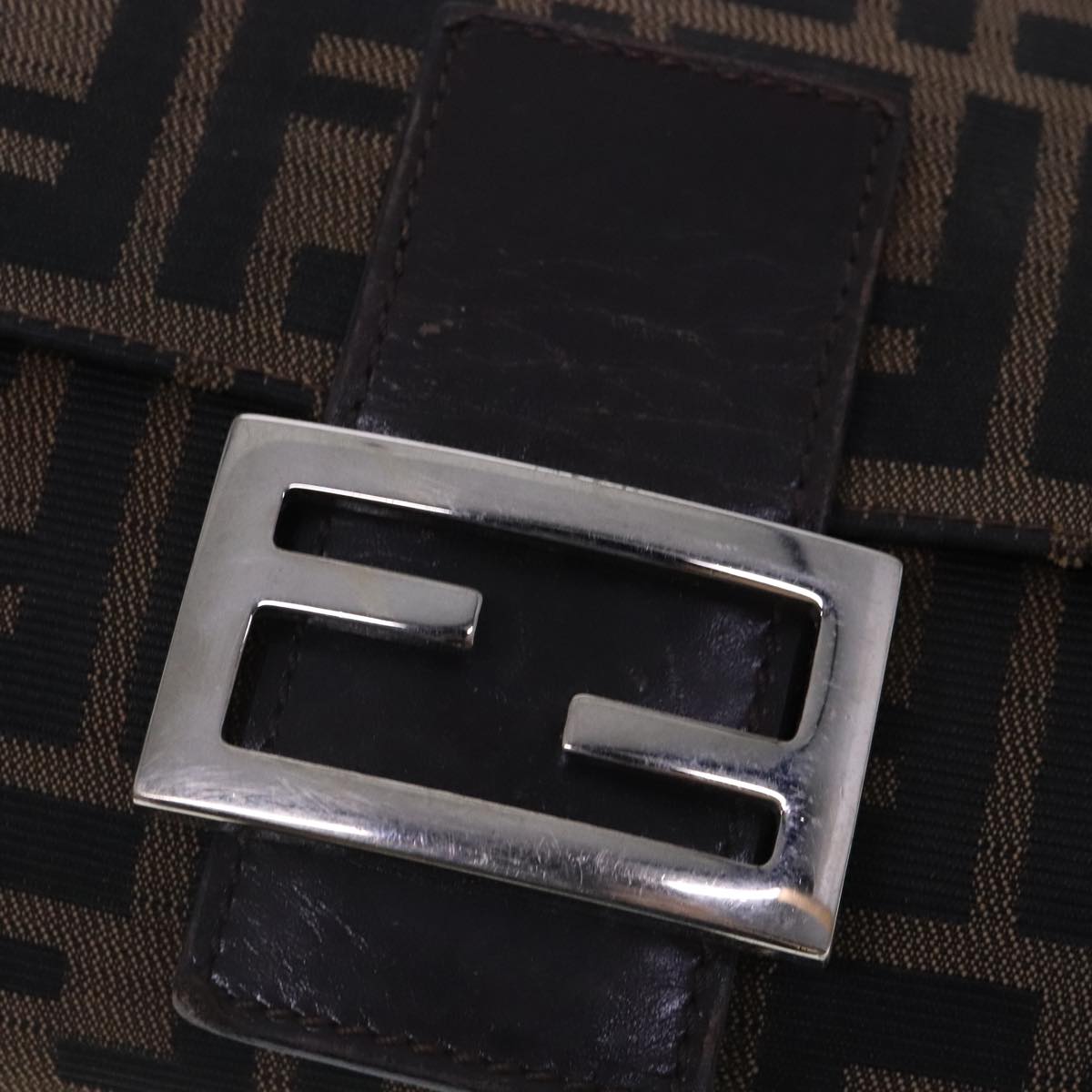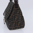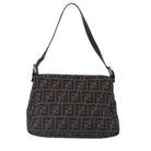 FENDI Zucca Canvas Mamma Baguette Shoulder Bag Black Silver Brown Auth ar12608