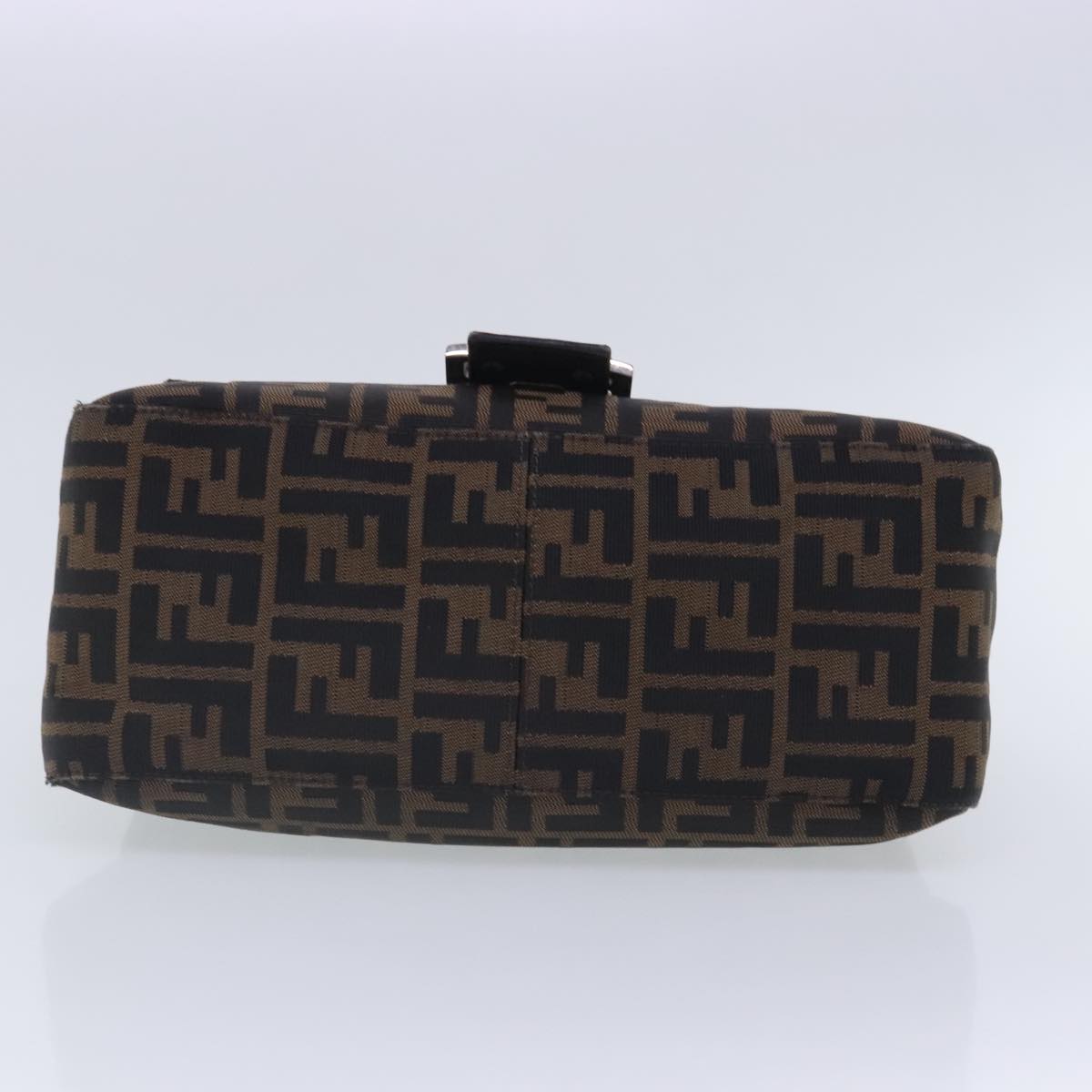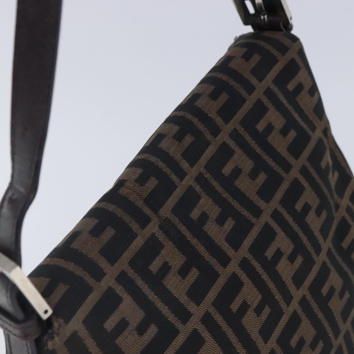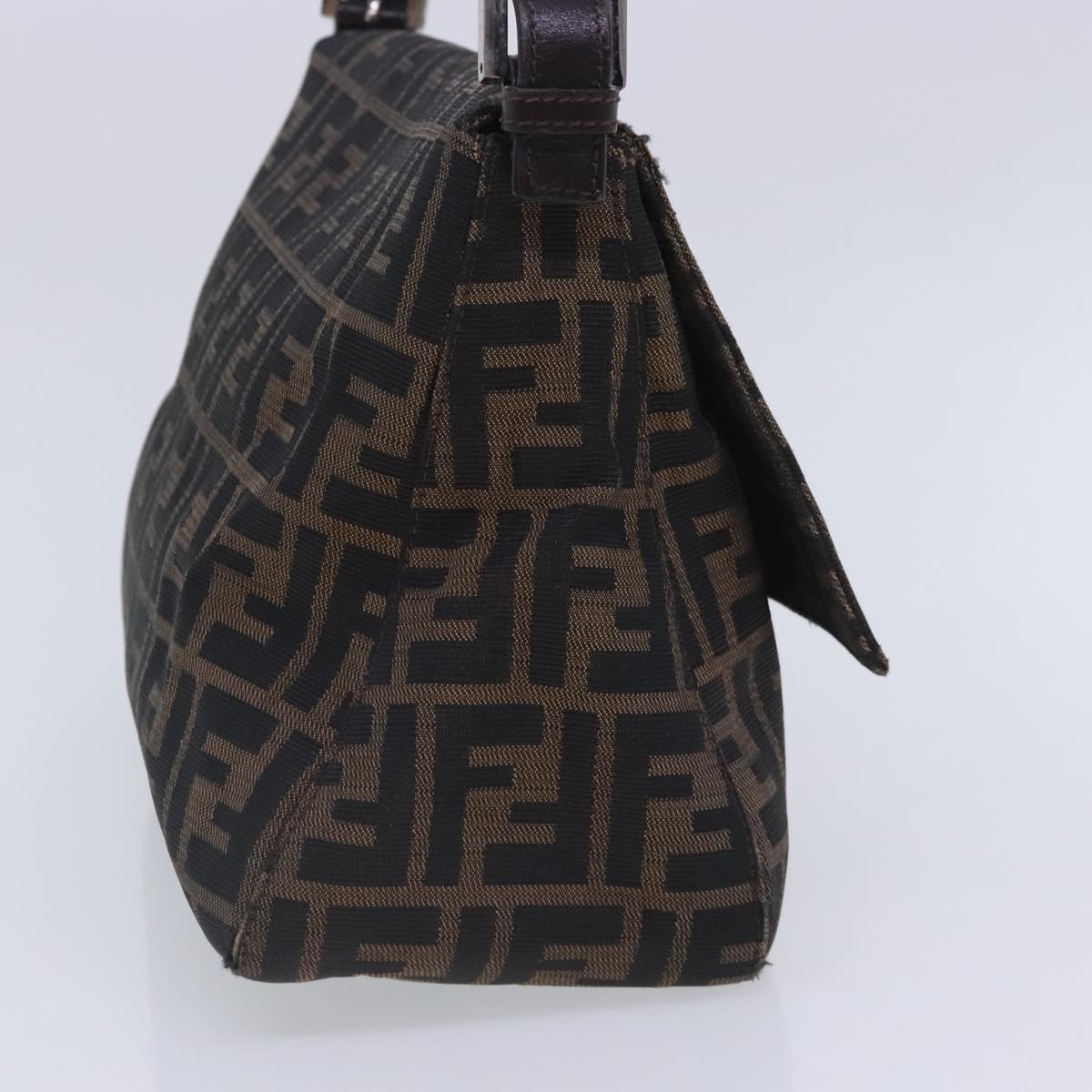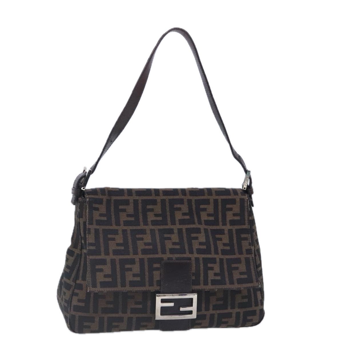 FENDI Zucca Canvas Mamma Baguette Shoulder Bag Black Silver Brown Auth ar12608