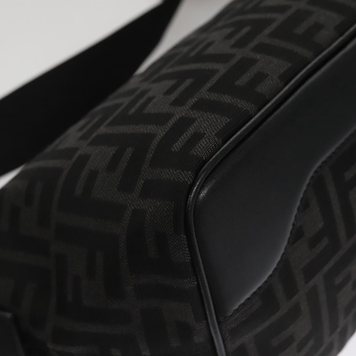 FENDI Zucca Canvas Shoulder Bag Black Auth FF3878AV
