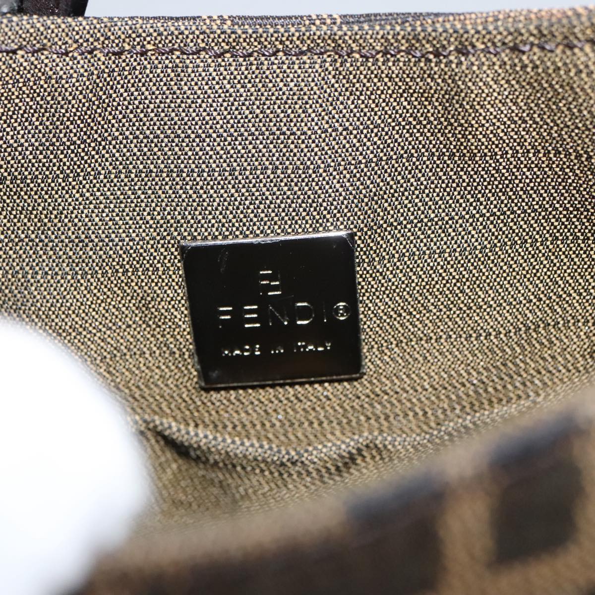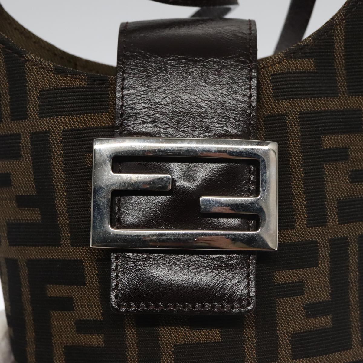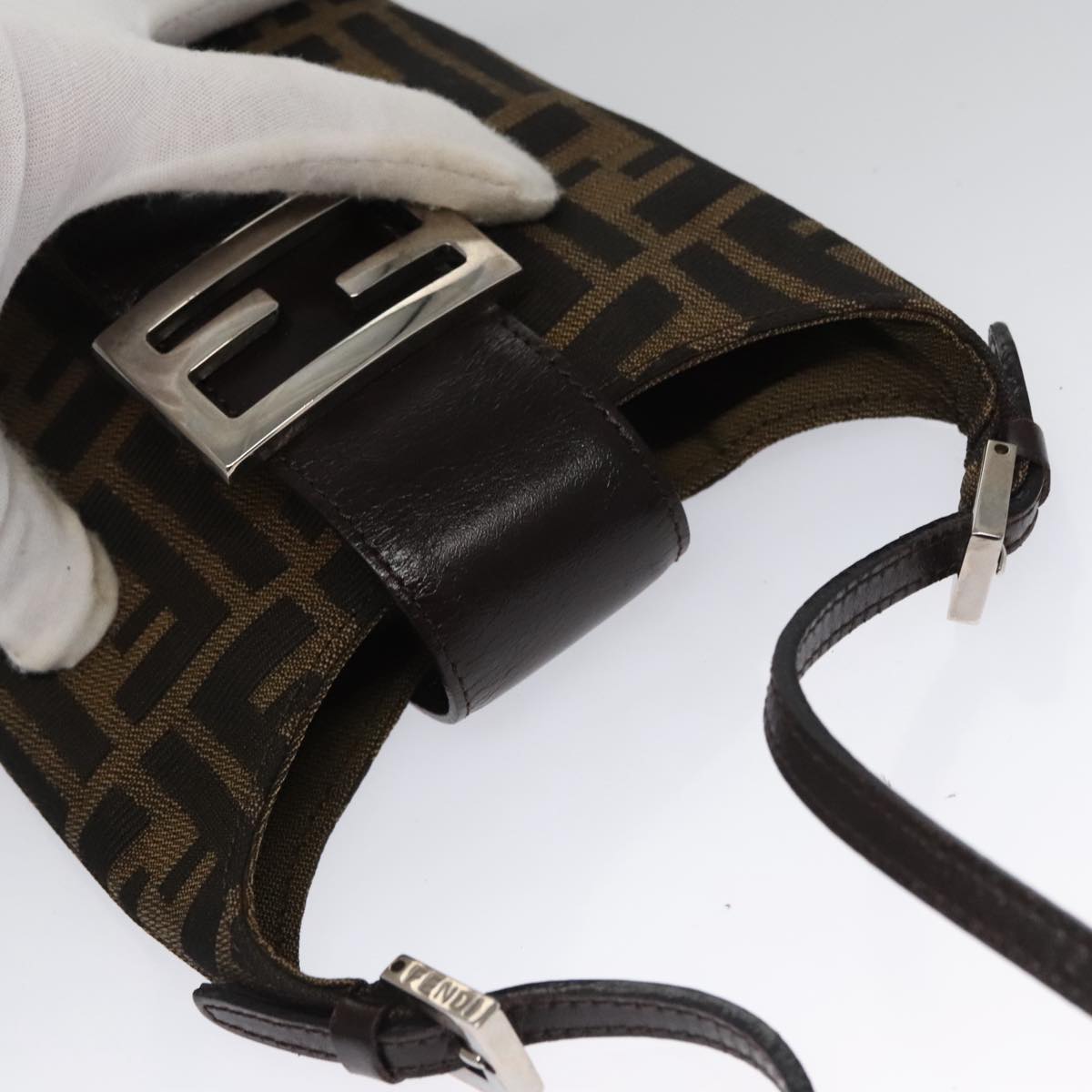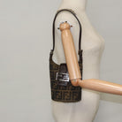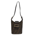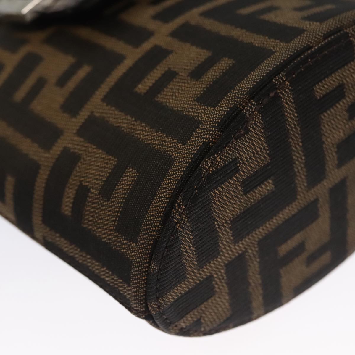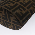 FENDI Zucca Canvas Shoulder Bag Brown Black Silver Auth 102811V